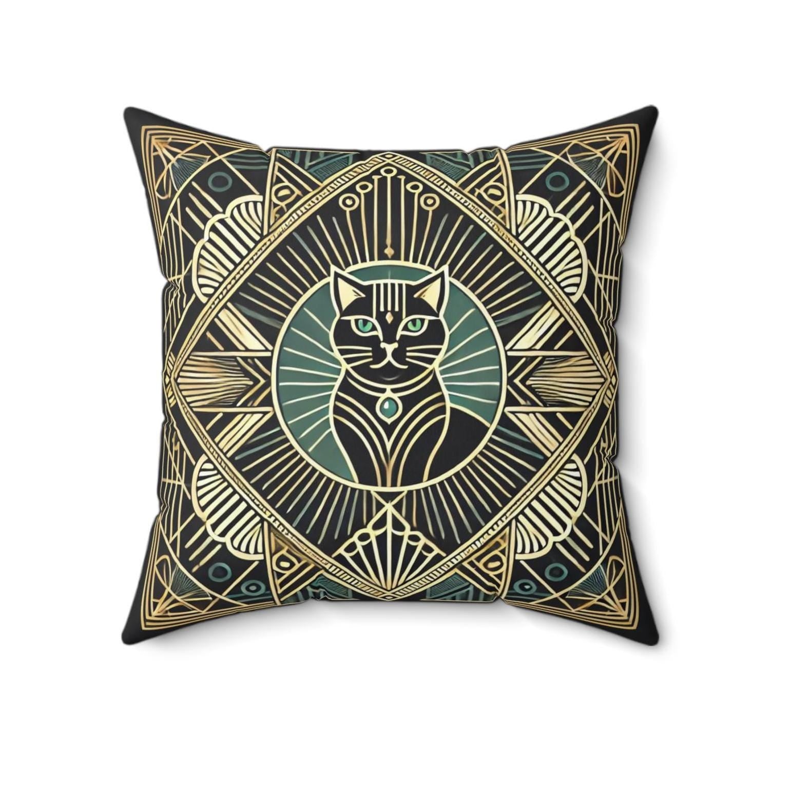 Art Deco Square Pillow, Vintage Cat Design, Retro Charm, Housewarming Gift, Spun Polyester Cover, Gift for Cat or Art Lover, Throw Pillow