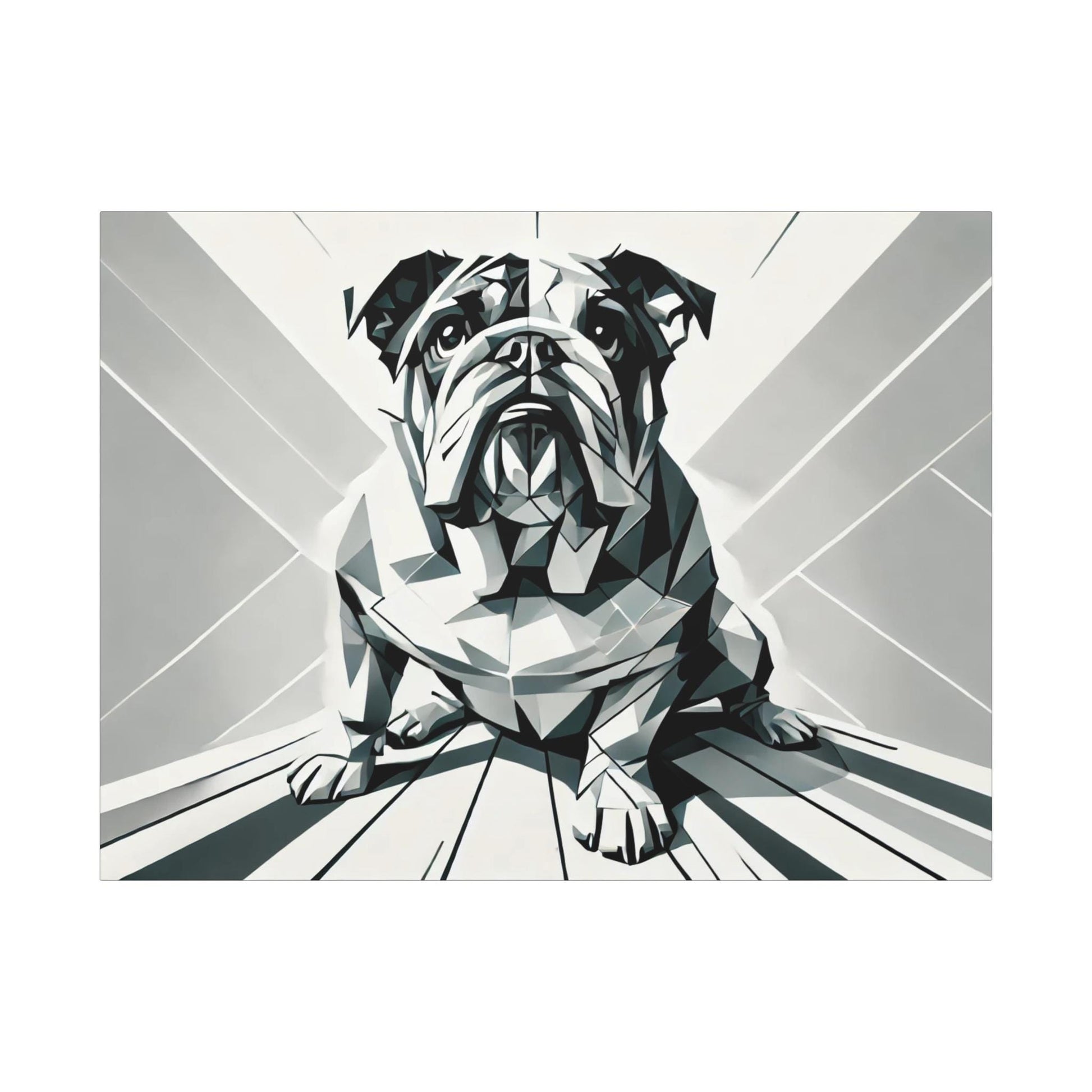 Original Modern Cubist Bulldog Canvas Print, perfect for wall art home decor. Ideal for LGBT individuals or dog lovers looking for a unique and high-quality piece. Great as a housewarming gift for gay dog lovers. Suitable for decorating homes during Pride Month or National Dog Day. Product features - Rubber dots on bottom back corners for stability - Uses unique canvas coating for high-quality images - Sustainable product made from FSC certified renewable forests - Printed with non-hazardous latex inks - Available in 60 different sizes for customization Care instructions - If the canvas does gather any dust, you may wipe it off gently with a clean, damp cloth.