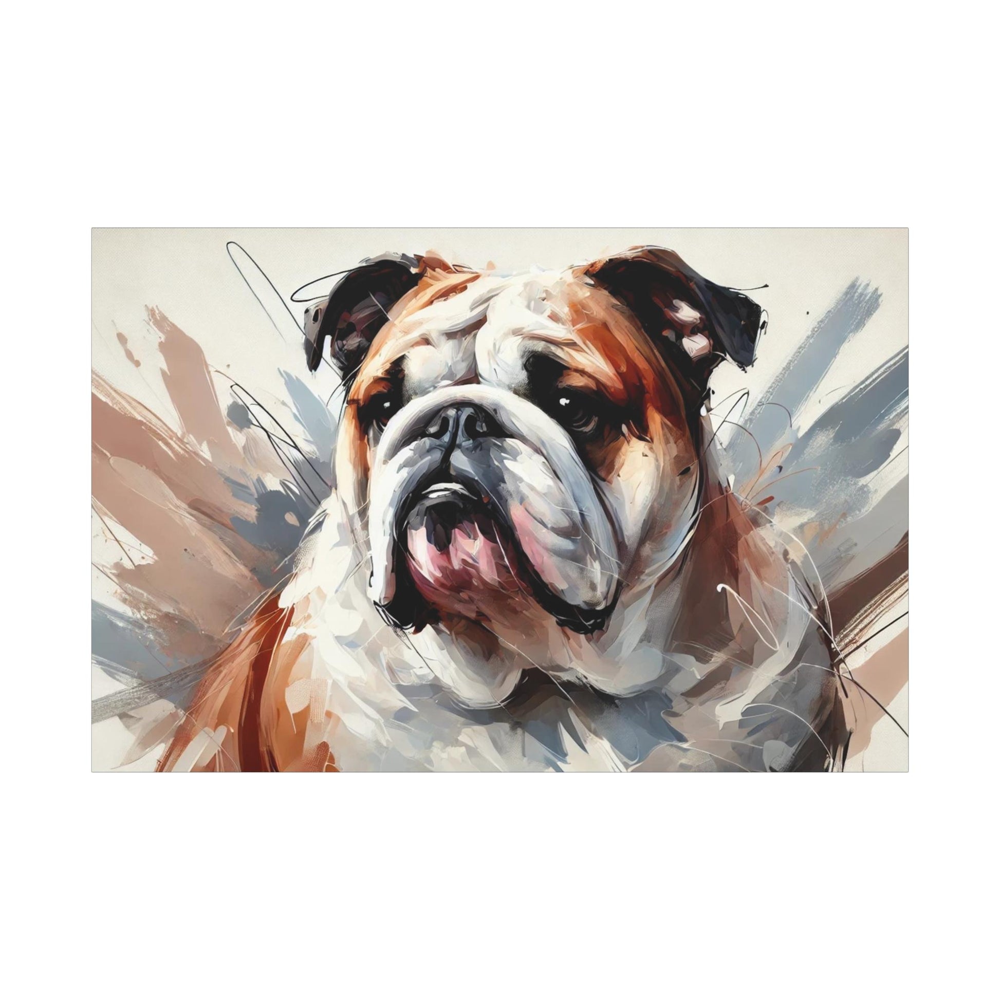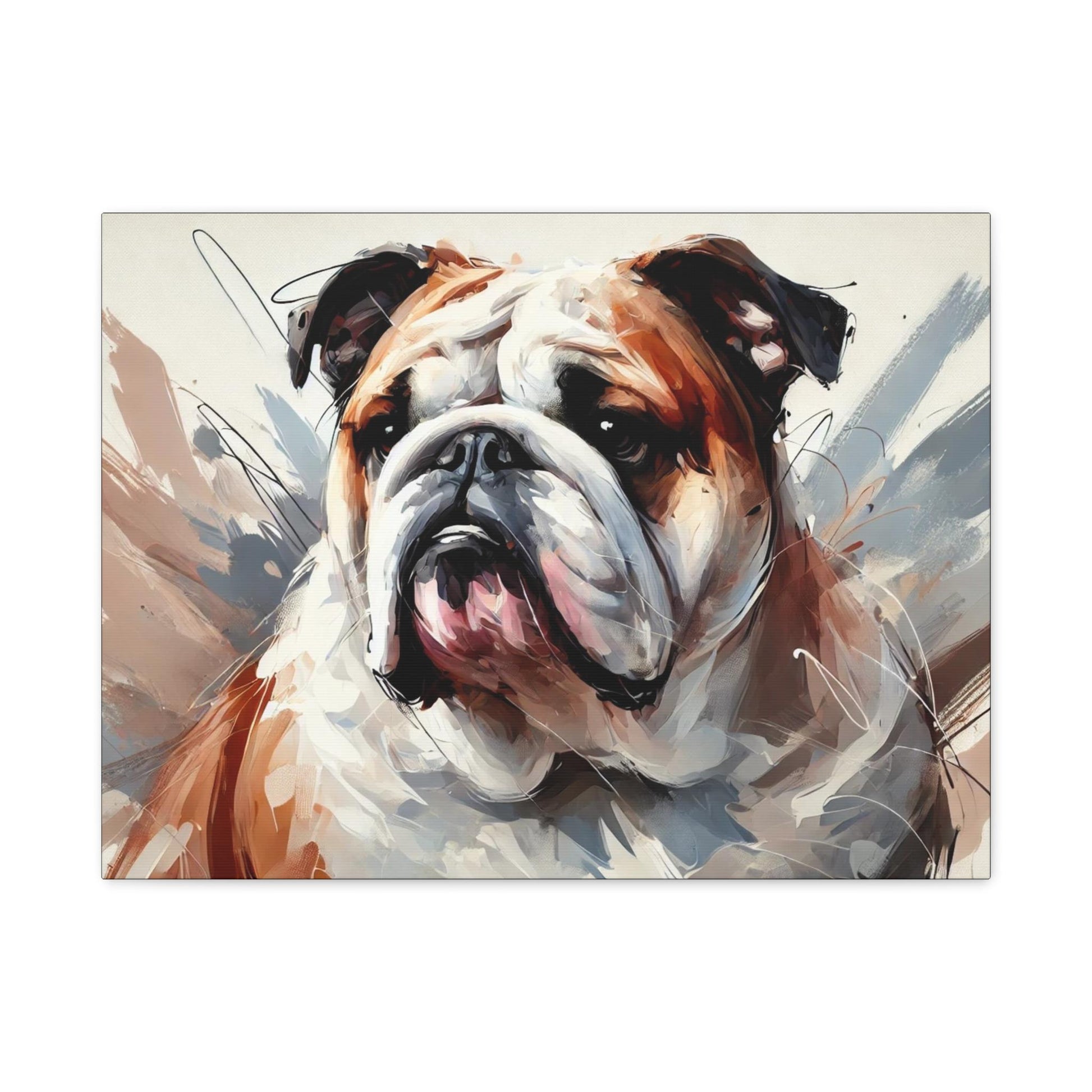Original Modern Impressionist Bulldog Canvas Print, perfect for wall art home decor. Ideal for LGBT individuals or dog lovers looking for a unique and high-quality piece. Great as a housewarming gift for gay dog lovers. Suitable for decorating homes during Pride Month or National Dog Day.