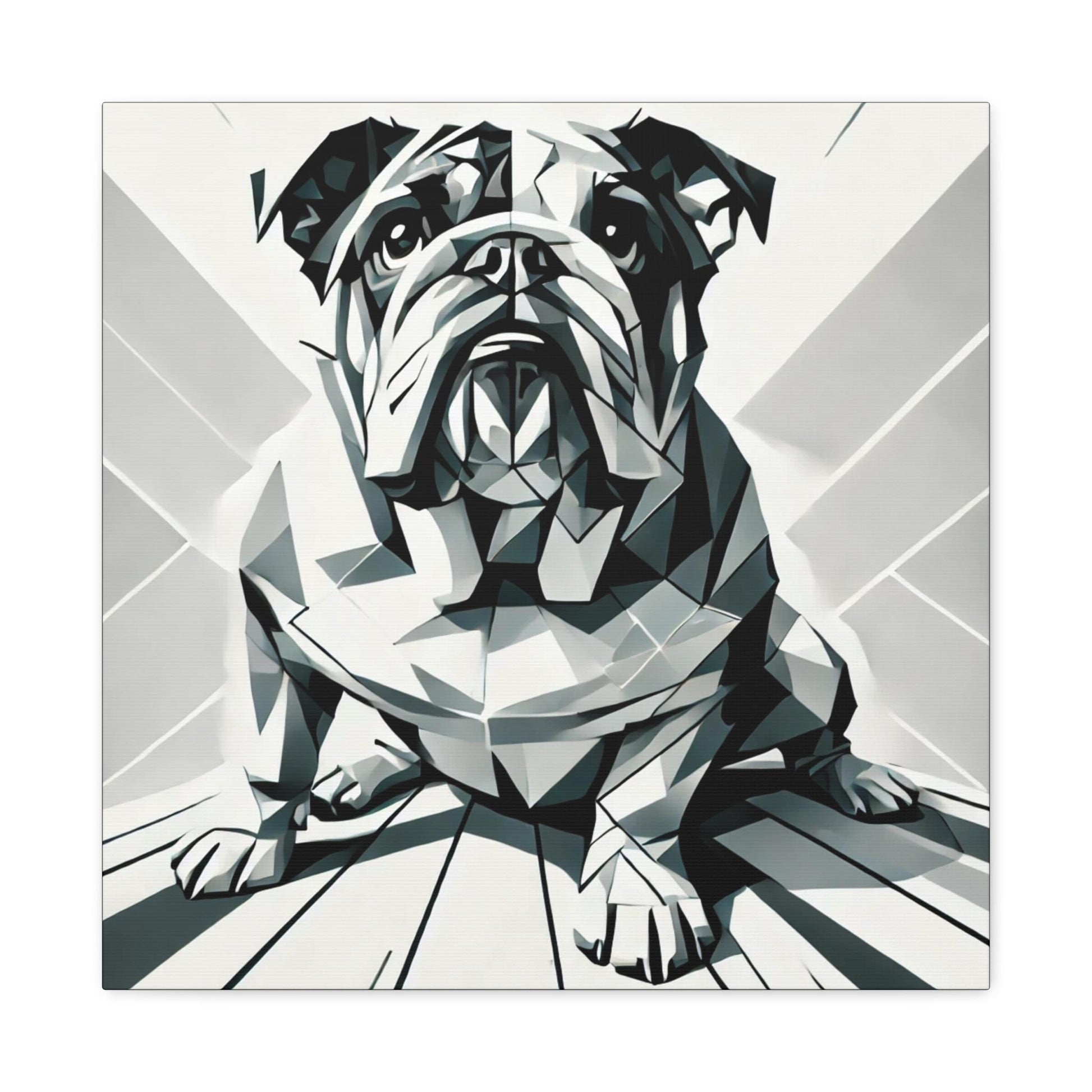Modern Bulldog cubist design on matte canvas, perfect for queer dog lovers and those seeking chic, modern decor. Ideal for LGBT housewarming or gay birthday gifts, this canvas exudes puppy charm. Fits well in living rooms, bedrooms, and offices, adding a touch of cool to any space.
