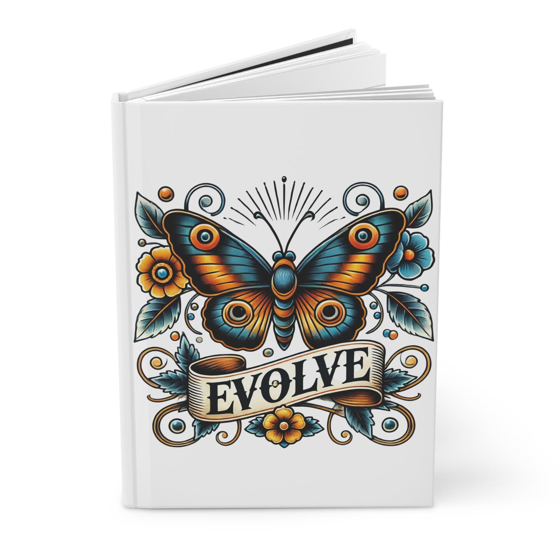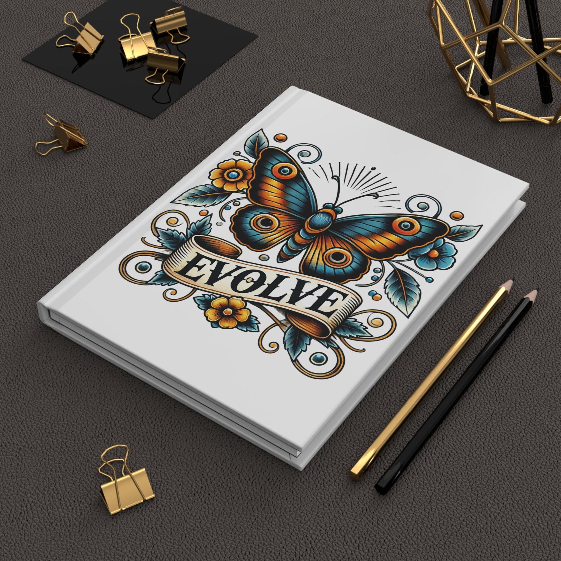 Butterly Journal Hardcover - EVOLVE Design - Vintage tattoo Charm Notebook, Book Lovers Gift, Retro Diary - Nature Journal - Literature
