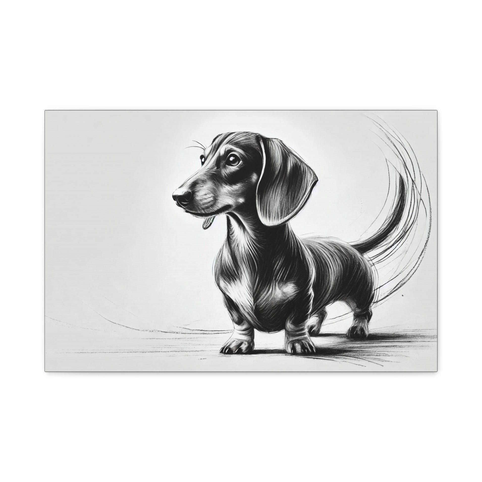 Canvas Print Dachshund Modern Charcoal Sketch Portrait, LGBT Housewarming Gift, Gay Weiner Dog Lover, Matte Stretched Wall Art, 7 Sizes