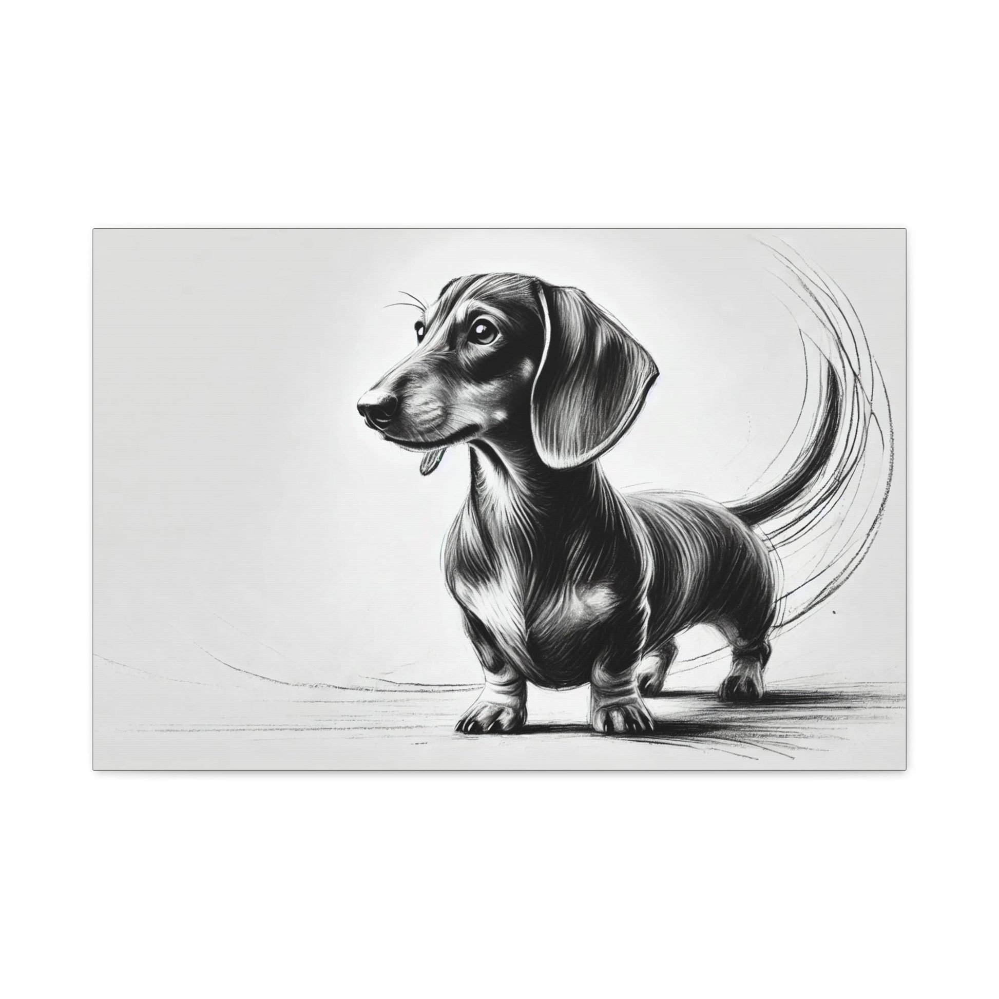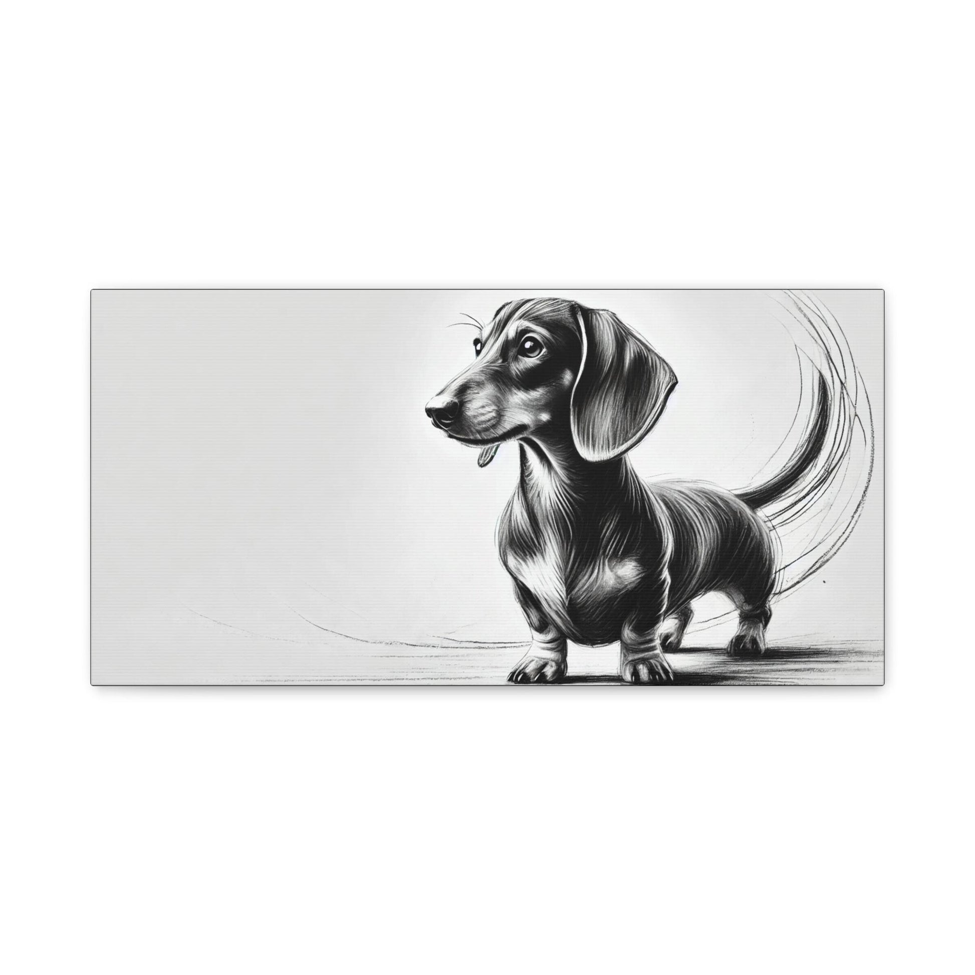 Original, modern Dachshund charcoal sketch portrait on a matte canvas print, perfect for queer dog lovers looking to add a stylish touch to their home decor. Ideal for LGBT housewarming gifts or for anyone who adores Golden Retrievers. Fits well in living rooms, bedrooms, or home offices. A thoughtful gift for gay dog lovers, pet owners, and those who appreciate modern art.