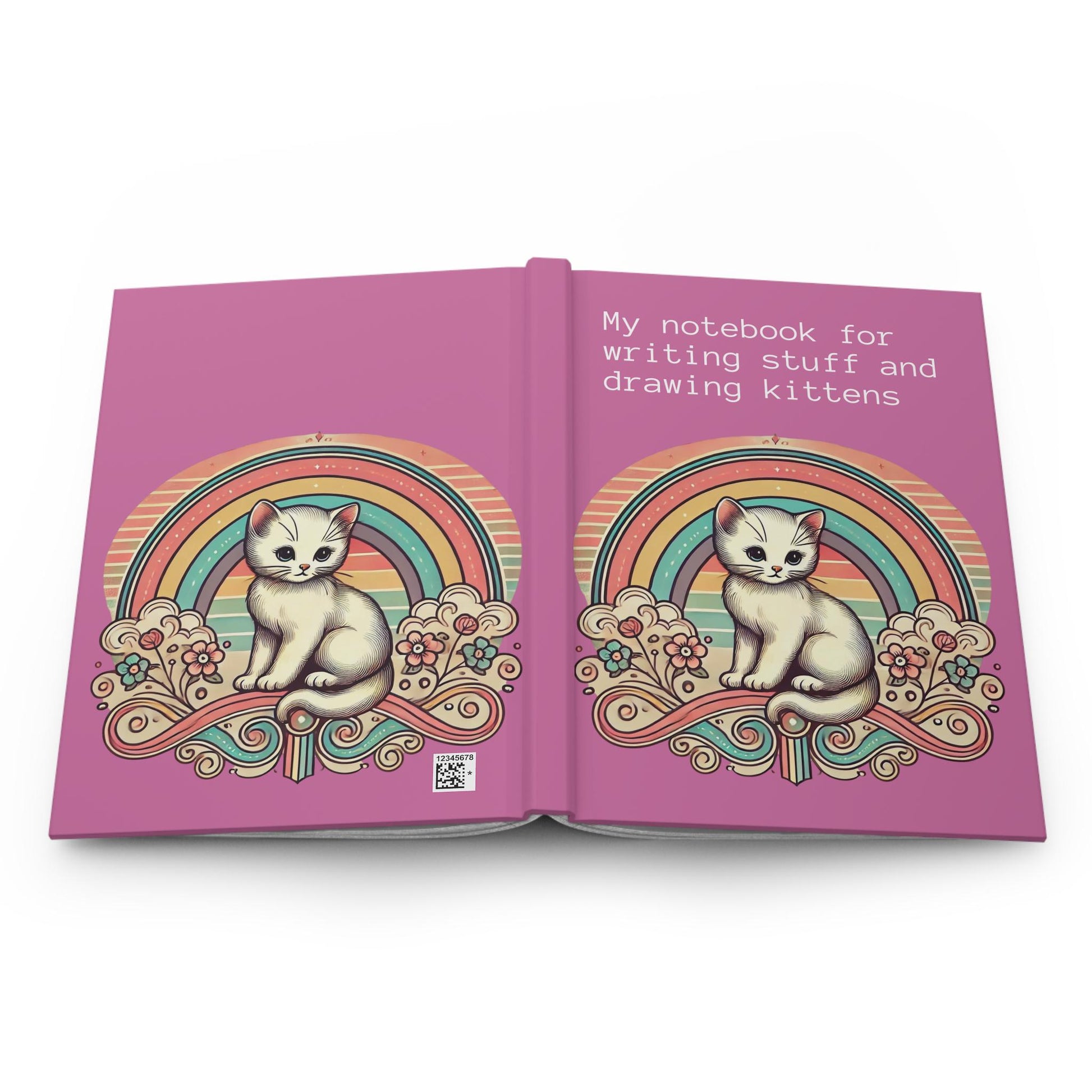 Cat Journal Hardcover - Funny Vintage Design Pink Matte Journal - Humorous Notebook, Book Lovers Gift, Retro Art Diary