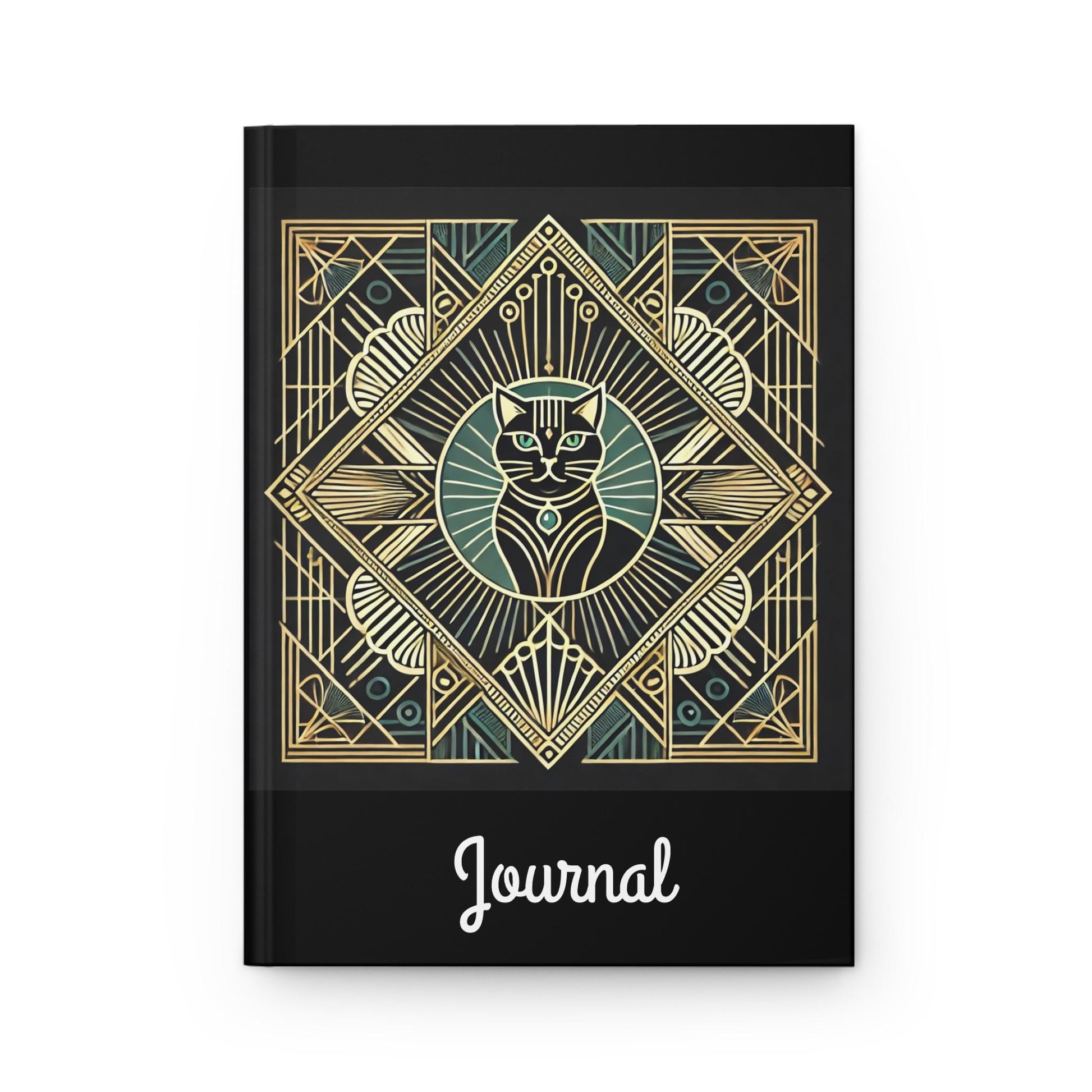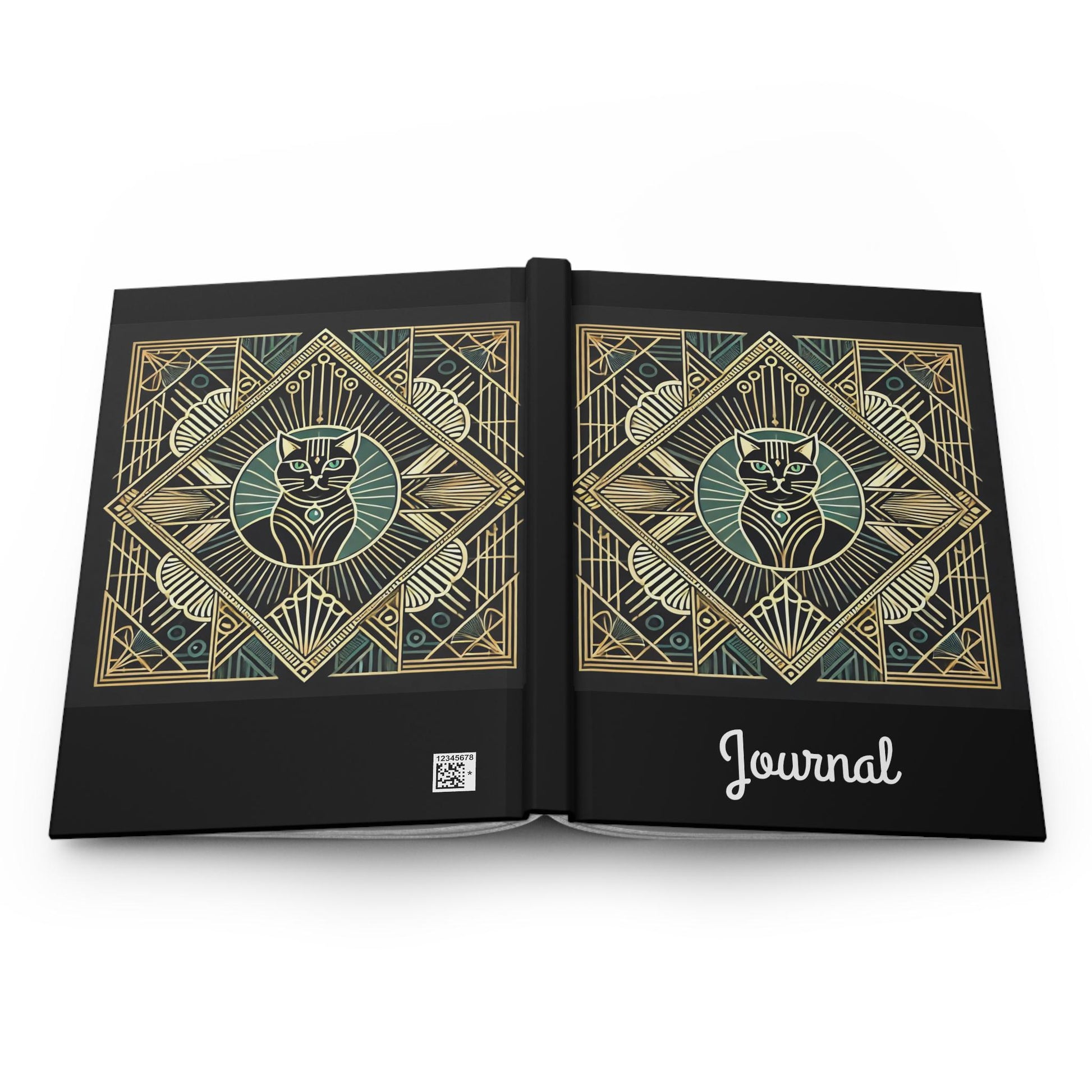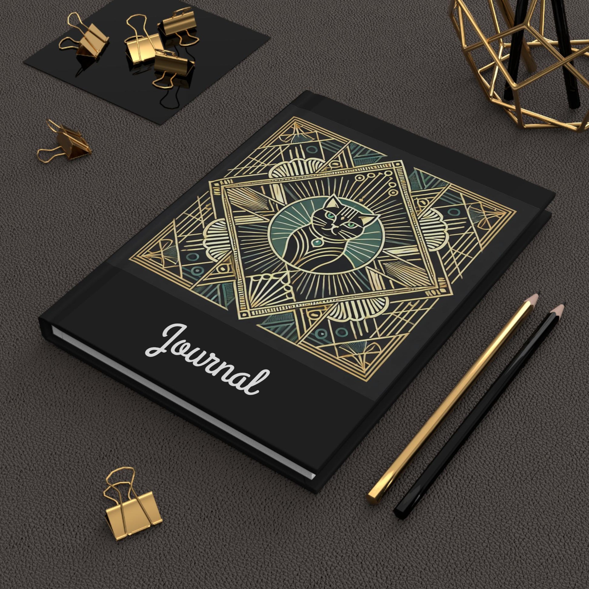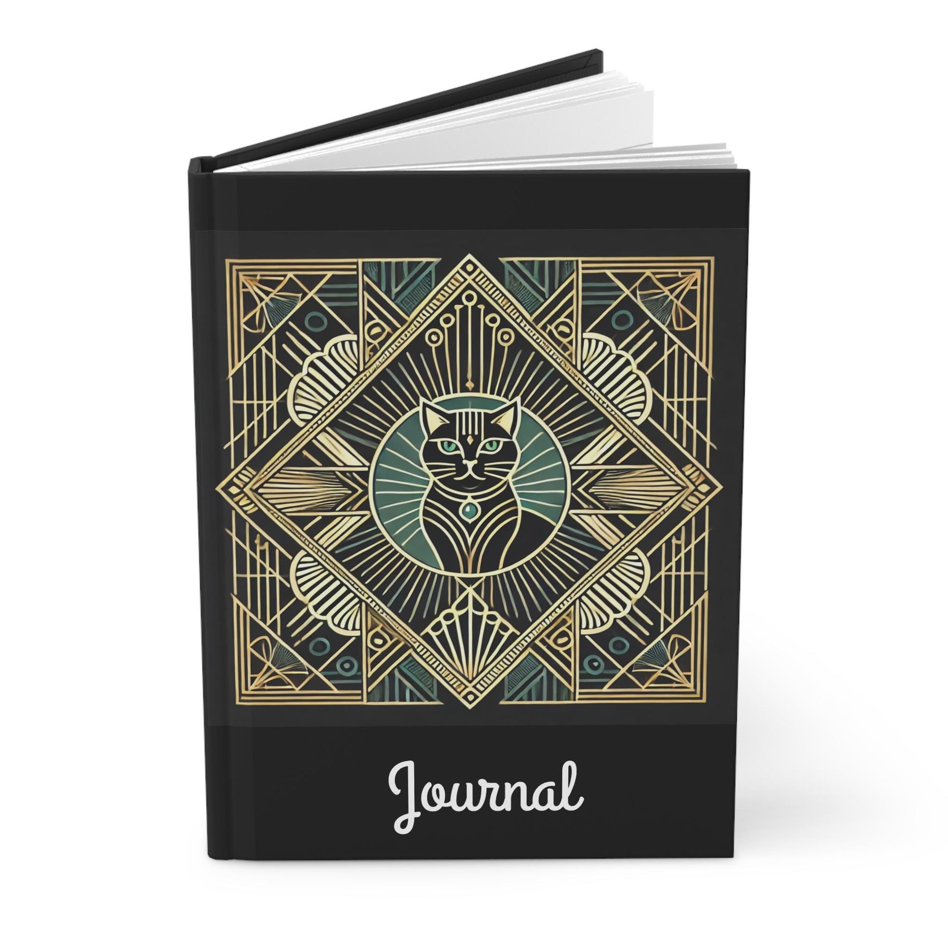 Cat Journal Hardcover - Vintage Art Deco Design - Book Lovers Gift, Retro Diary, Nature Journal, Literature Notebook