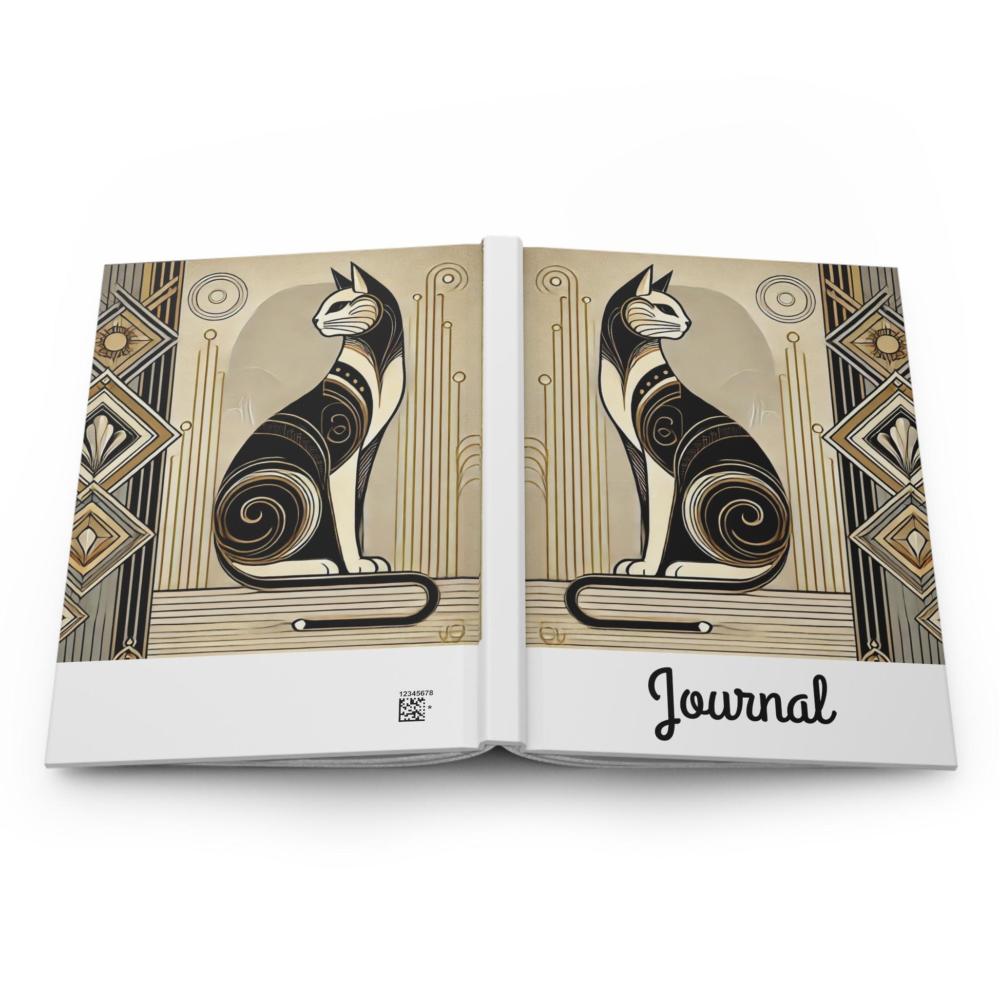 Cat Journal Hardcover - Vintage Art Deco Design - Book Lovers Gift, Retro Diary, Nature Journal, Literature Notebook