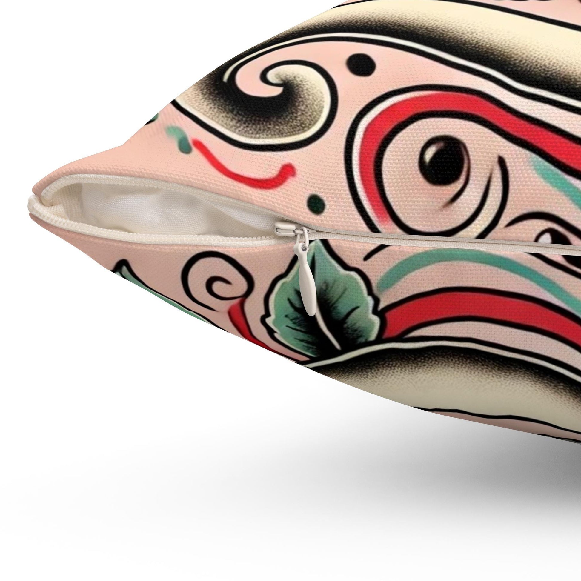Cat Square Pillow, Vintage Tattoo Design, Retro Charm, Housewarming Gift, Spun Polyester Cushion Cover, Cat Lover, Soft Throw Pillow