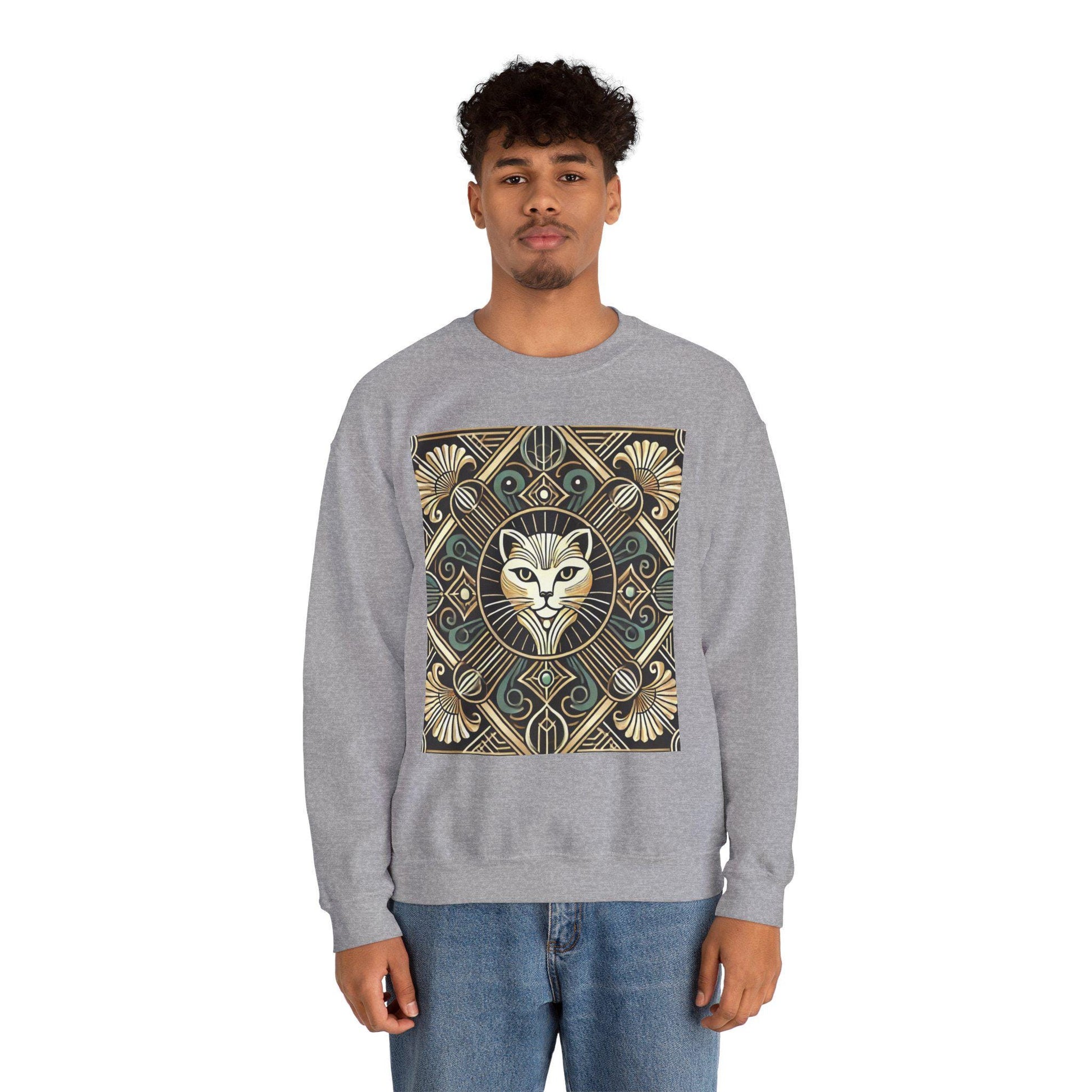 Cat Sweatshirt, Art Deco Design, Unisex Crewneck Jumper, Vintage Pullover, Gift for Cat Lover, Retro Style