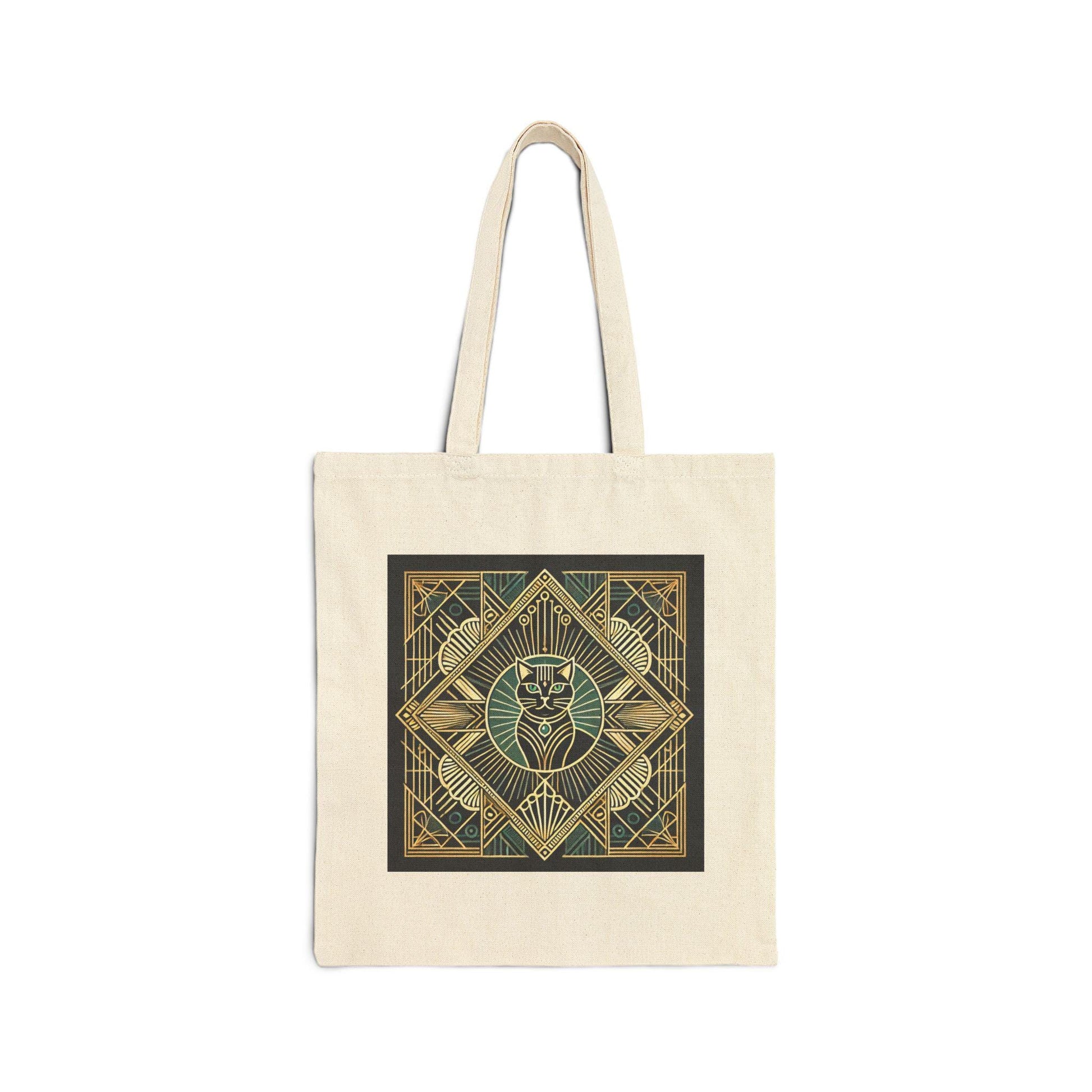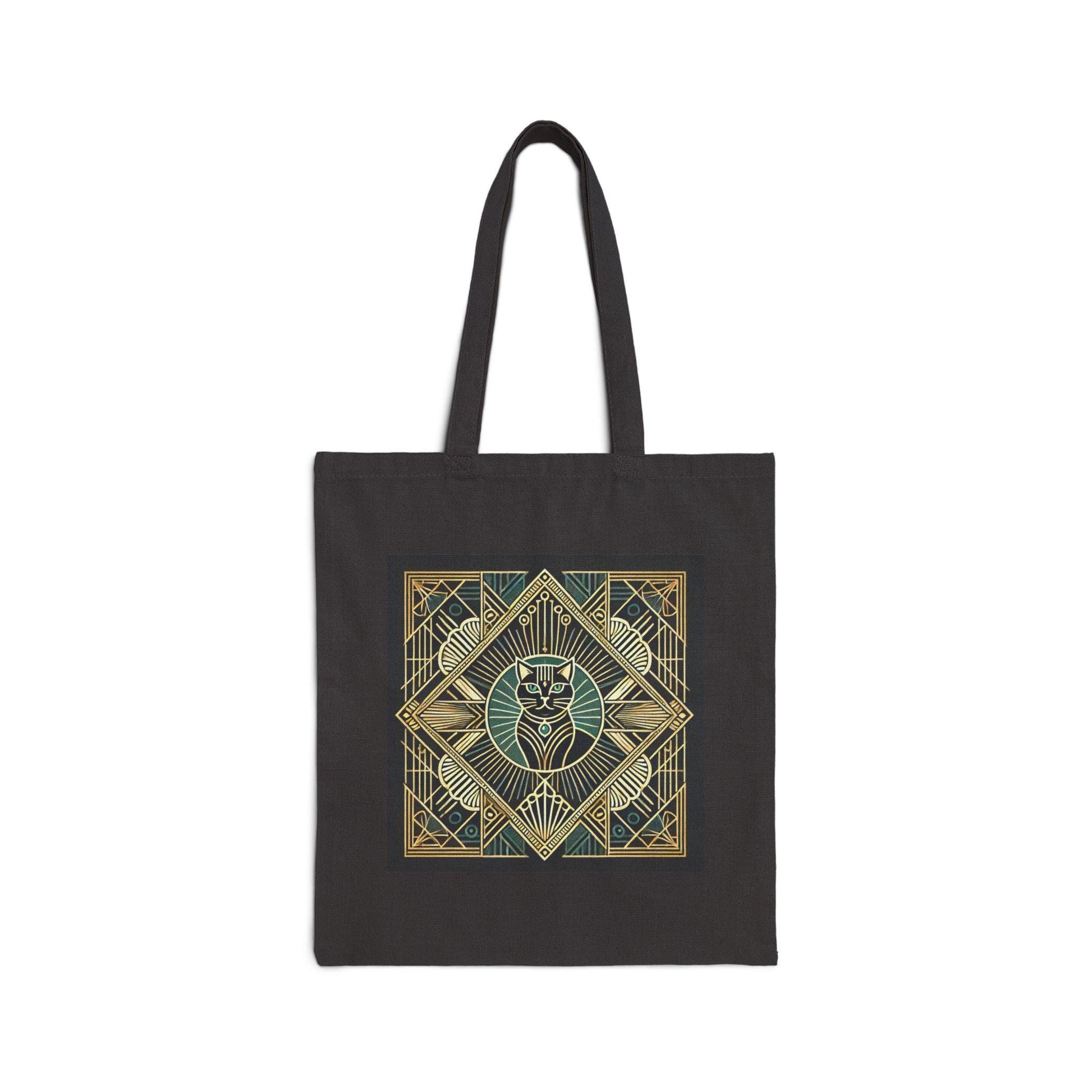 Cat Tote Bag, Art Deco Design, Durable Market Bag, Vintage Chic, Book Lover Gift, Reusable Grocery Bag, Eco-Friendly, Canvas Tote