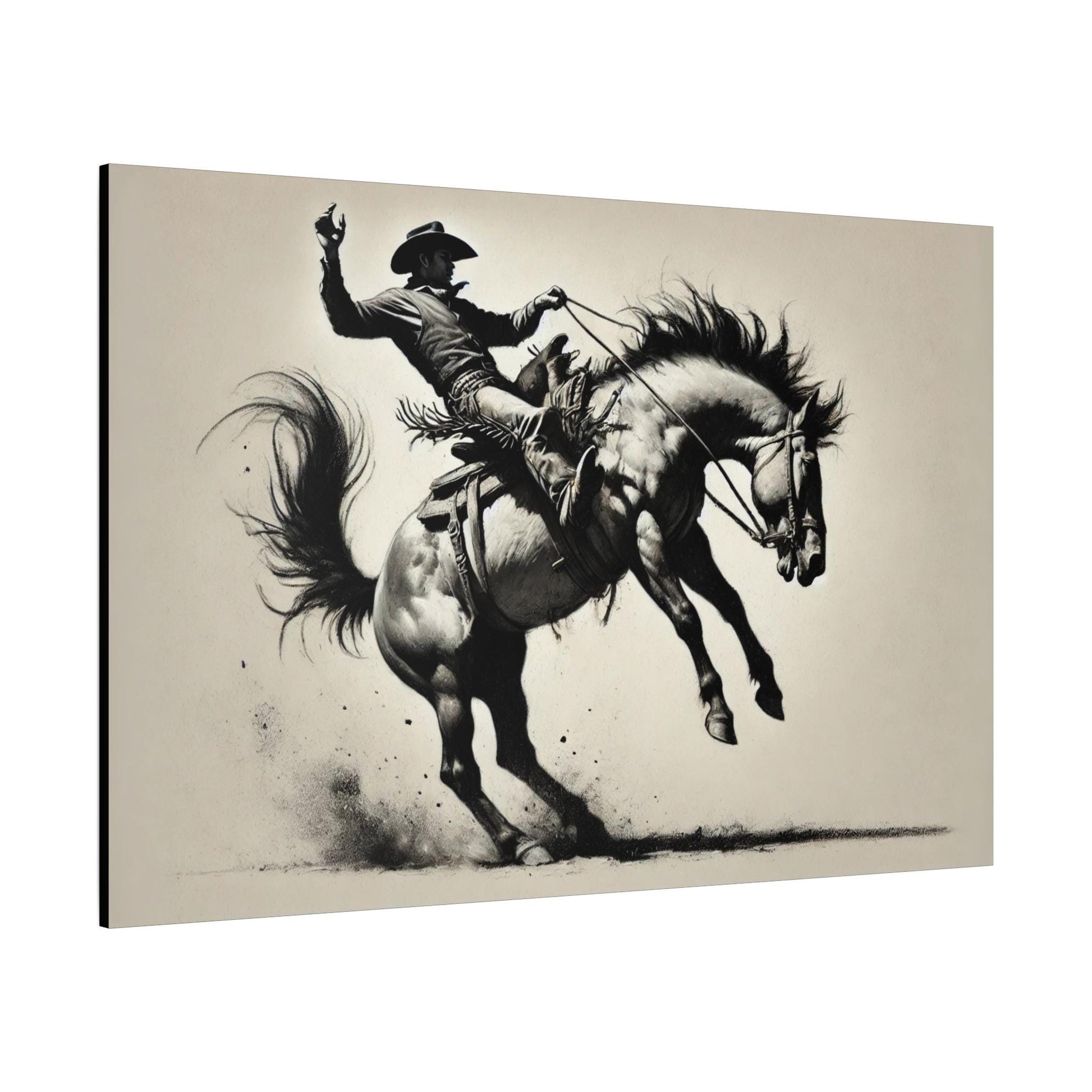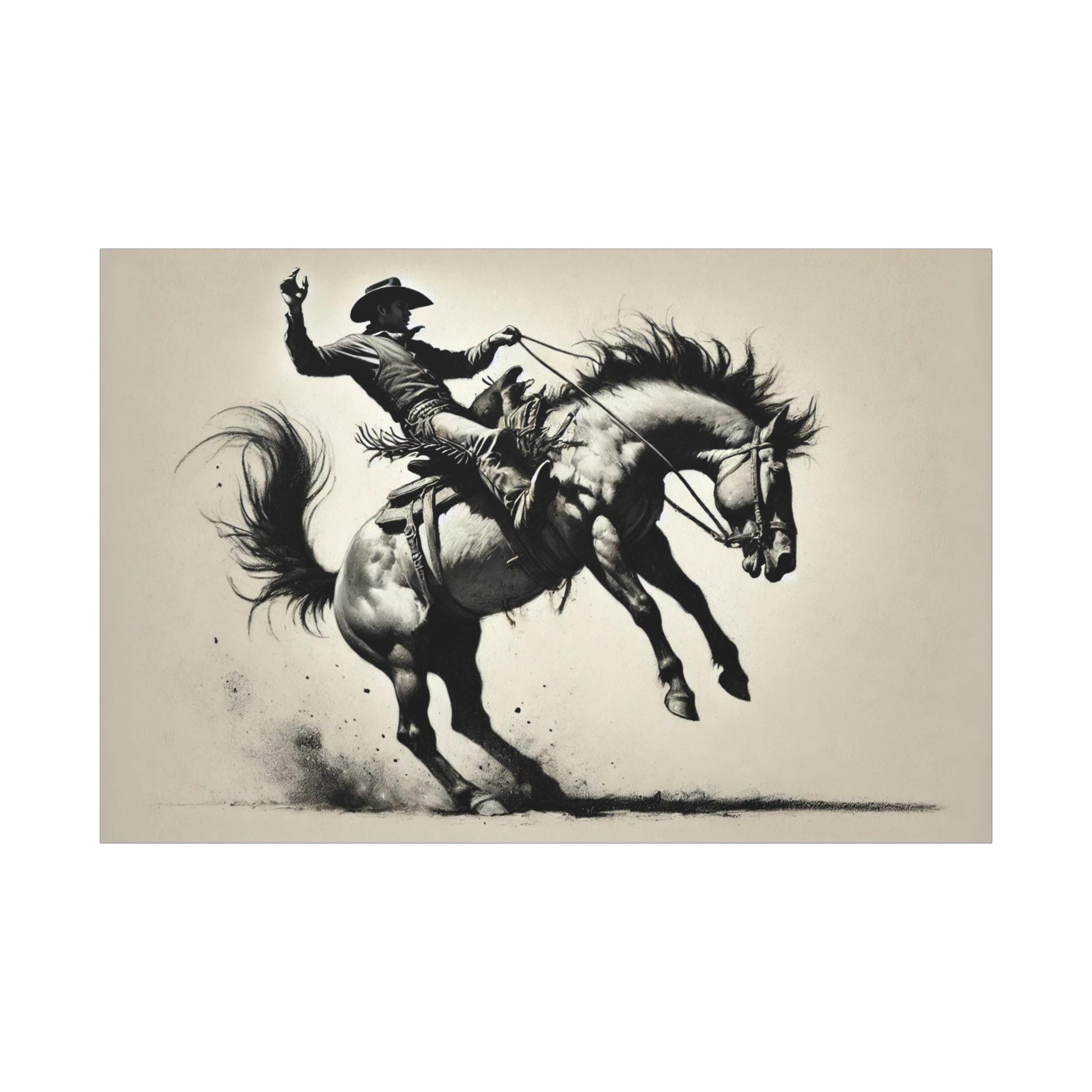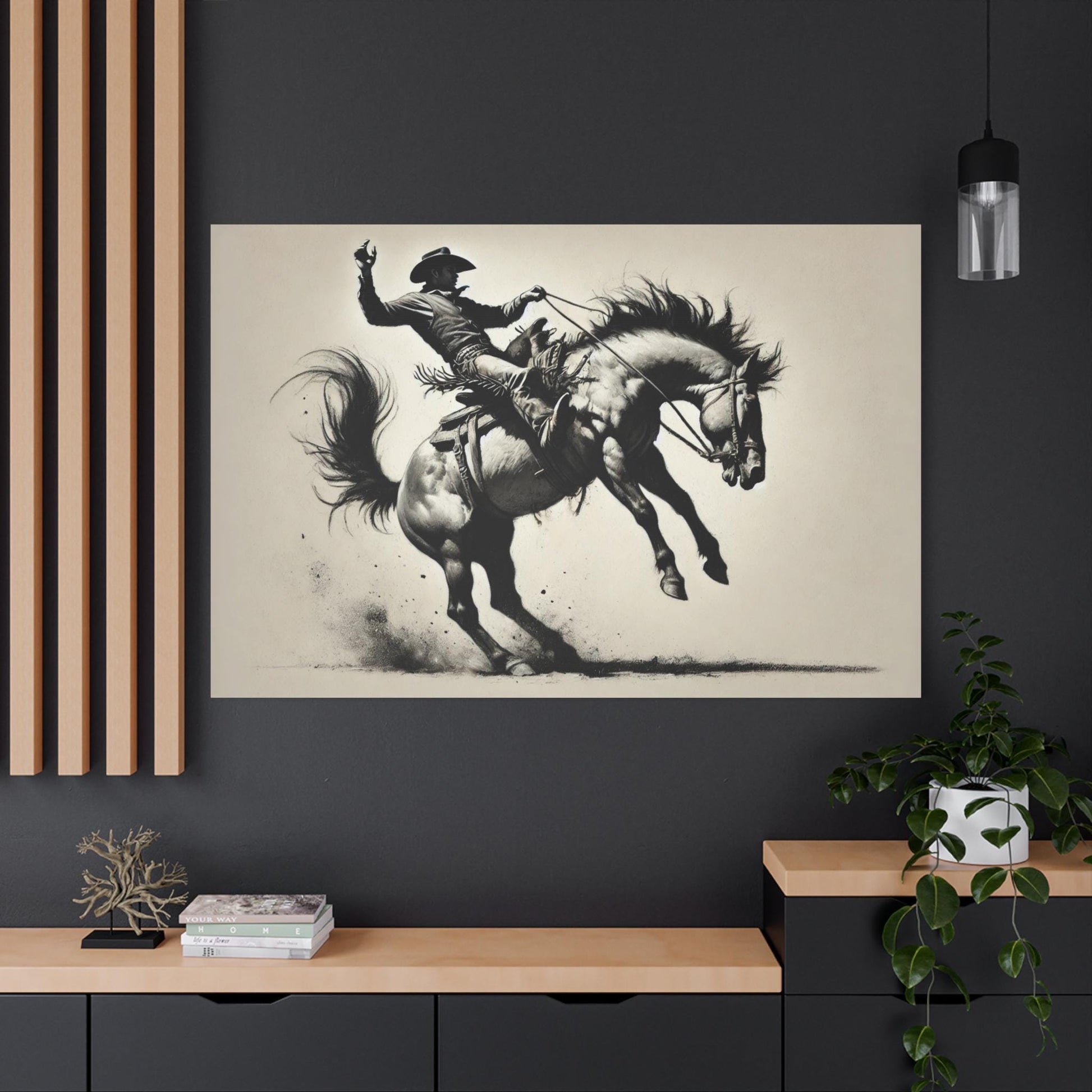 Cowboy Canvas Print, Original Charcoal Sketch, Bucking Bronco, Modern Western Matte Stretched Art, Home & Office Wall Decor, 7 Custom Sizes