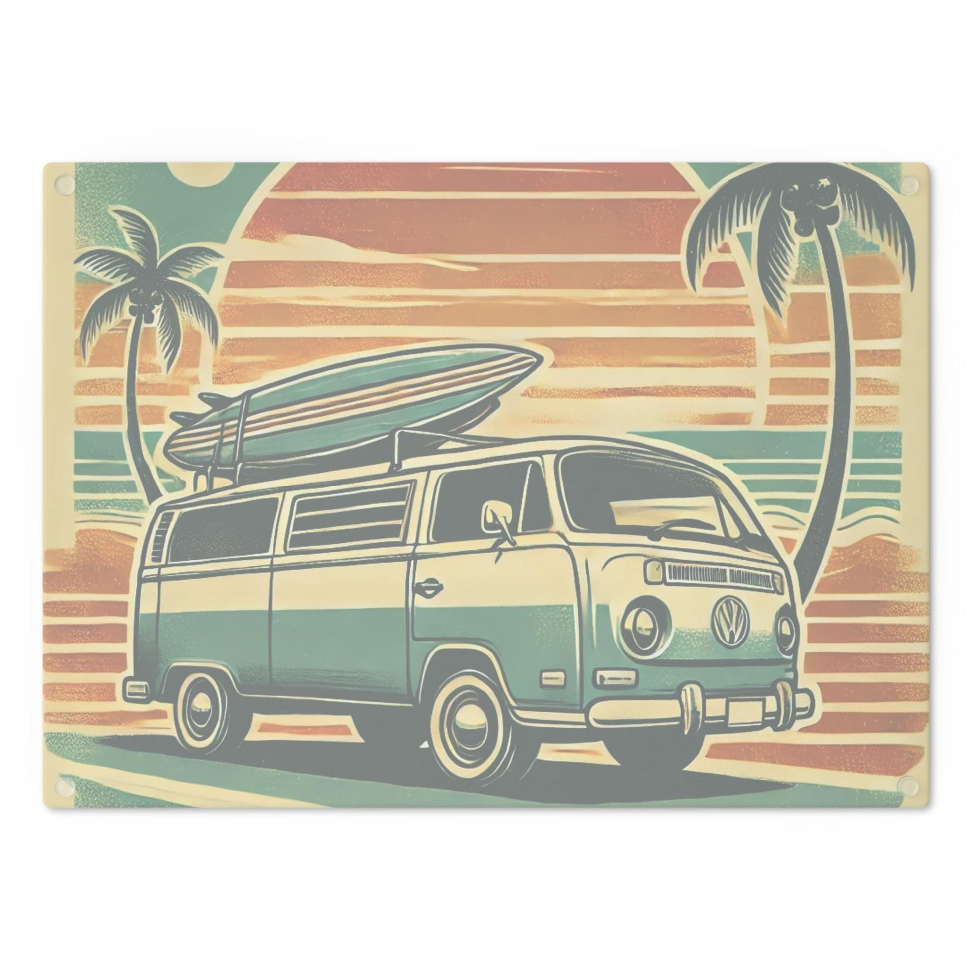 Cutting Board, California Surfer Sunset Custom Design, Kitchen Home Decor, Unique Housewarming Gift, Foodie Chef Gift, Volkswagen Van