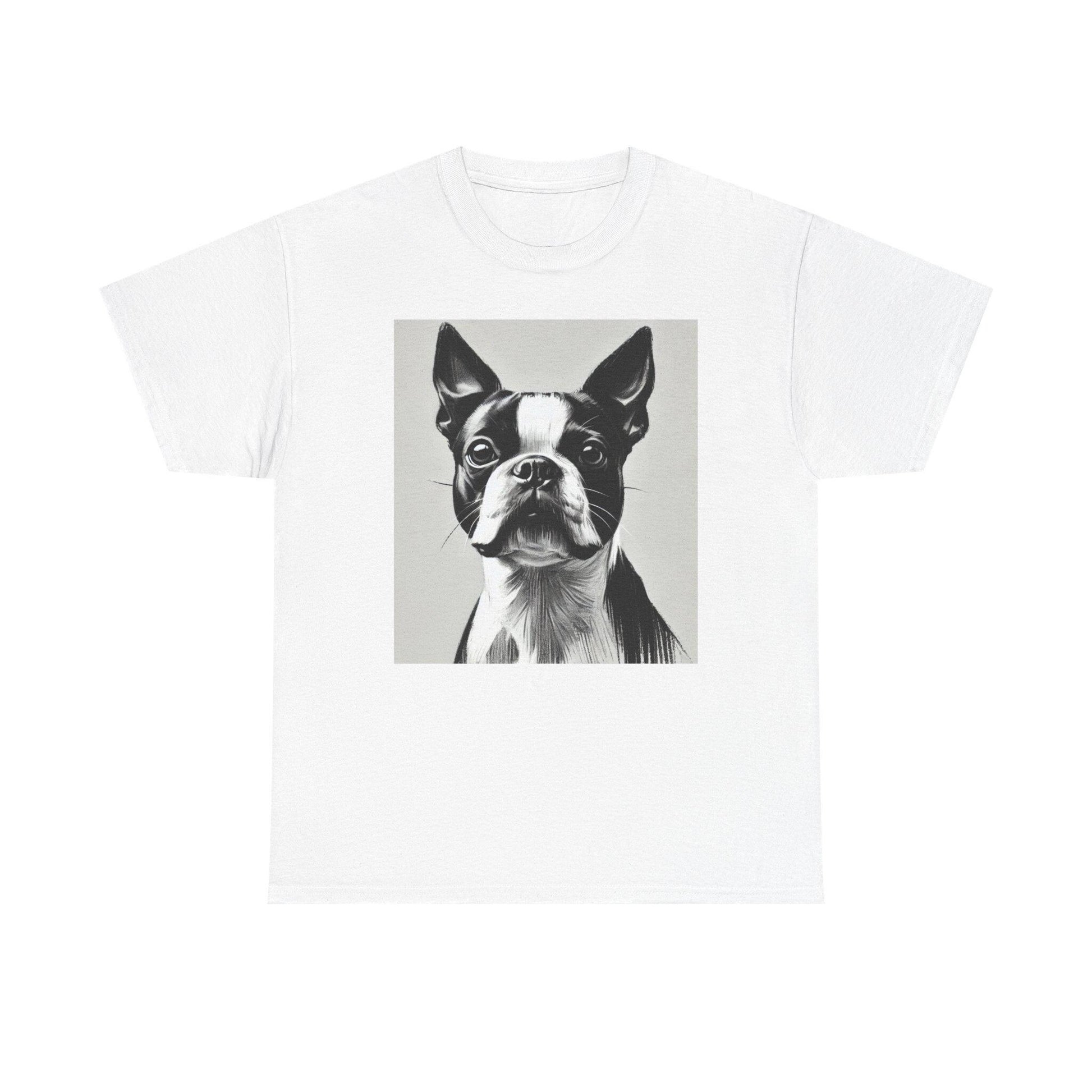 Dog Tee, Boston Terrier Charcoal Sketch Design, Unisex LGBT Boston Dog Lover Gift, Gay Graphic Top, Unisex Heavy Cotton T-shirt, 7 Colors