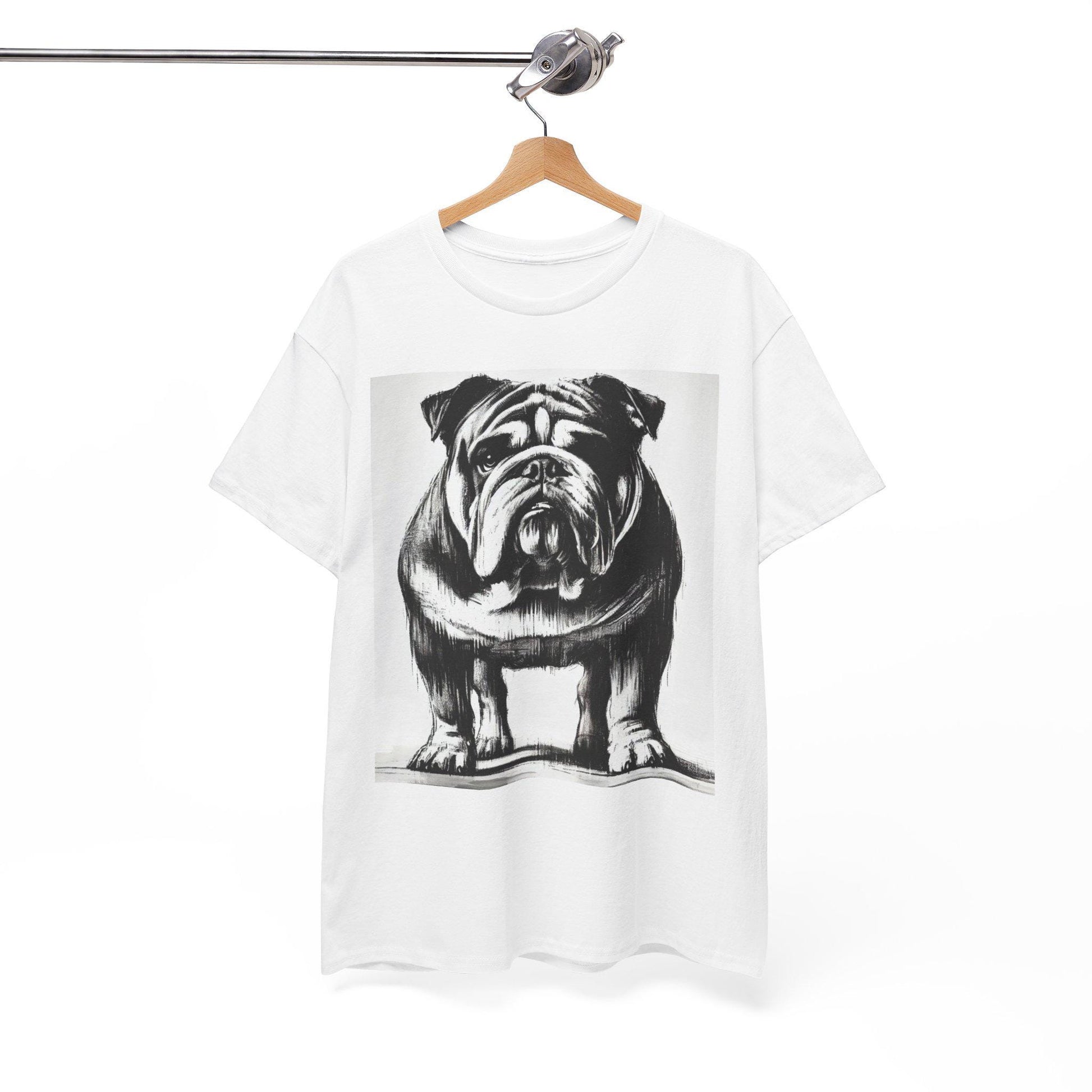 Dog Tee, Bulldog Modern Charcoal Sketch Design, Bulldog Dog Lover Gay Graphic Top Gift, Unisex Heavy Cotton T-shirt, 7 Colors 8 Sizes