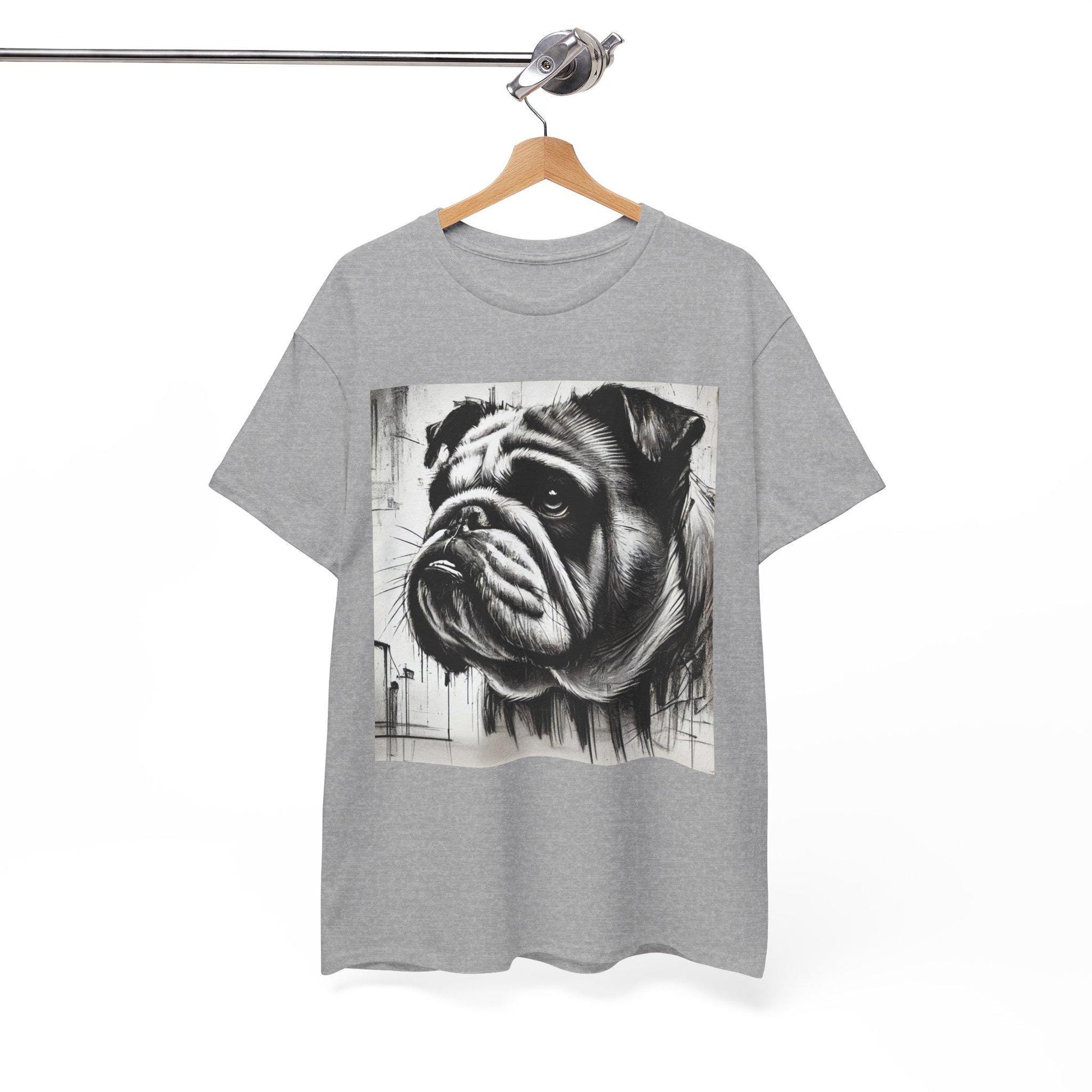 Dog Tee, Bulldog Modern Charcoal Sketch Design, Bulldog Dog Lover Graphic Top Gift, Unisex Heavy Cotton T-shirt, 7 Colors 8 Sizes