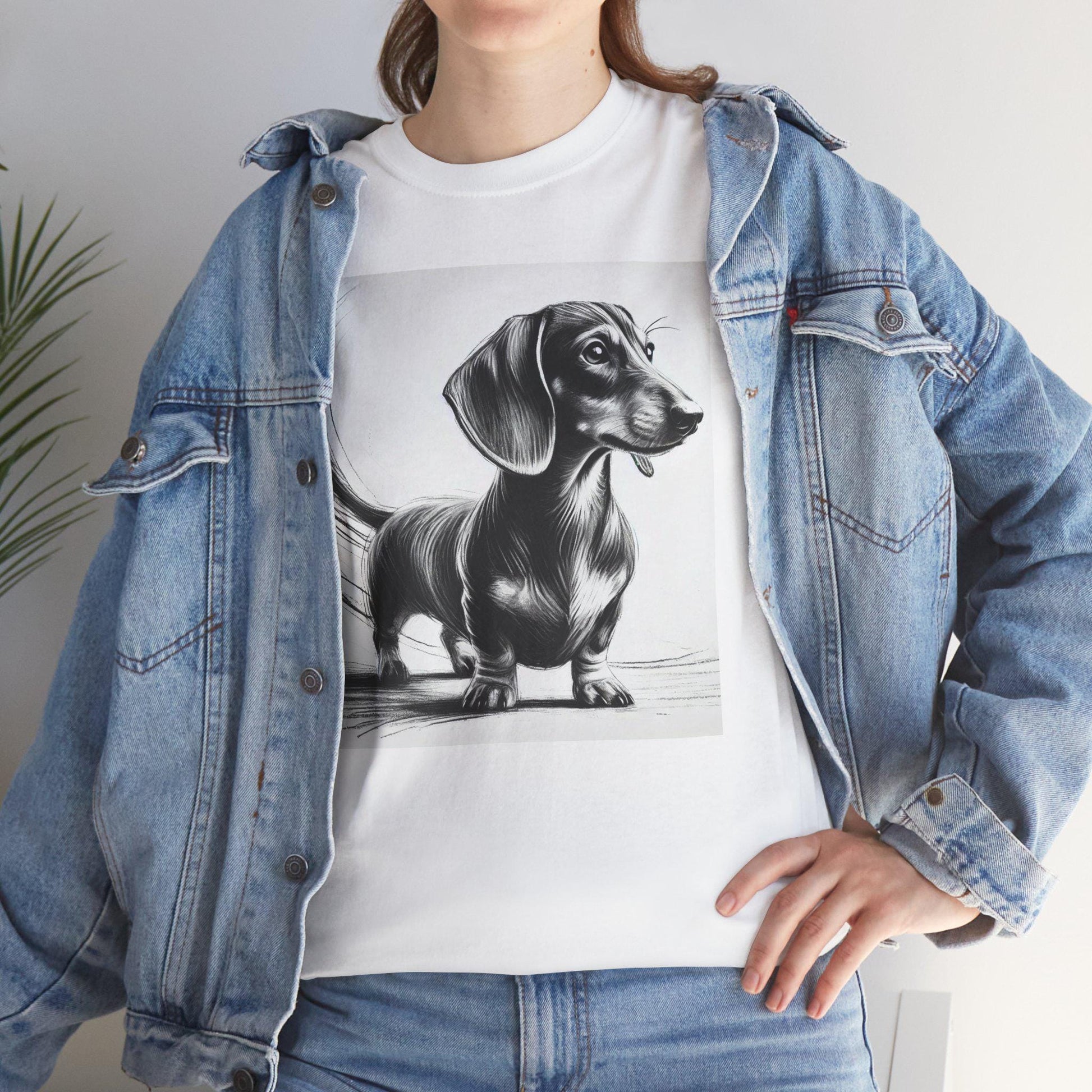 Dog Tee, Dachshund Classic Charcoal Sketch Design, Unisex LGBT Weenie Dog Lover Gift, Gay Graphic Top, Unisex Heavy Cotton T-shirt, 7 Colors