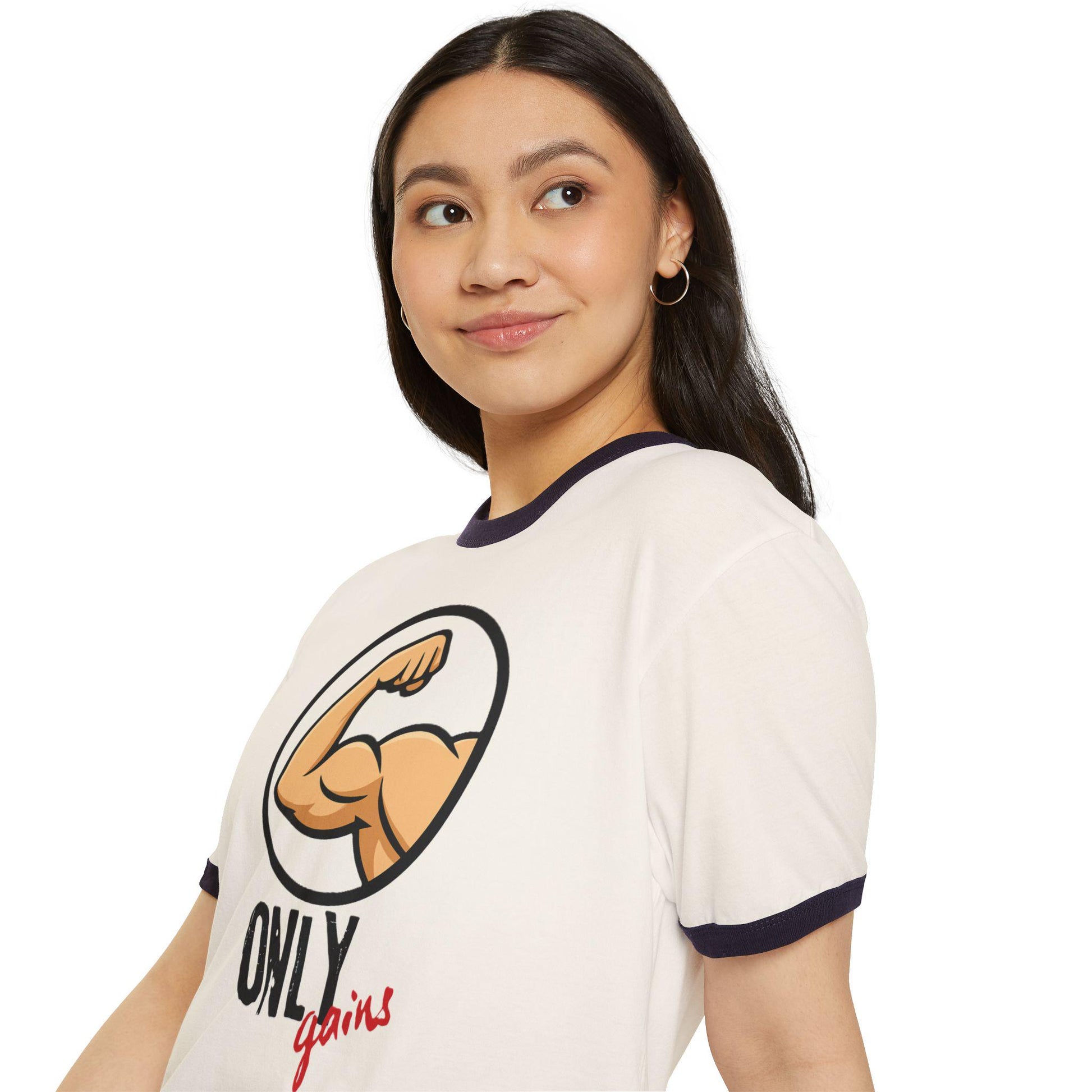 Fitness Motivation Muscle Ringer T-Shirt, Gift for Gym Lovers, Workout Gear, Casual Tee, Athletic Wear, Funny Only Gains, Unisex Cotton