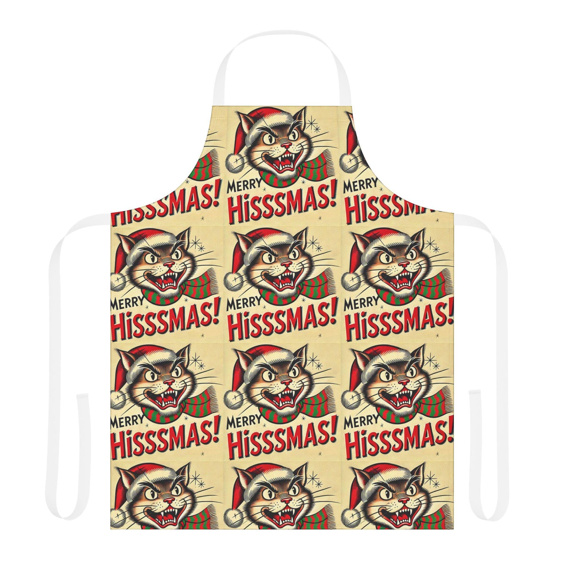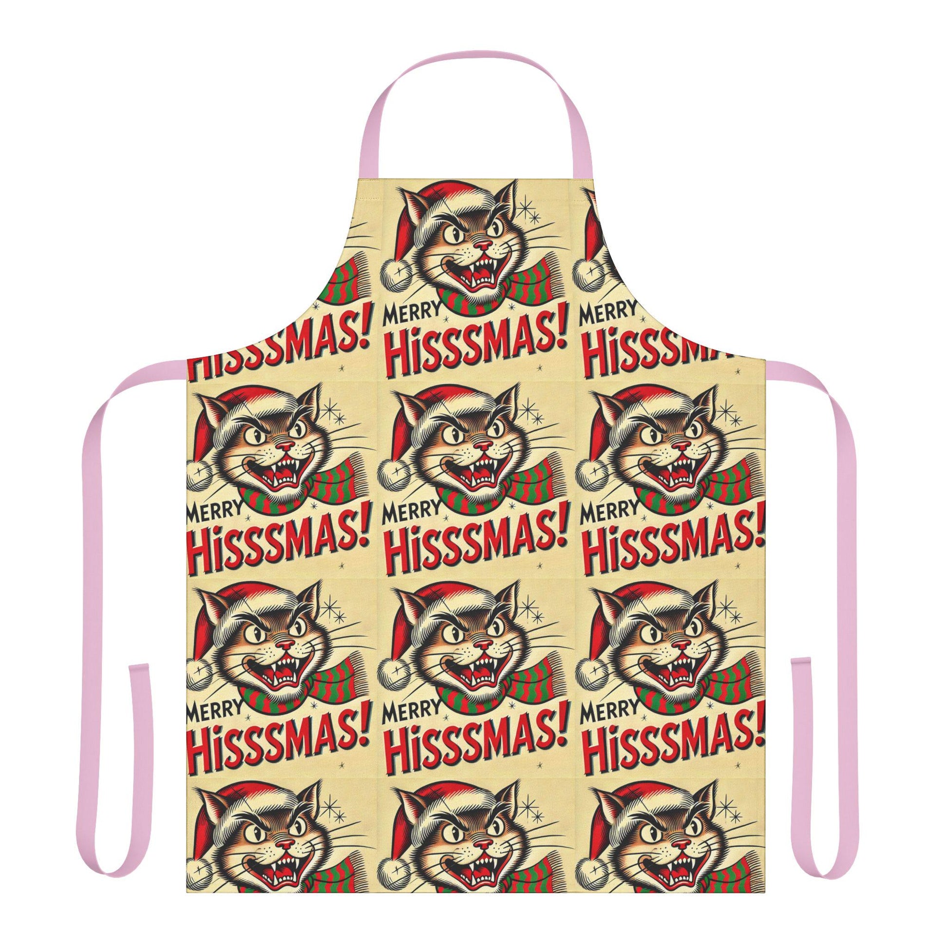 Funny Christmas Gift Apron for Cat Lovers, 5-Color Straps to Choose From, Grilling, Kiss the Cook, Cat Mom, Cat Dad