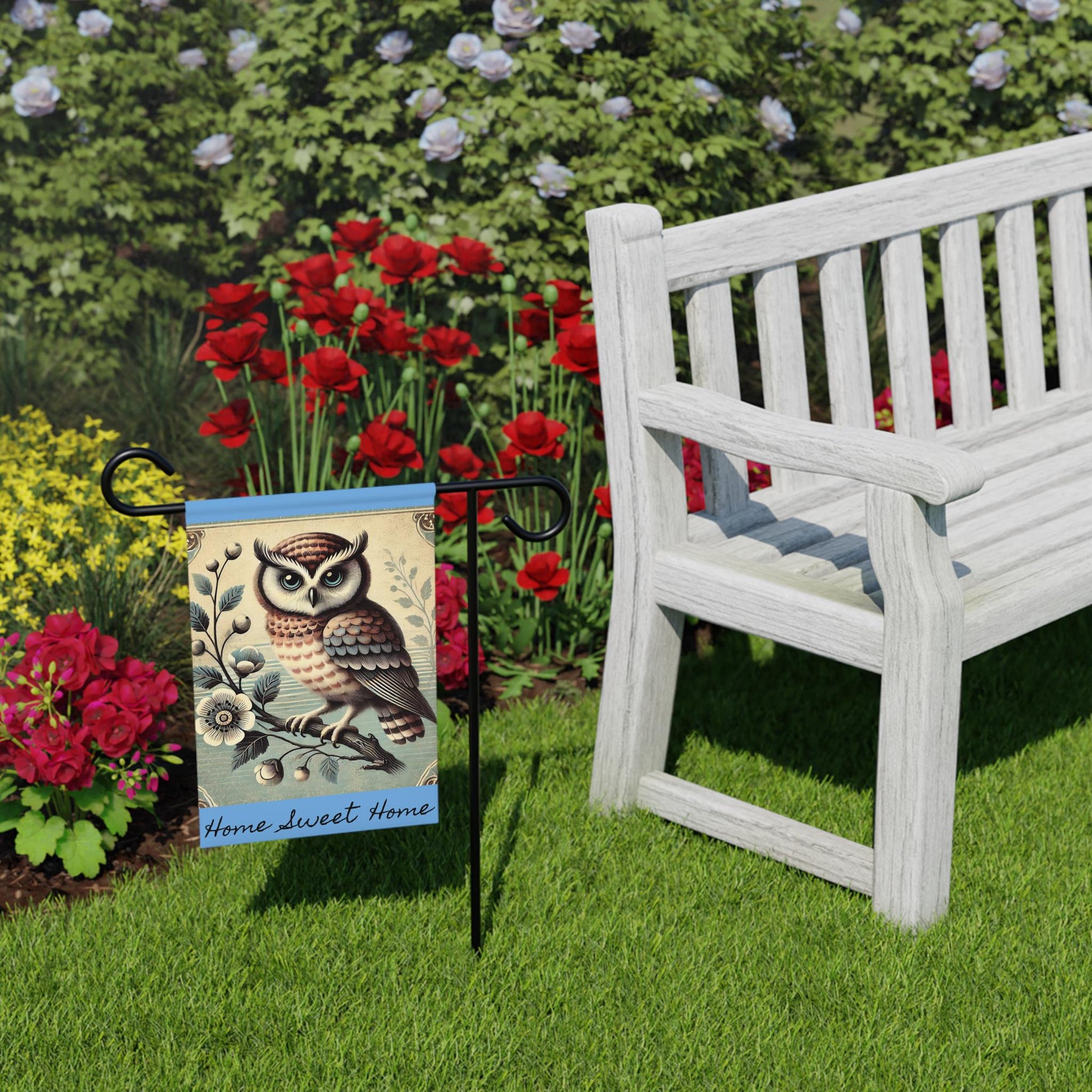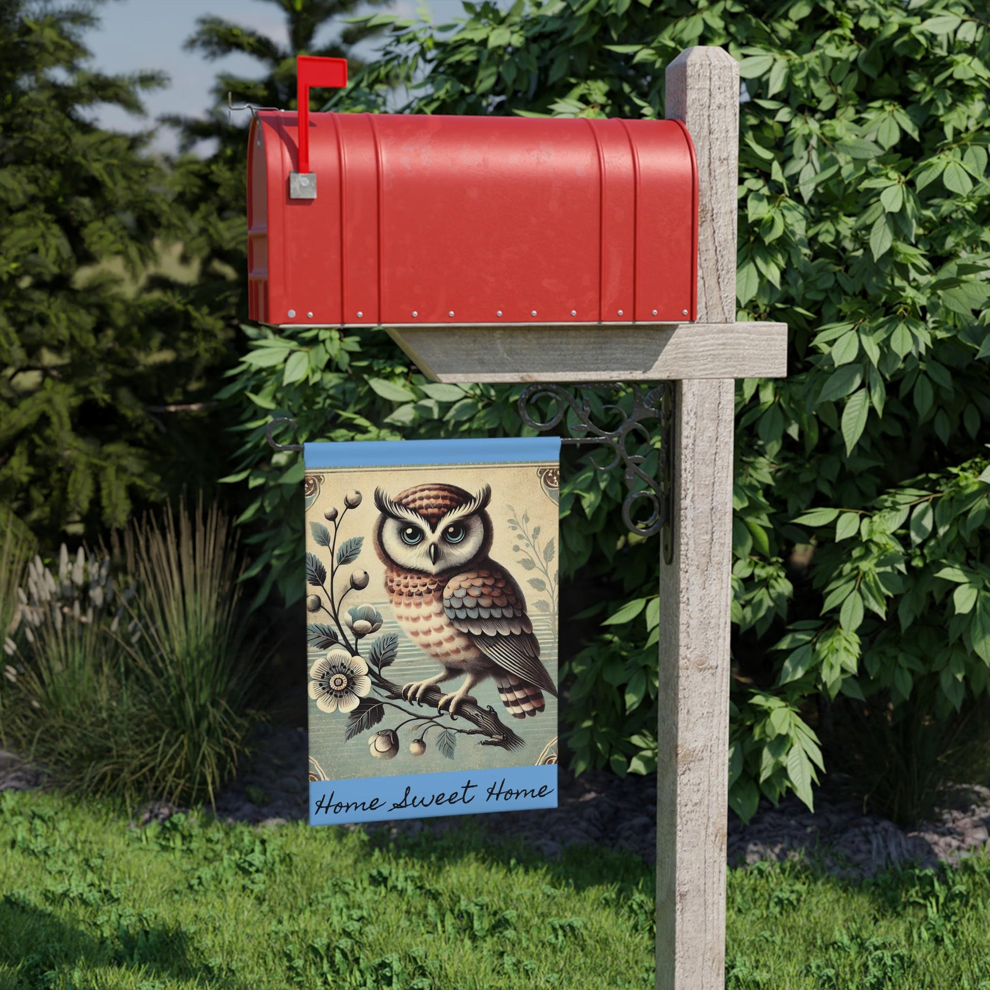 Add a touch of nature to your outdoor space with this Garden Banner featuring a charming Hoot Owl design. The banner exudes a Mid-Century Modern Vibe perfect for autumn. An ideal addition for nature lovers looking to spruce up their garden or yard. Suitable for fall decor, outdoor parties, and birdwatching enthusiasts.