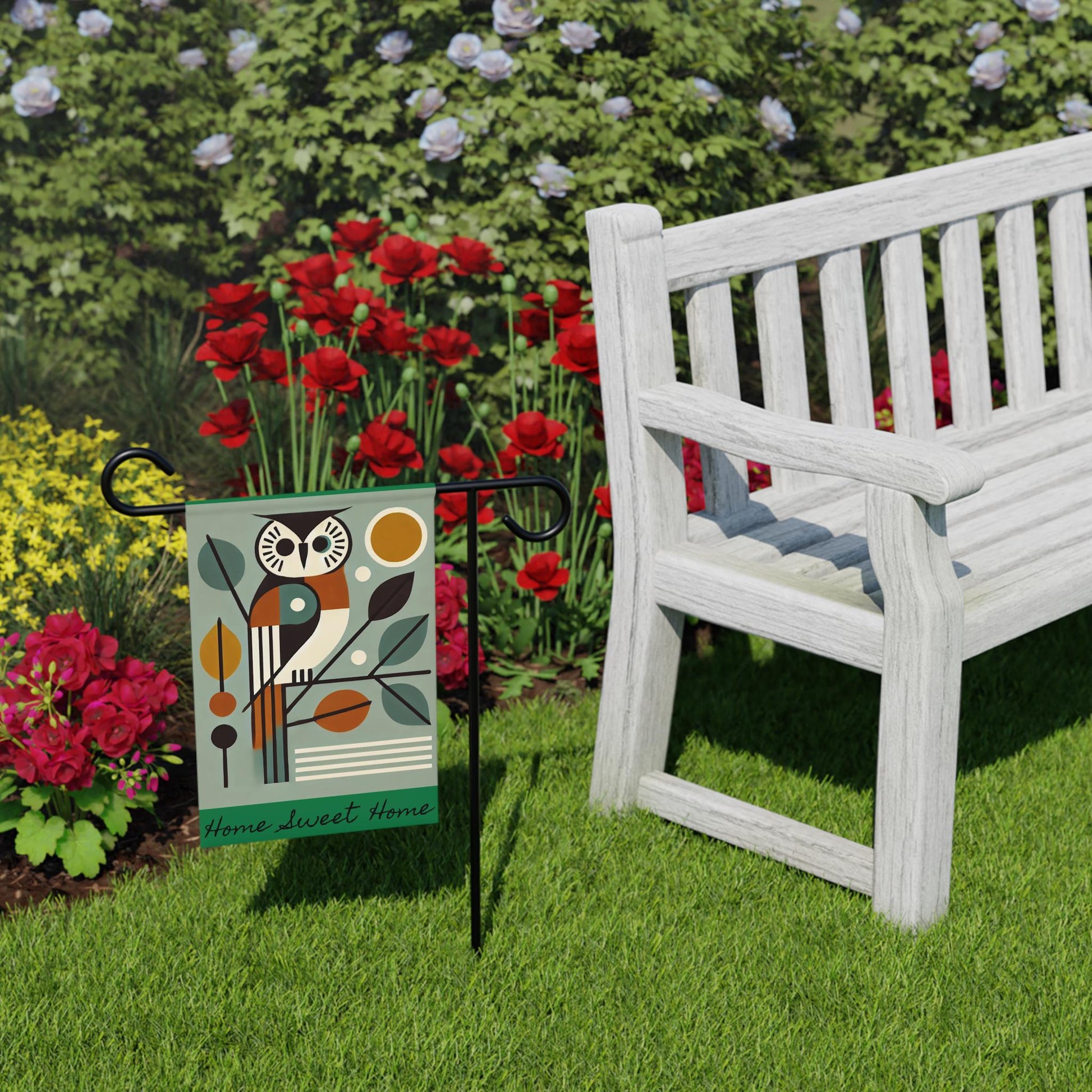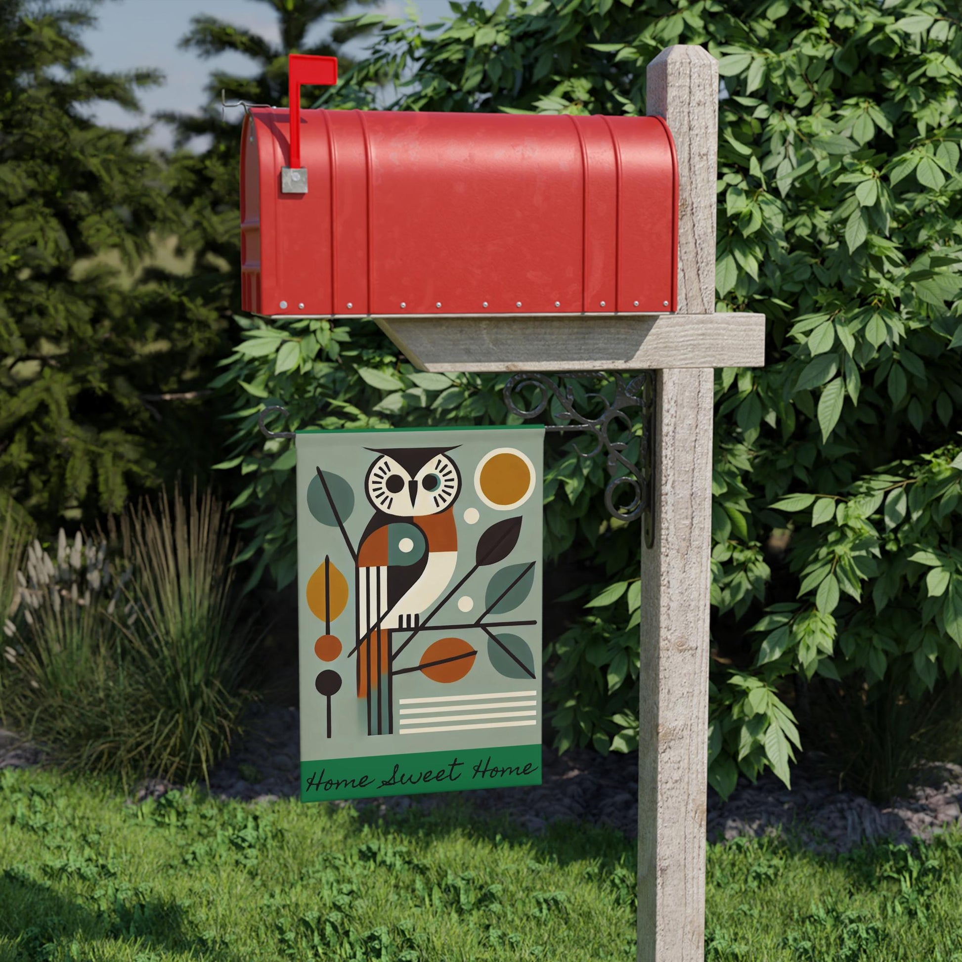 Add a touch of nature to your outdoor space with this Garden Banner featuring a charming Hoot Owl design. The banner exudes a Mid-Century Modern Vibe perfect for autumn. An ideal addition for nature lovers looking to spruce up their garden or yard. Suitable for fall decor, outdoor parties, and birdwatching enthusiasts.