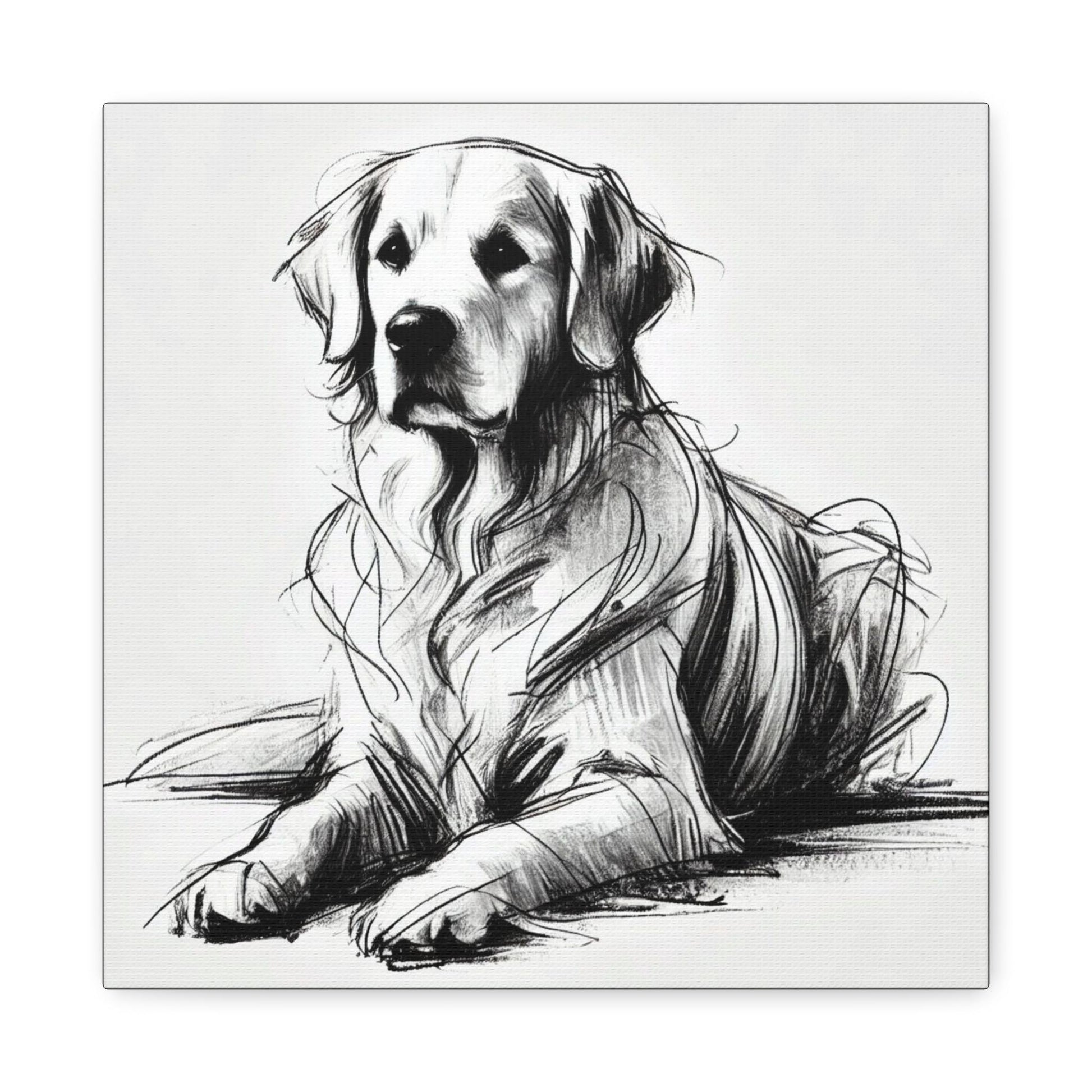 Classic Golden Retriever charcoal sketch design on matte canvas, perfect for queer dog lovers and those seeking chic, modern decor. Ideal for LGBT housewarming or gay birthday gifts, this canvas exudes puppy charm. Fits well in living rooms, bedrooms, and offices, adding a touch of cool to any space.
