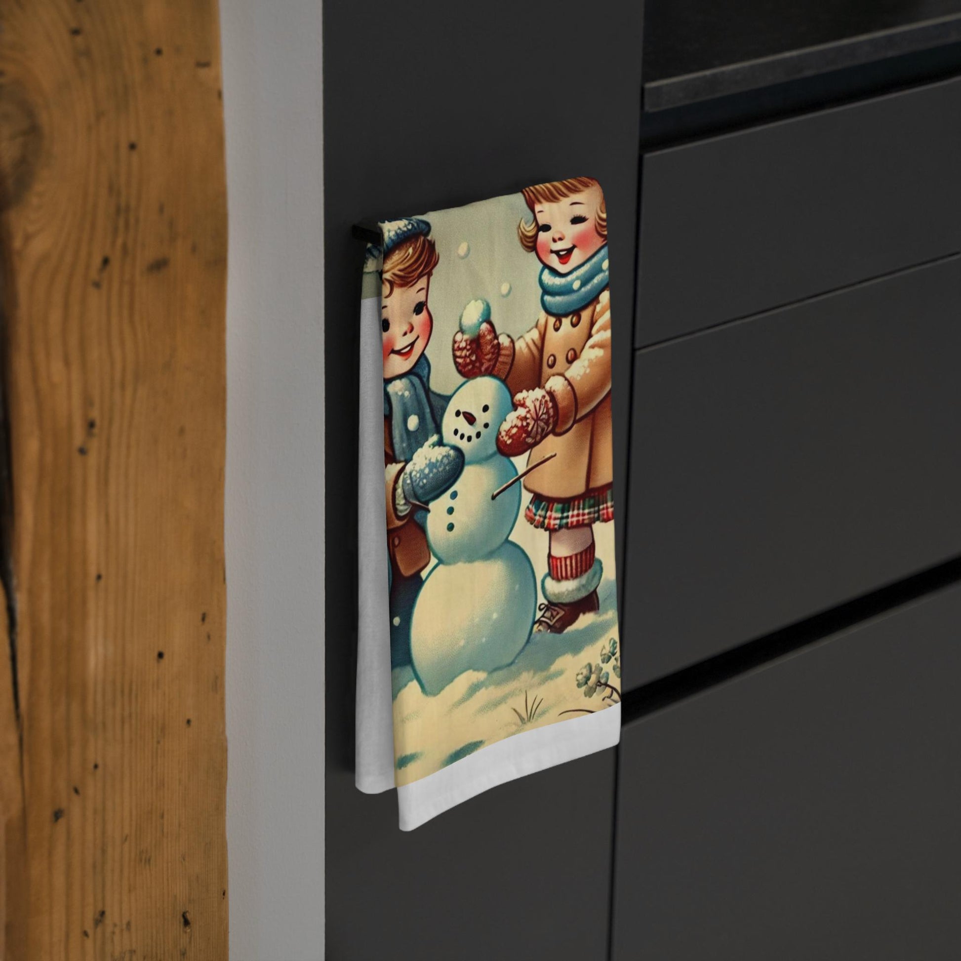 Holiday Tea Towel - Snowman, Nostalgic Decor Dish Towel, Winter Kitchen Towel, Farmhouse Tea Towel, Christmas Gift