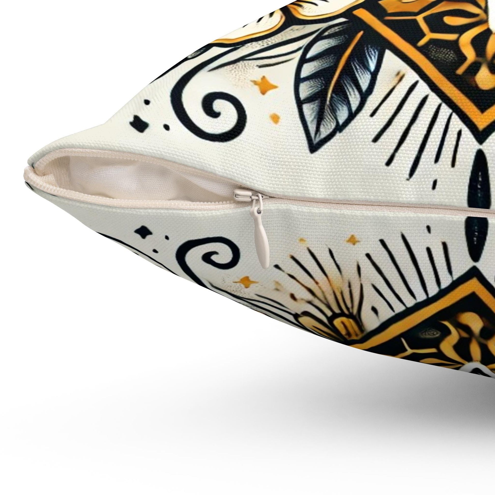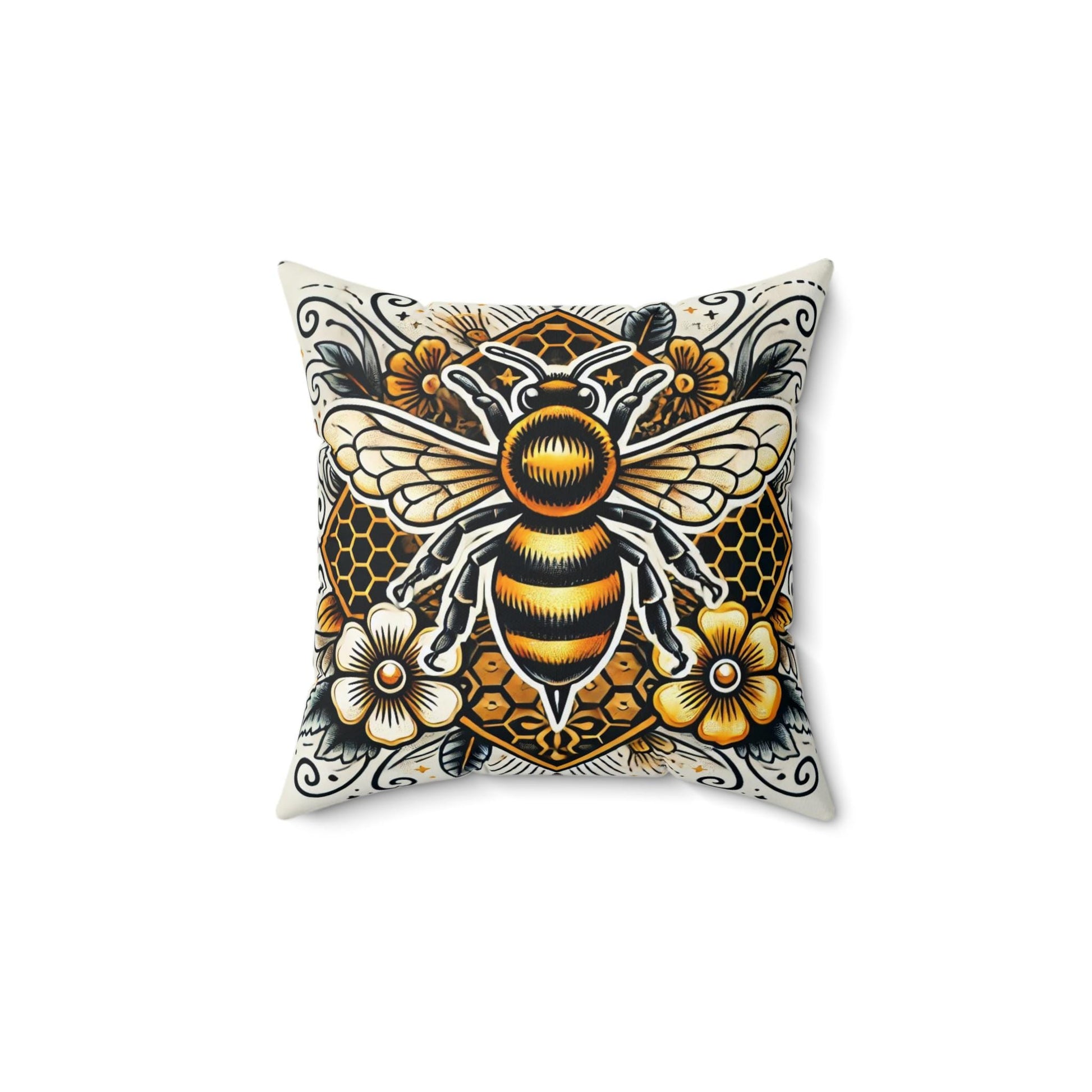 Honey Bee Square Pillow, Vintage Tattoo Design, Retro Charm, Housewarming Gift, Spun Polyester Cushion Cover, Nature Lover, Throw Pillow