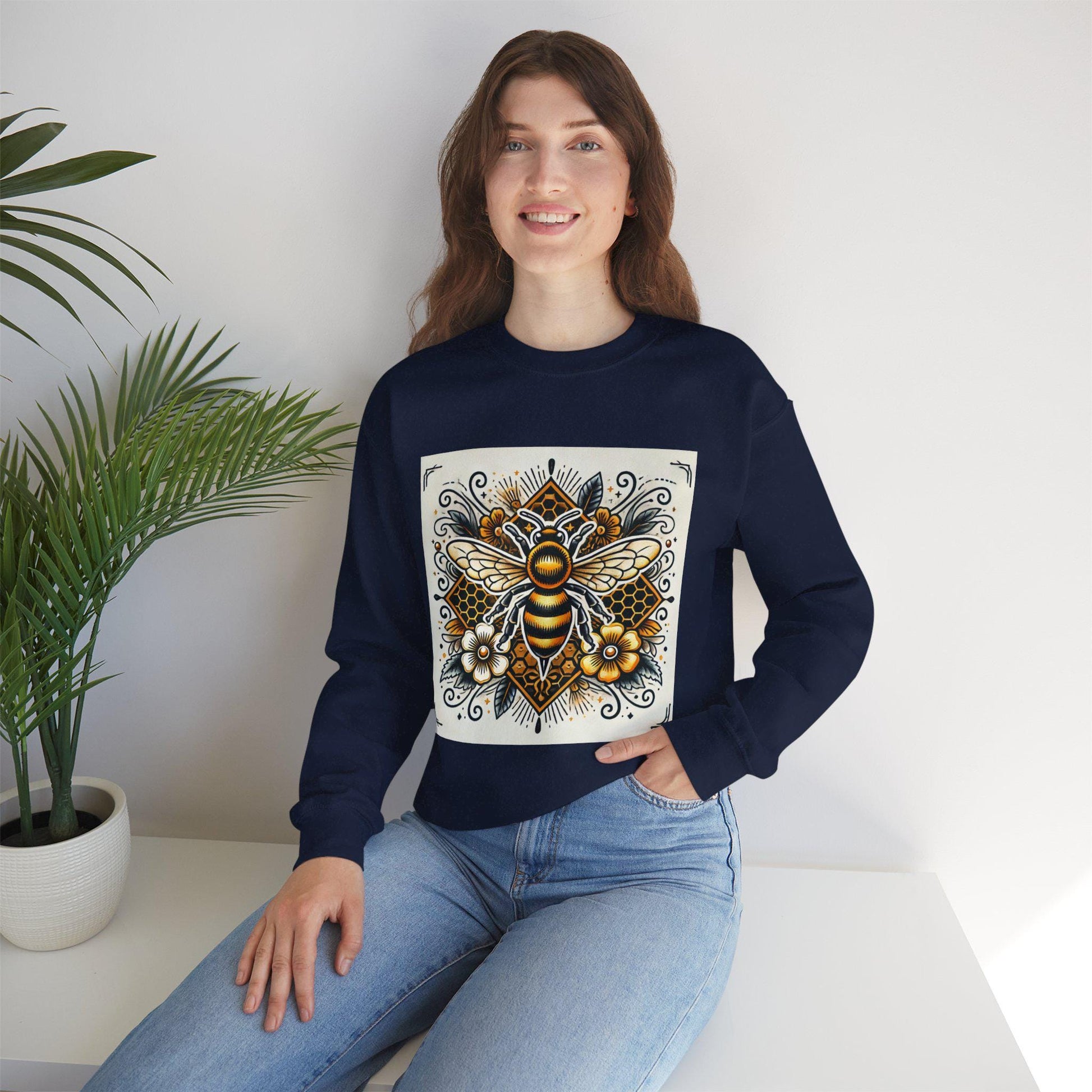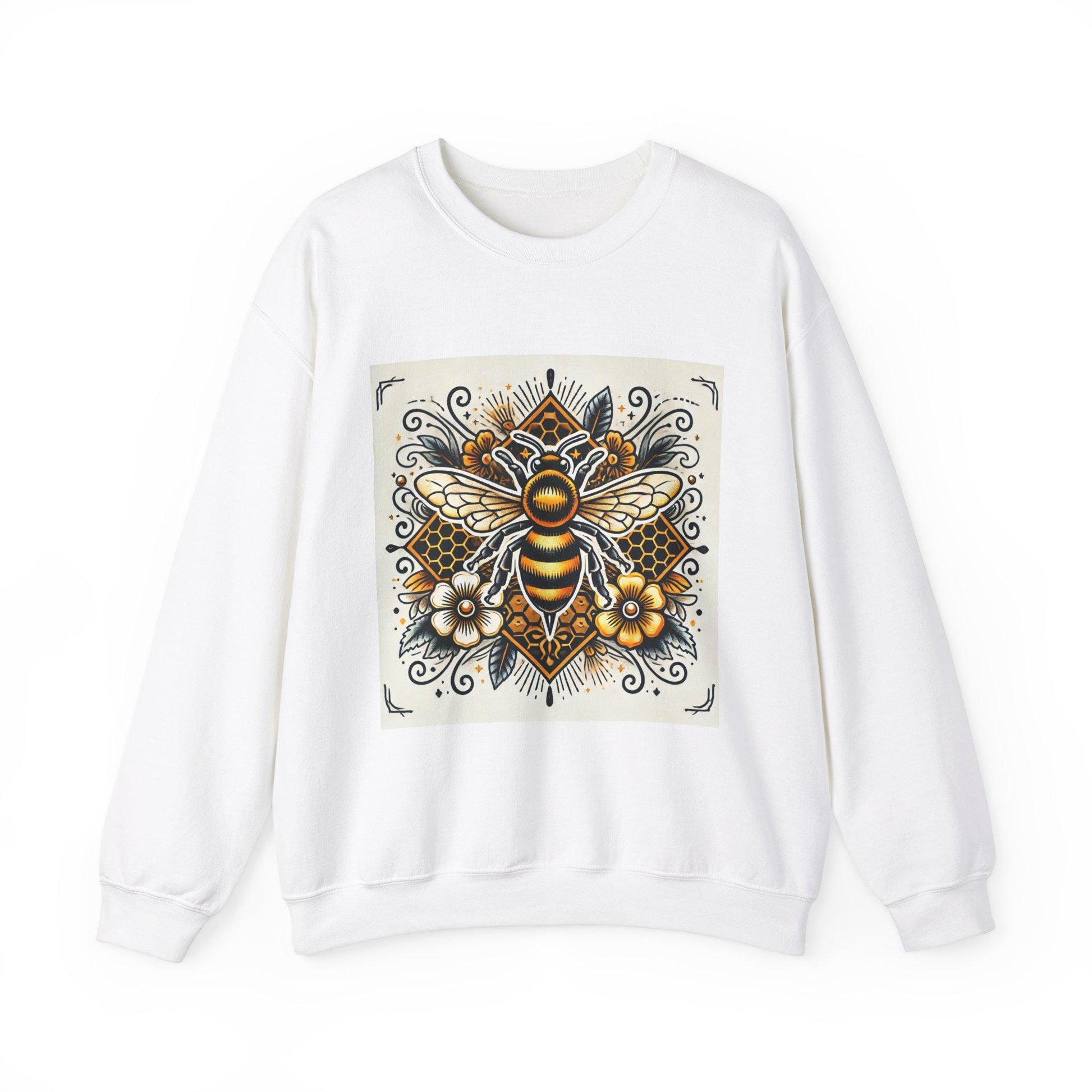 Honey Bee Sweatshirt, Vintage Tattoo Design, Unisex Crewneck Jumper, Bee Pullover, Gift for Animal Lover, Retro Style, Beekeeper