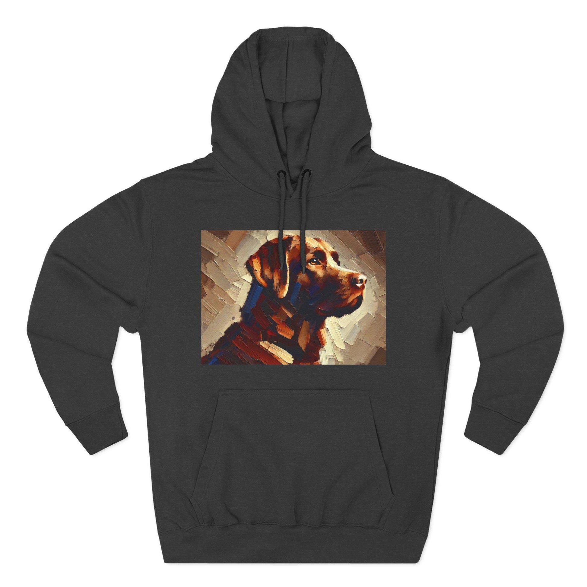 This colorful chocolate Labrador Retriever fleece hoodie features an original, colorful impressionist portrait of a Labrador Retriever, making it the perfect cozy apparel gift for pet lovers. The soft fabric provides a luxurious feel and warmth, while the spacious kangaroo pouch pocket keeps hands warm. Makes a thoughtful gift for Lab enthusiasts, whether for a birthday, anniversary, graduation, or just everyday wear.