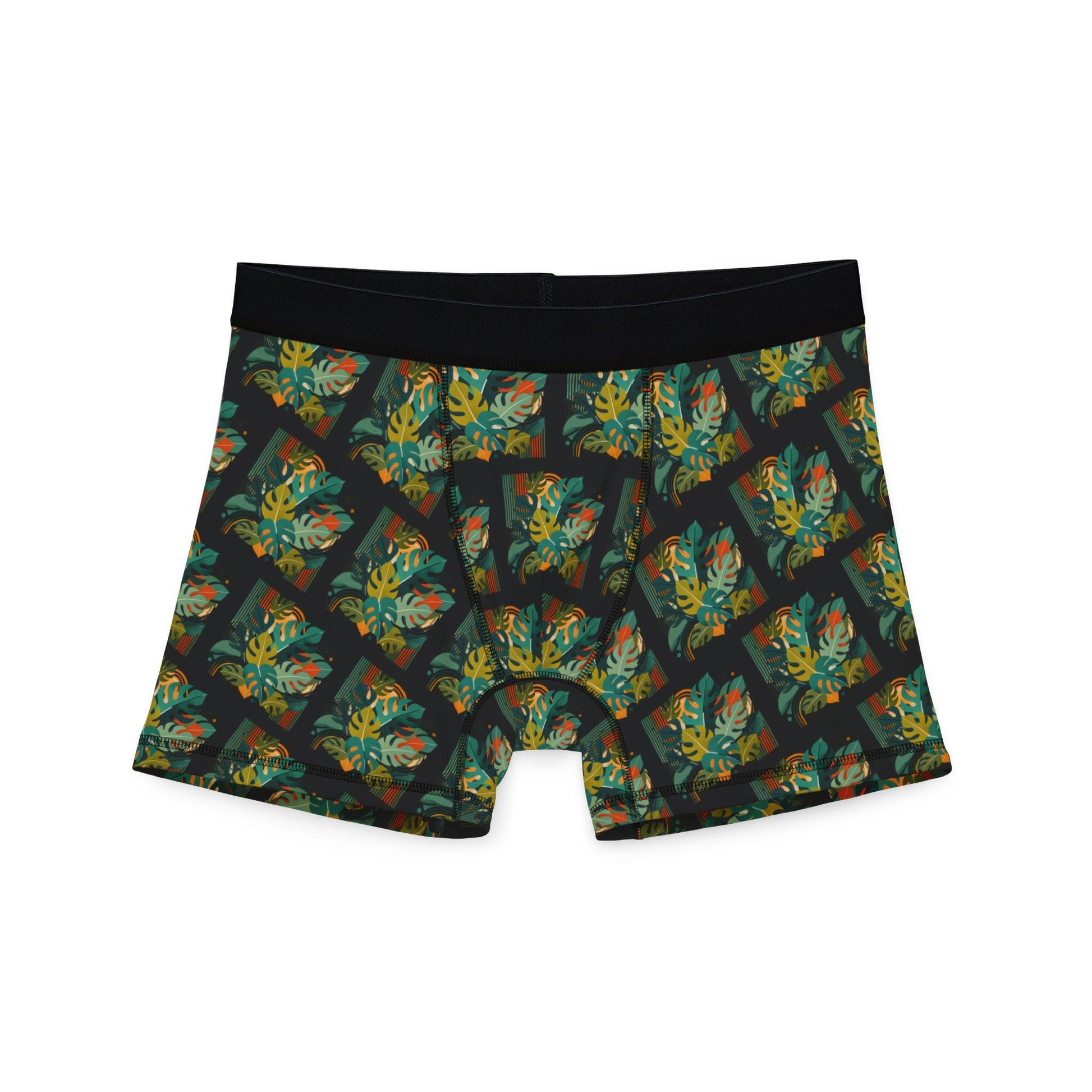 These Men's Boxer Briefs feature a Monstera leaf mid-century modern design, making them a great gift for a plant lover. The vibrant colors and soft, breathable fabric provide ultimate comfort for all-day wear.