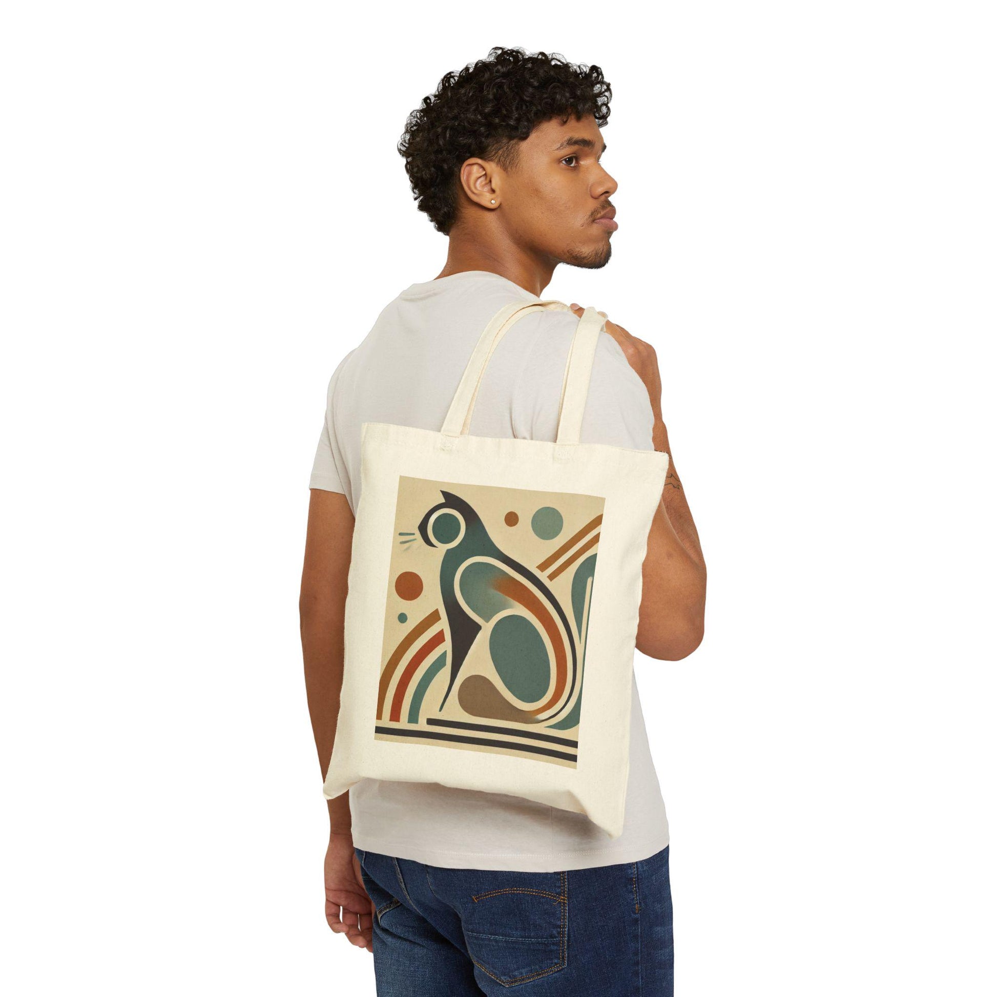 Mid-Century Modern Cotton Canvas Tote Bag - Cat Lover Gift, Retro Shoulder Bag, Cat Parent Shopping Bag, Vintage Tote, Book Lover