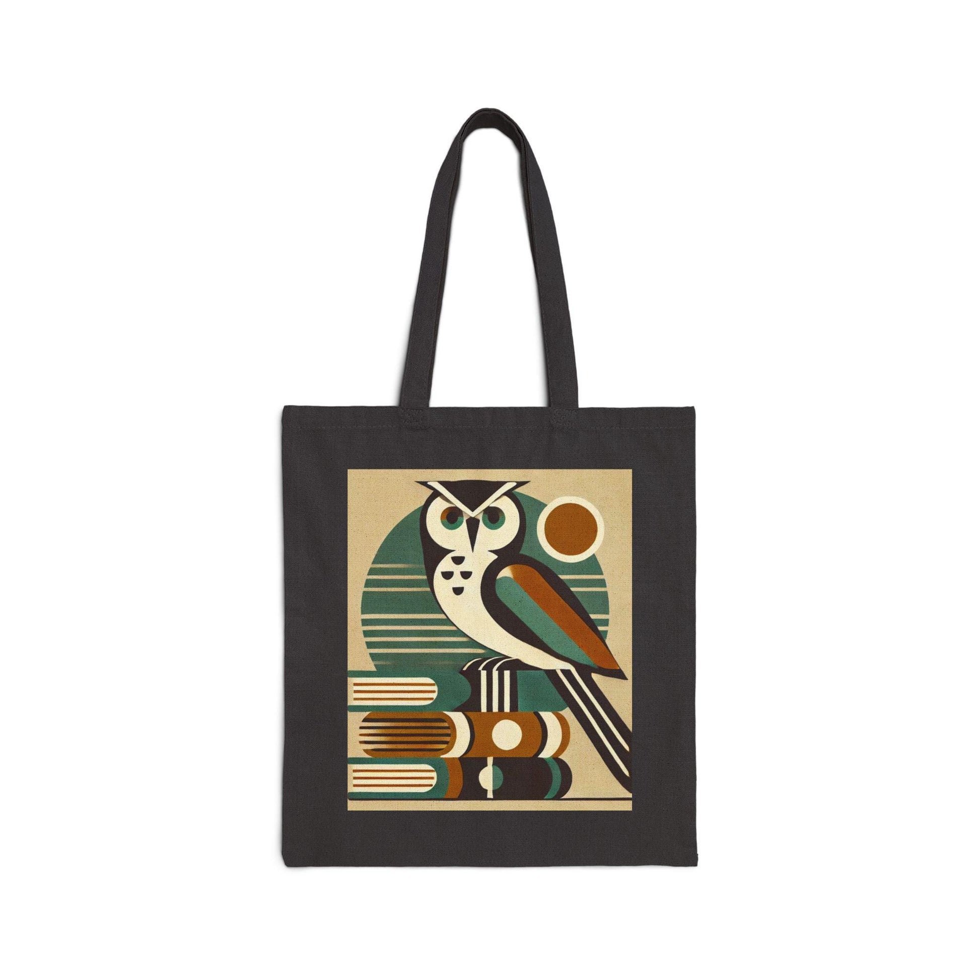 Mid-Century Modern Owl Cotton Canvas Tote Bag - Owl Lover Gift, Retro Shoulder Bag, Owl Shopping Bag, Vintage Tote, Book Lover