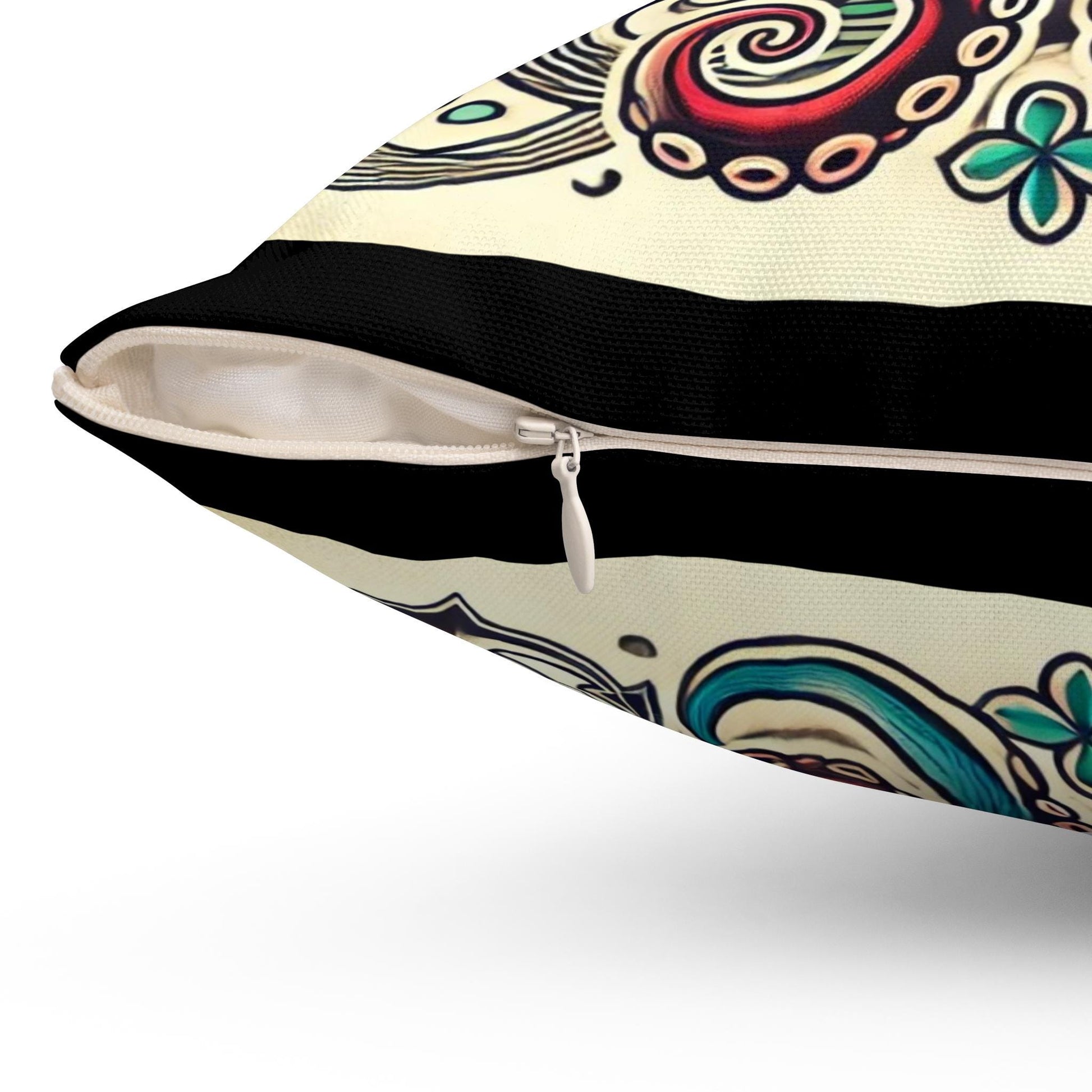 Octopus Square Pillow, Vintage Sailor Tattoo Design, Retro Charm, Housewarming Gift, Spun Polyester Cover, Tattoo Lover, Throw Pillow