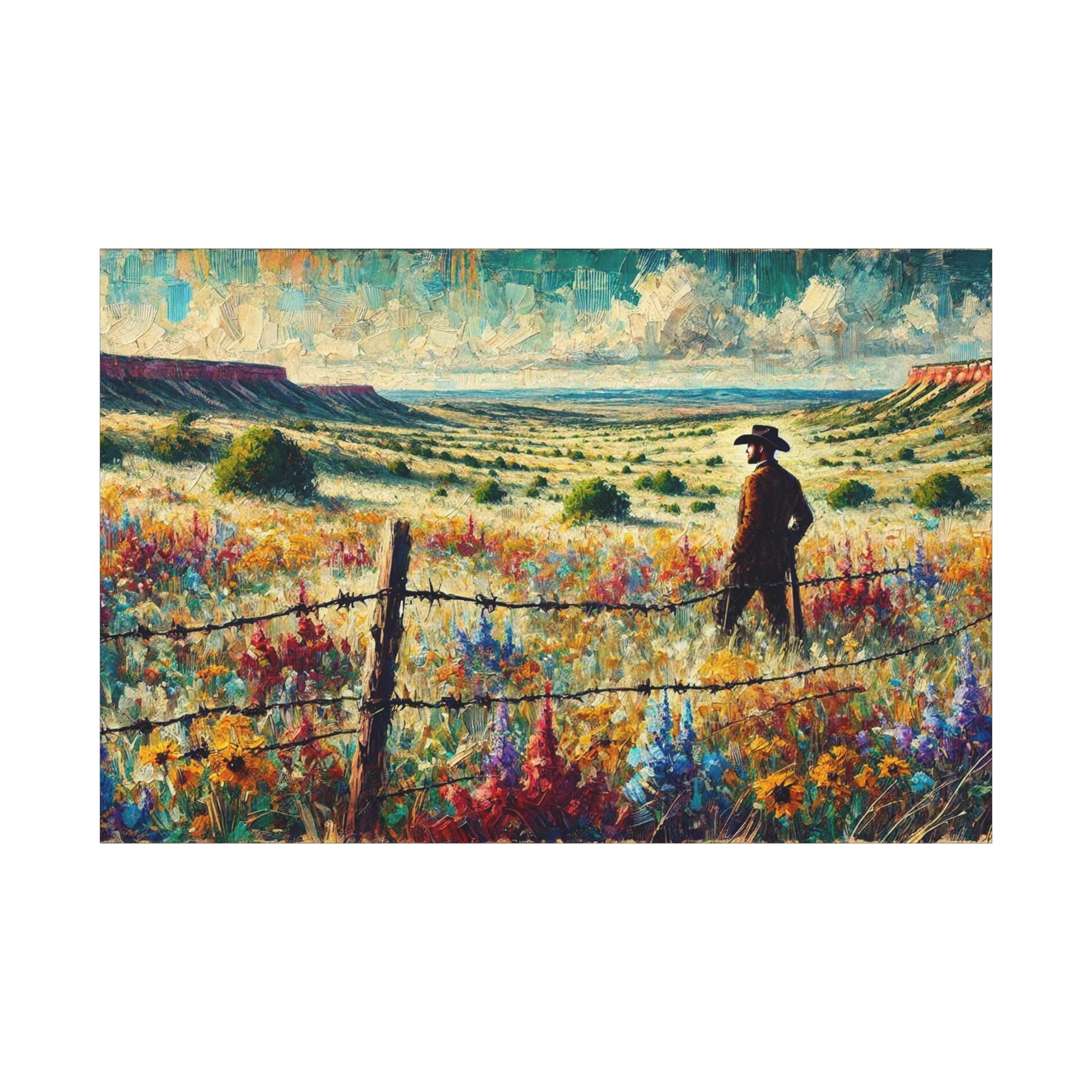 Original Impressionist Cowboy Canvas Print, Matte Stretched Art, 7 Sizes Available, Wall Decor, Texas Landscape Painting, Home Office Decor