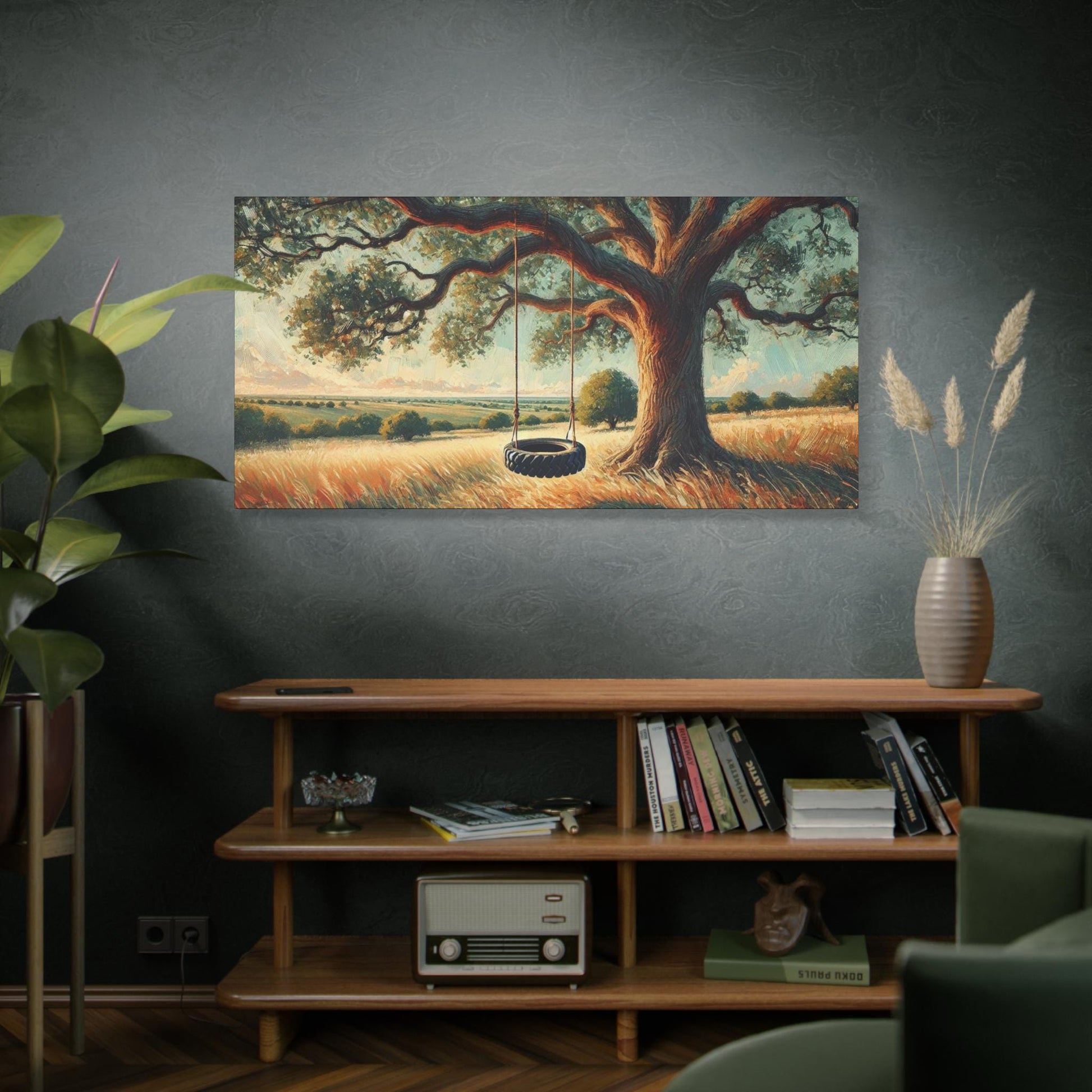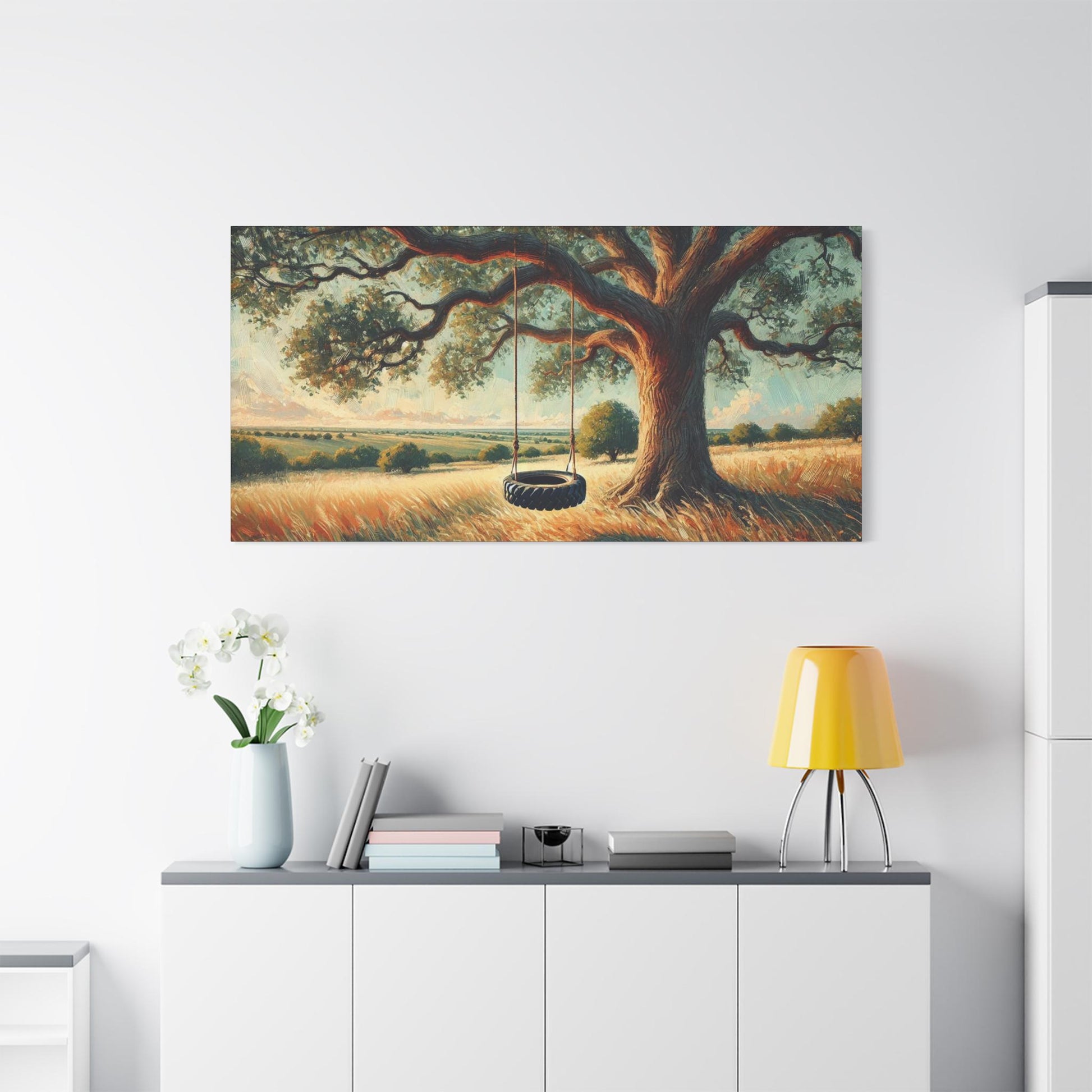 Original Modern Impressionist Tractor Tire Swing Canvas Print, Matte Stretched Art, 7 Sizes, Wall Decor Landscape, Home Office Decor