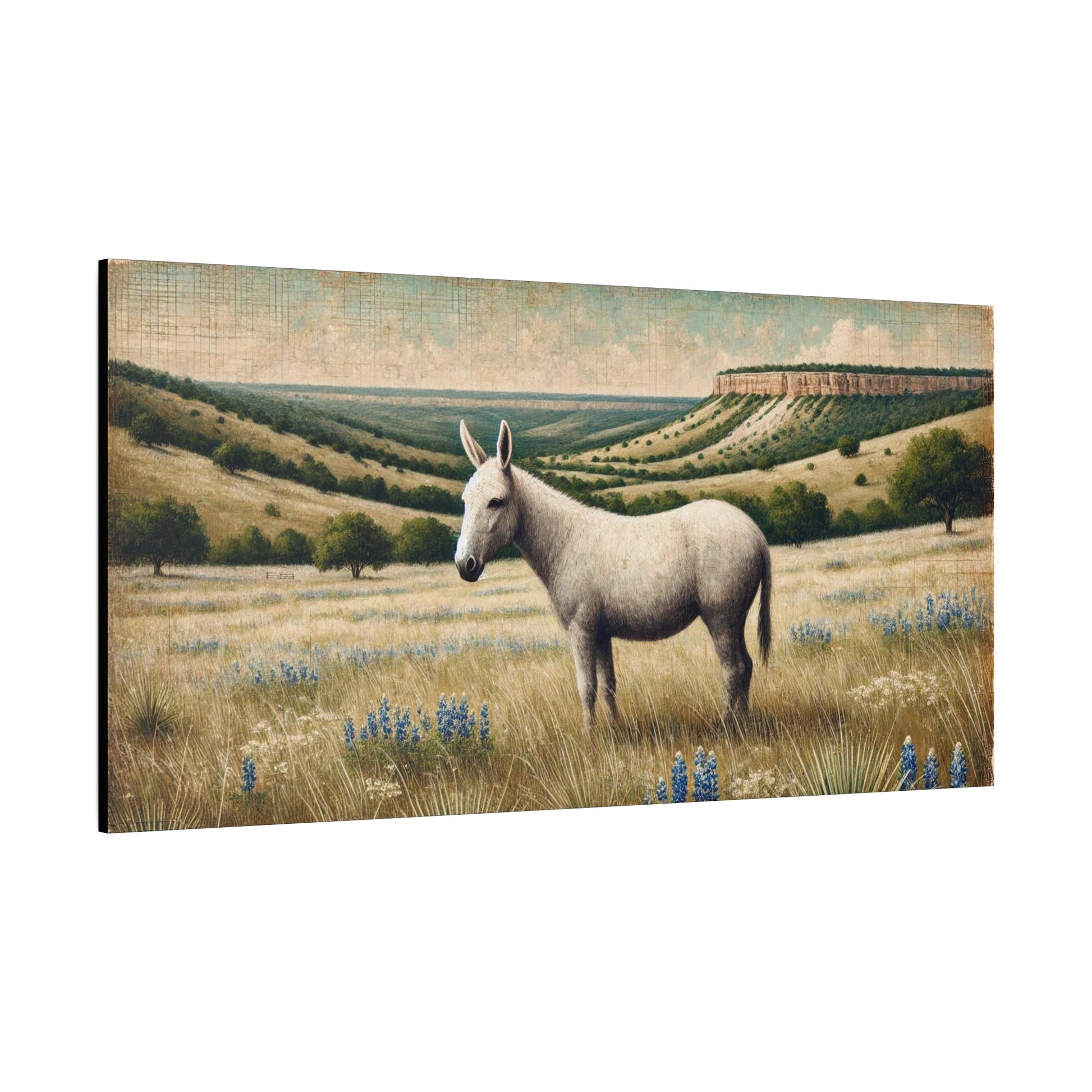 Experience the rugged and picturesque vibes of the Texas Hill Country with this original, high-quality white mule art print on stretched matte canvas with a depth of 1.25". Available in 7 sizes, this canvas is perfect for art enthusiasts looking to bring a touch of nature into their homes. Ideal for nature lovers, home decorators, and those celebrating country themes or cowboy landscapes.