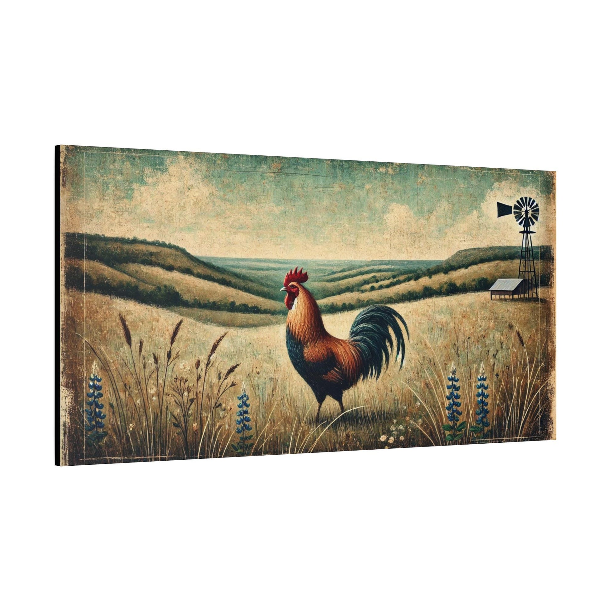 Experience the rugged and picturesque vibes of the Texas Hill Country with this original, high-quality rooster art print on stretched matte canvas with a depth of 1.25". Available in 7 sizes, this canvas is perfect for art enthusiasts looking to bring a touch of nature into their homes. Ideal for nature lovers, home decorators, and those celebrating country themes or cowboy landscapes.