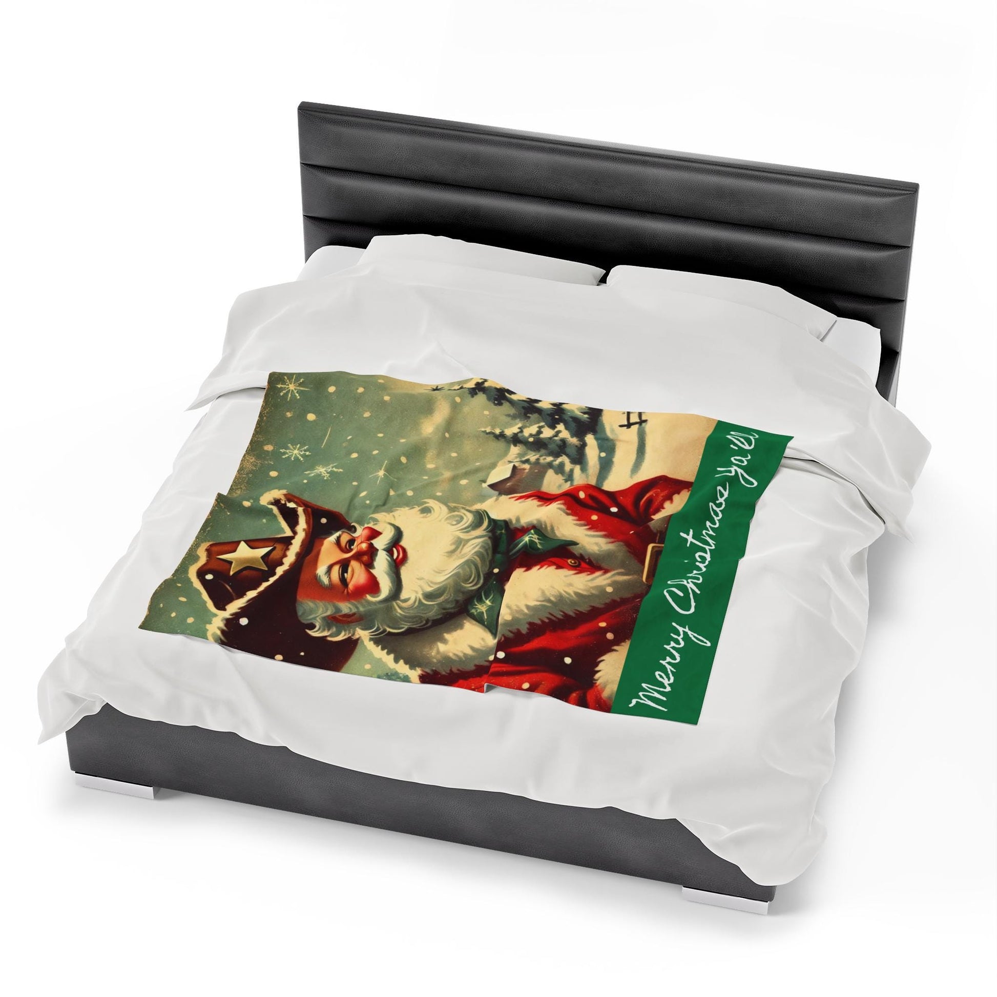 This Plush Blanket with a cowboy "Merry Christmas Ya'll" Santa Claus design is perfect for adding a festive touch to your holiday home decor. It provides warmth and comfort, making it ideal for snuggling up on cold winter nights. Great gift for housewarming or Christmas celebrations.