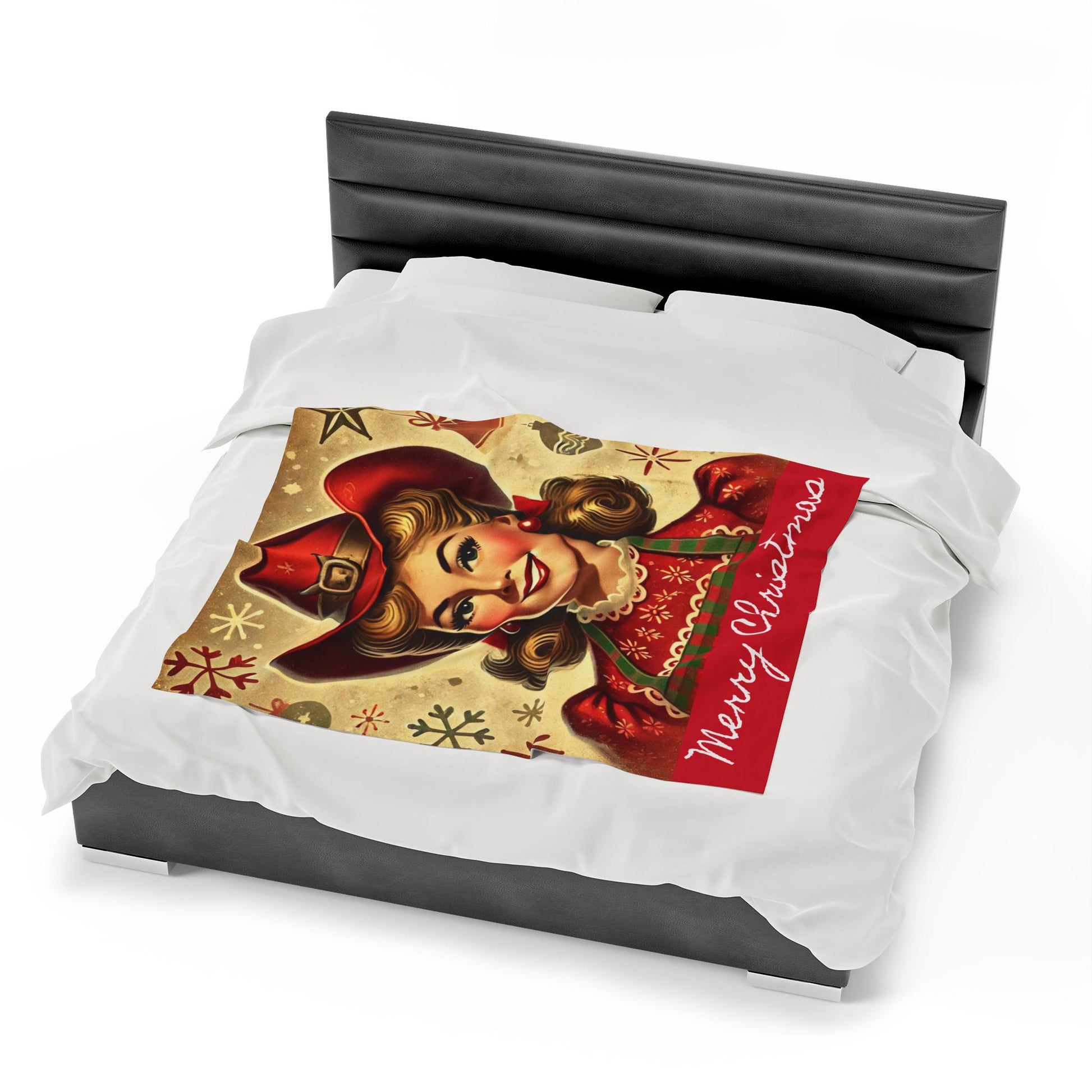 Plush Blanket, Cowgirl Mrs. Claus Design, Fleece Throw, Housewarming Gift, Holiday Home Decor, Rustic Country Christmas Theme, Warm Bedding
