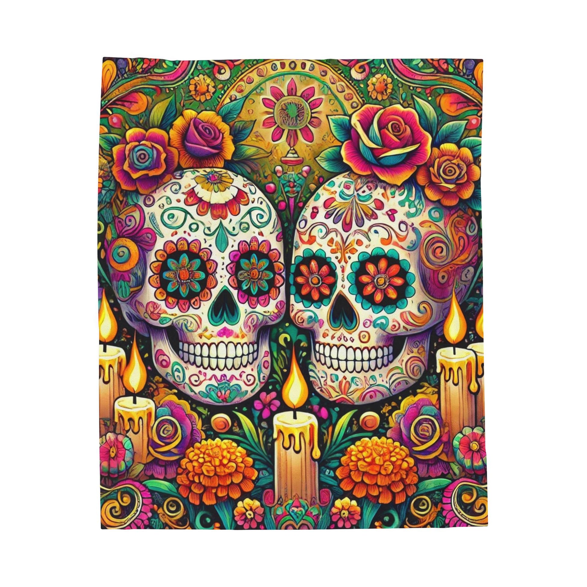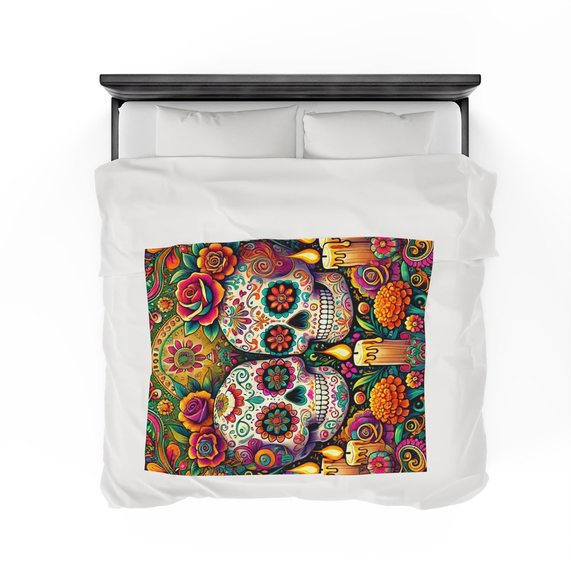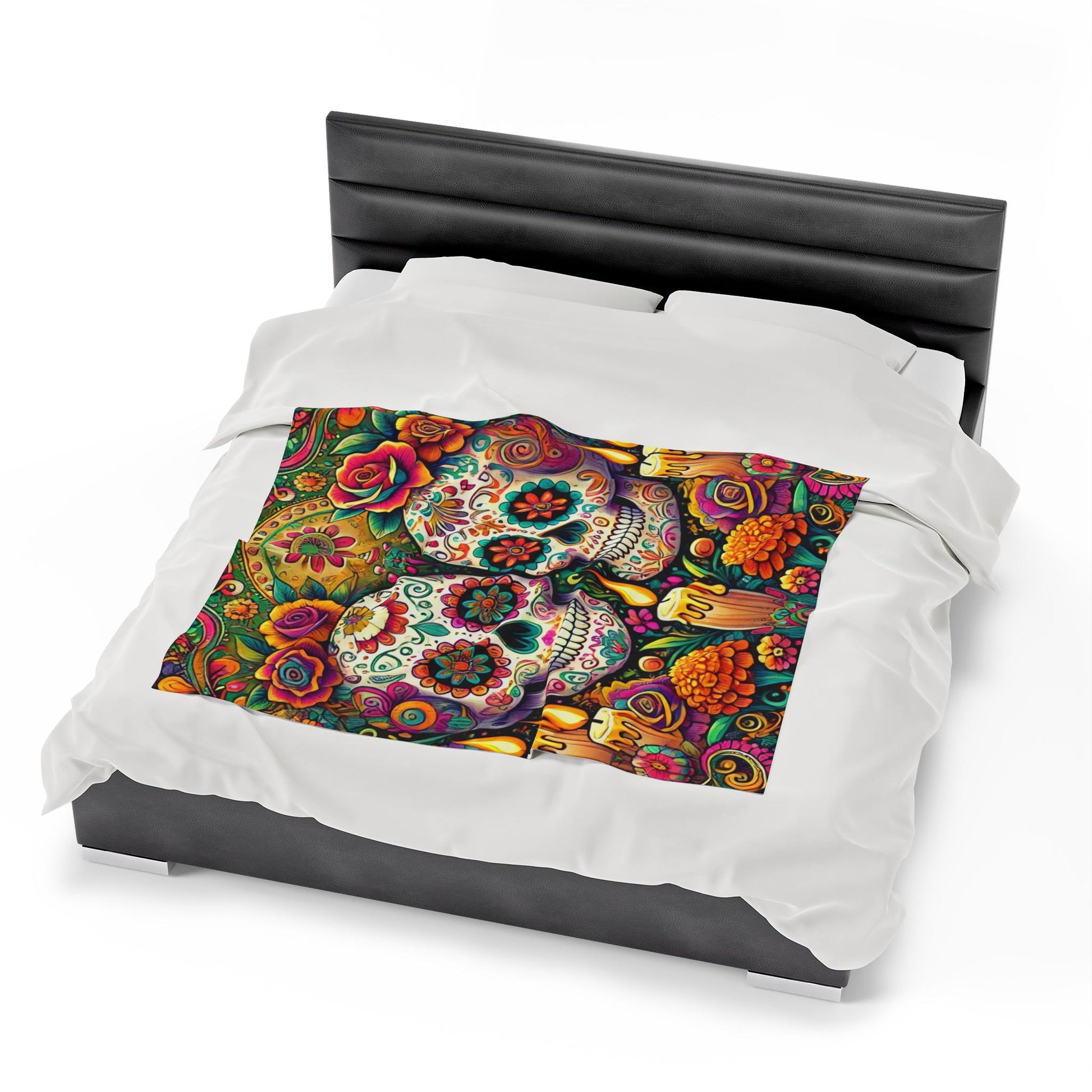 Plush Blanket, Day of the Dead, Sugar Skulls, Housewarming Gift, Soft Fleece Throw, Warm Bedding, Velveteen Blanket, Home Decor, Halloween