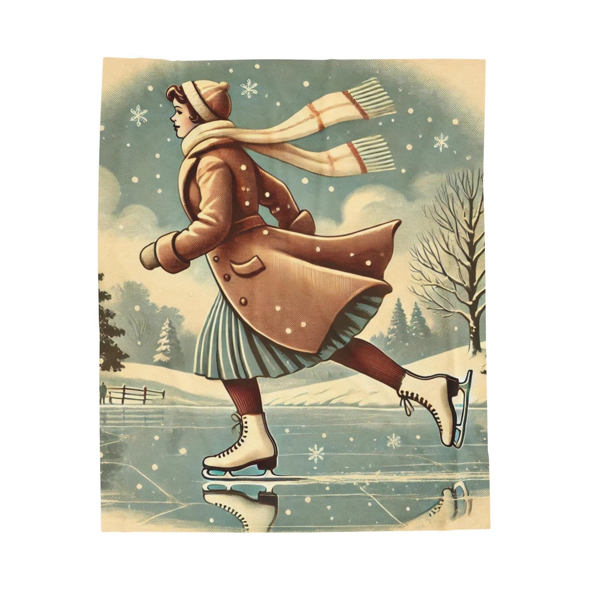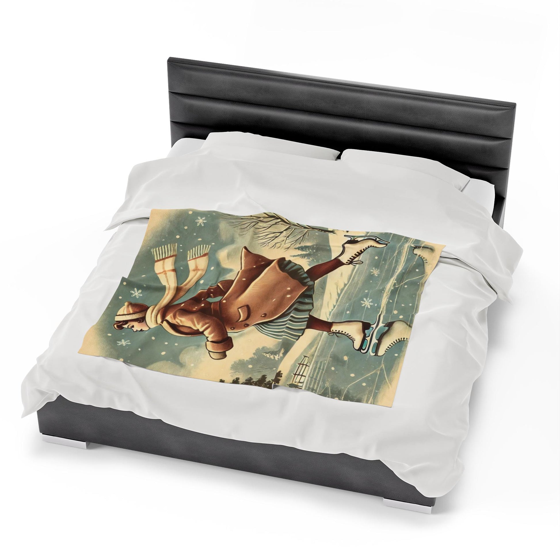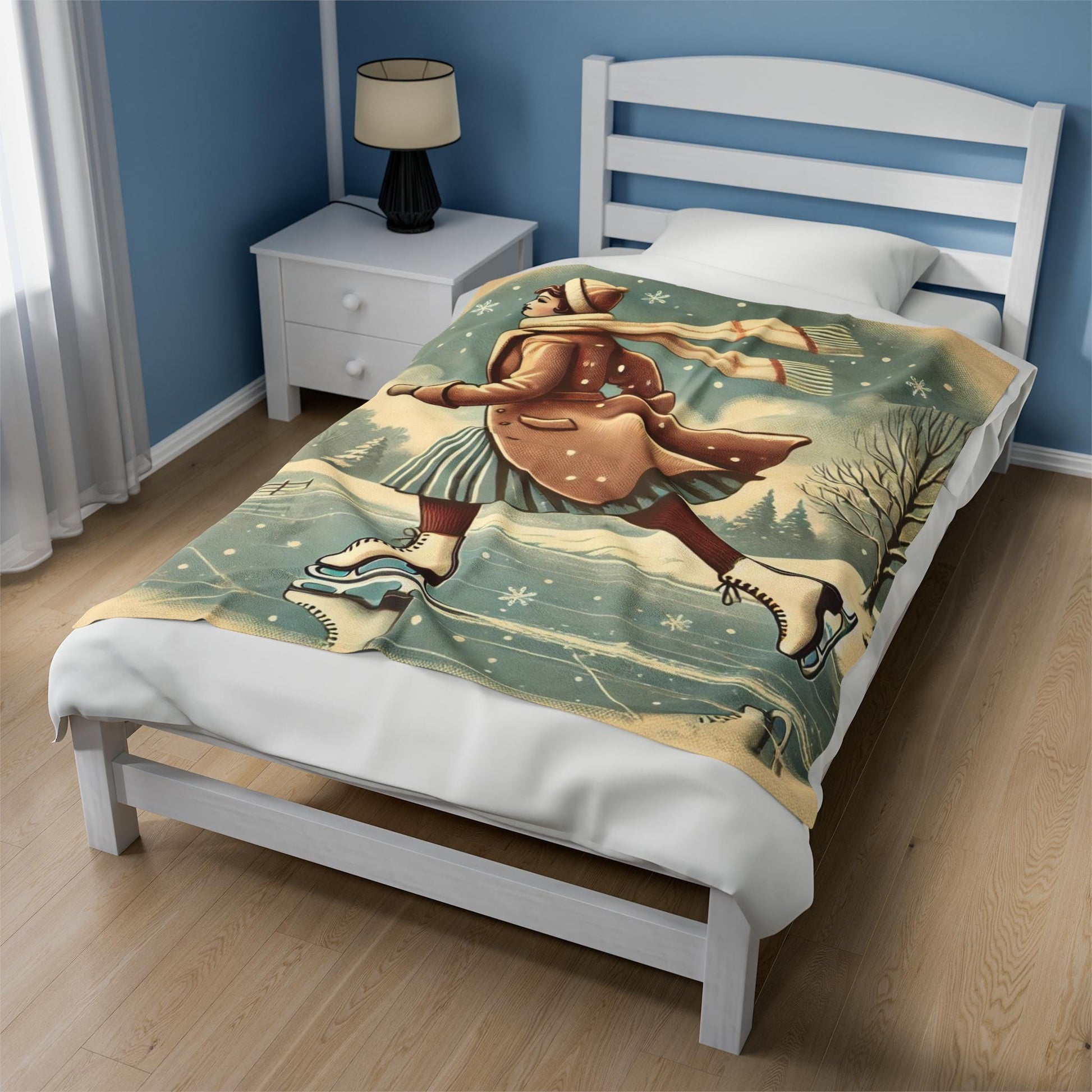 Plush Winter Blanket, Ice Skating Design, Soft Fleece Throw, Housewarming Gift, Holiday Home Decor, Christmas Theme, Warm Bedding