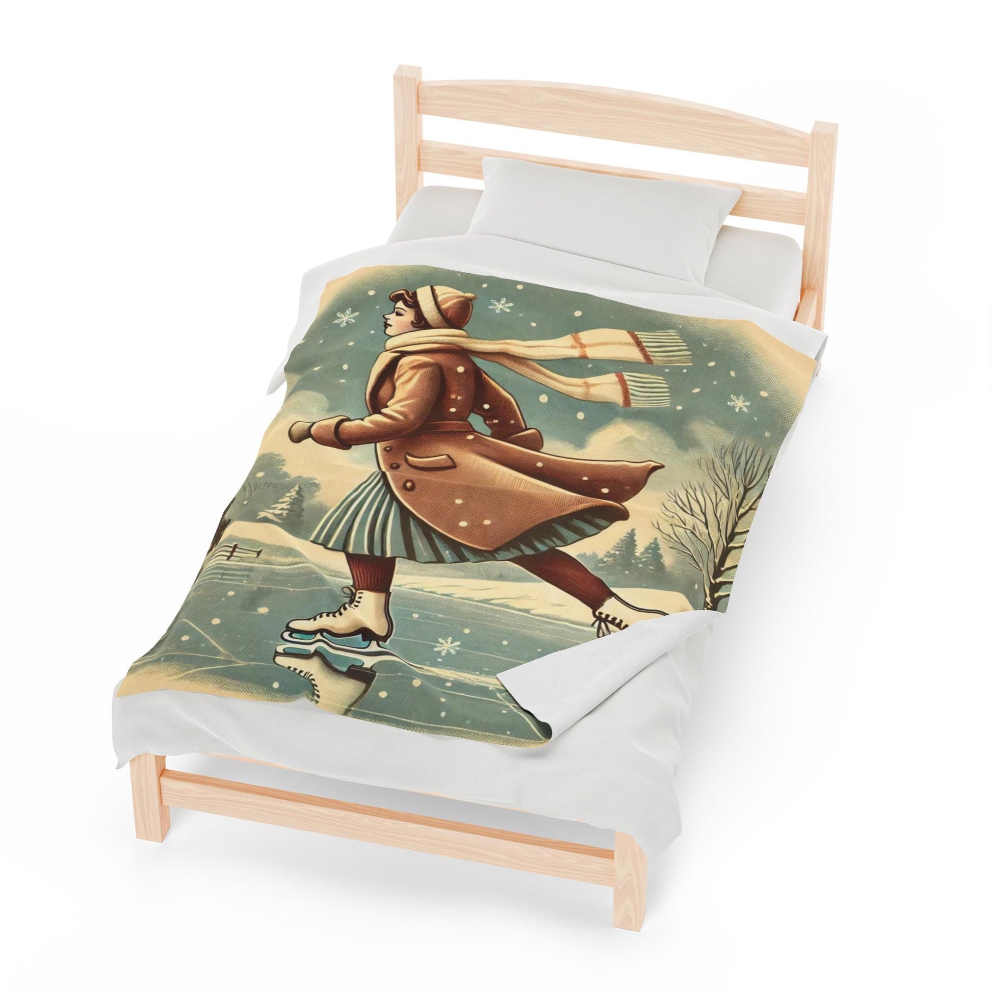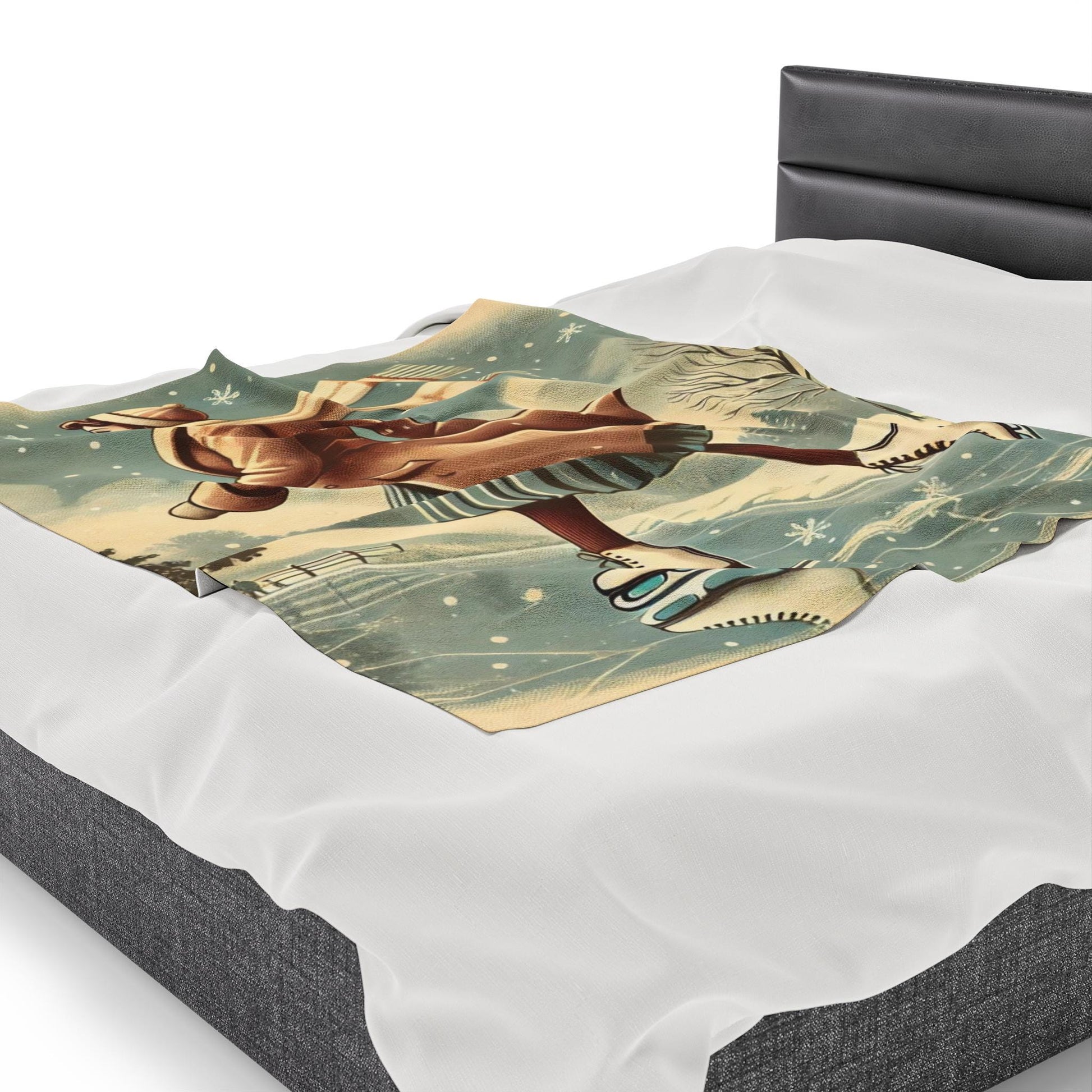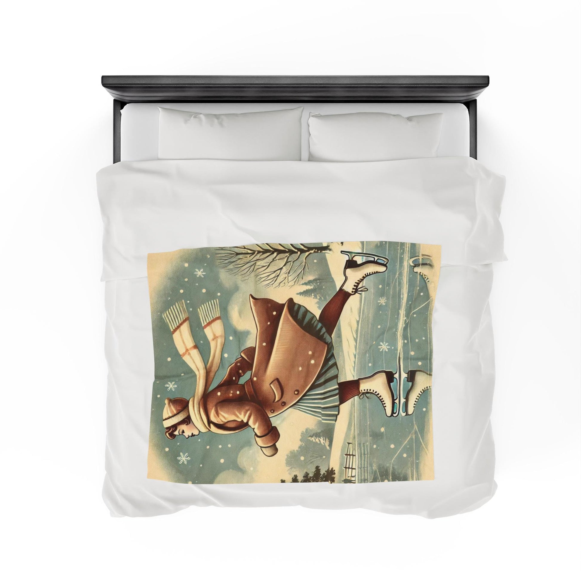 Plush Winter Blanket, Ice Skating Design, Soft Fleece Throw, Housewarming Gift, Holiday Home Decor, Christmas Theme, Warm Bedding