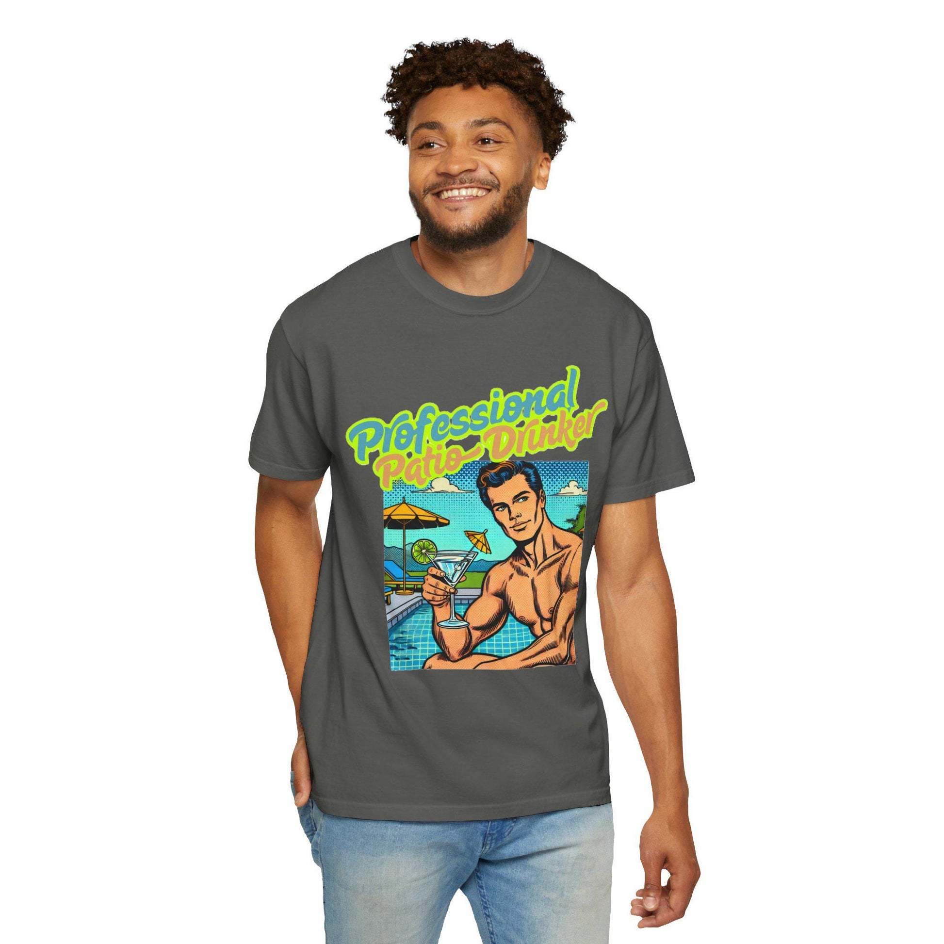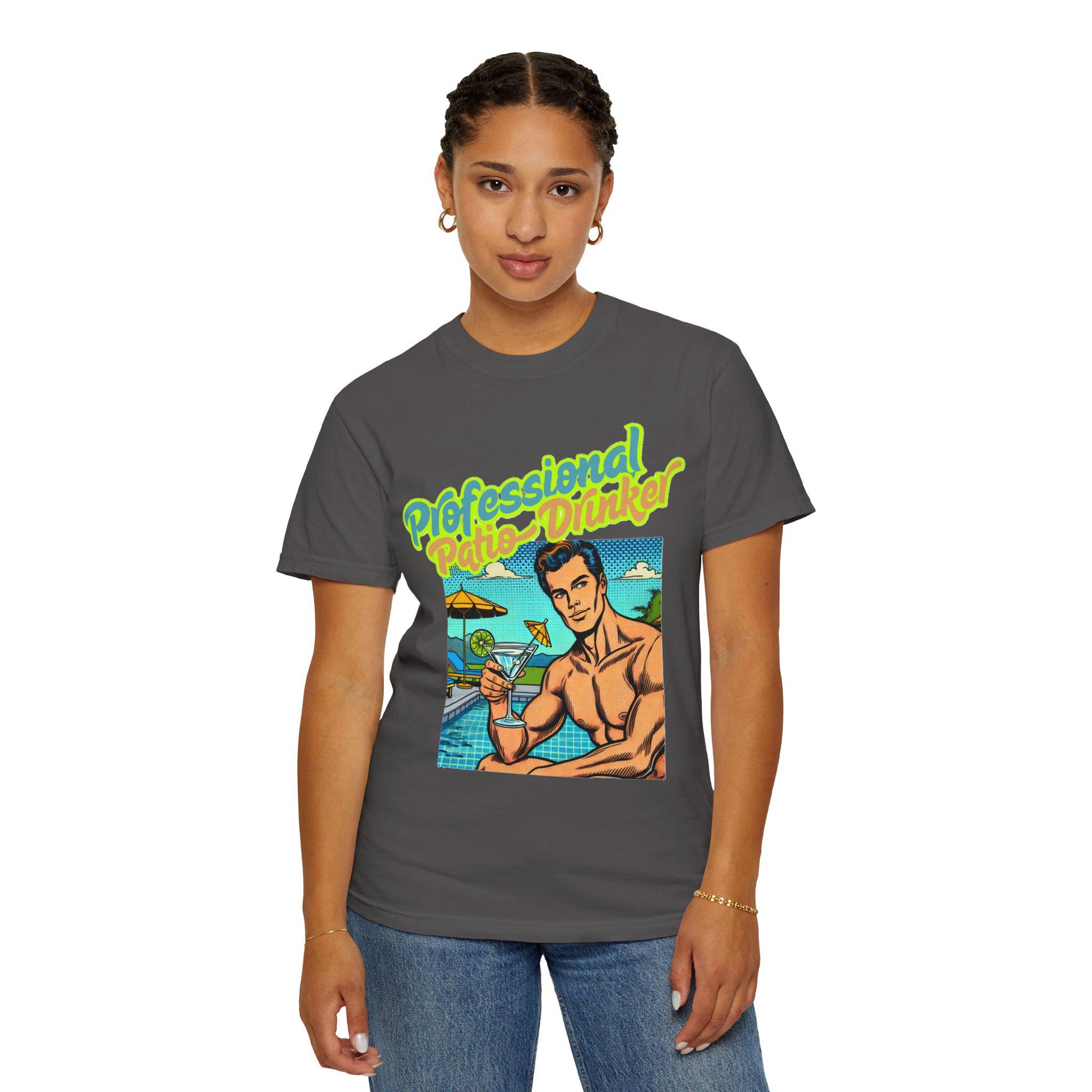 Professional Patio Drinker T-shirt, Unisex Funny Summer Tee, Cool Casual Wear, Pool Party Gift, Fun Vacation Apparel, Garment-Dyed Shirt