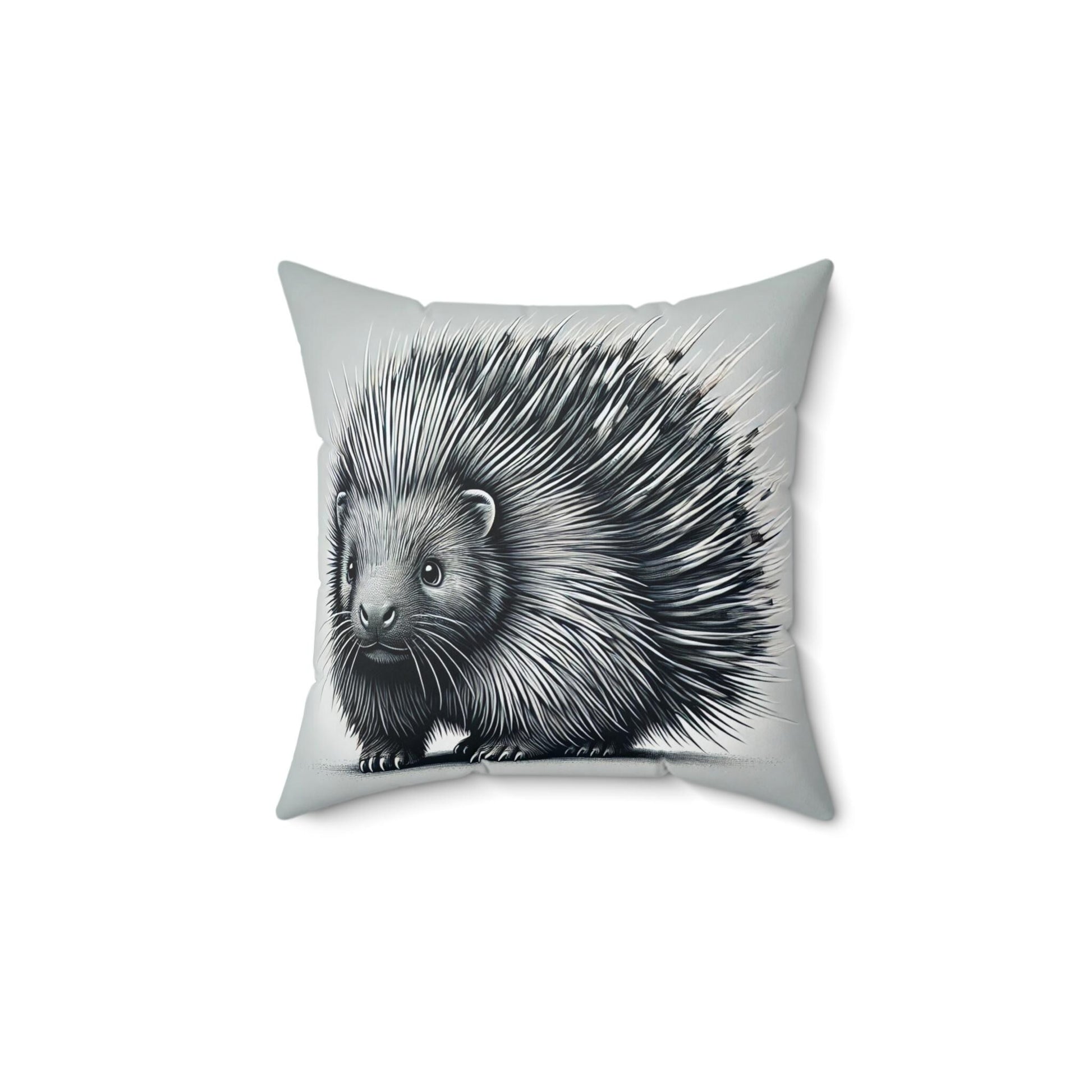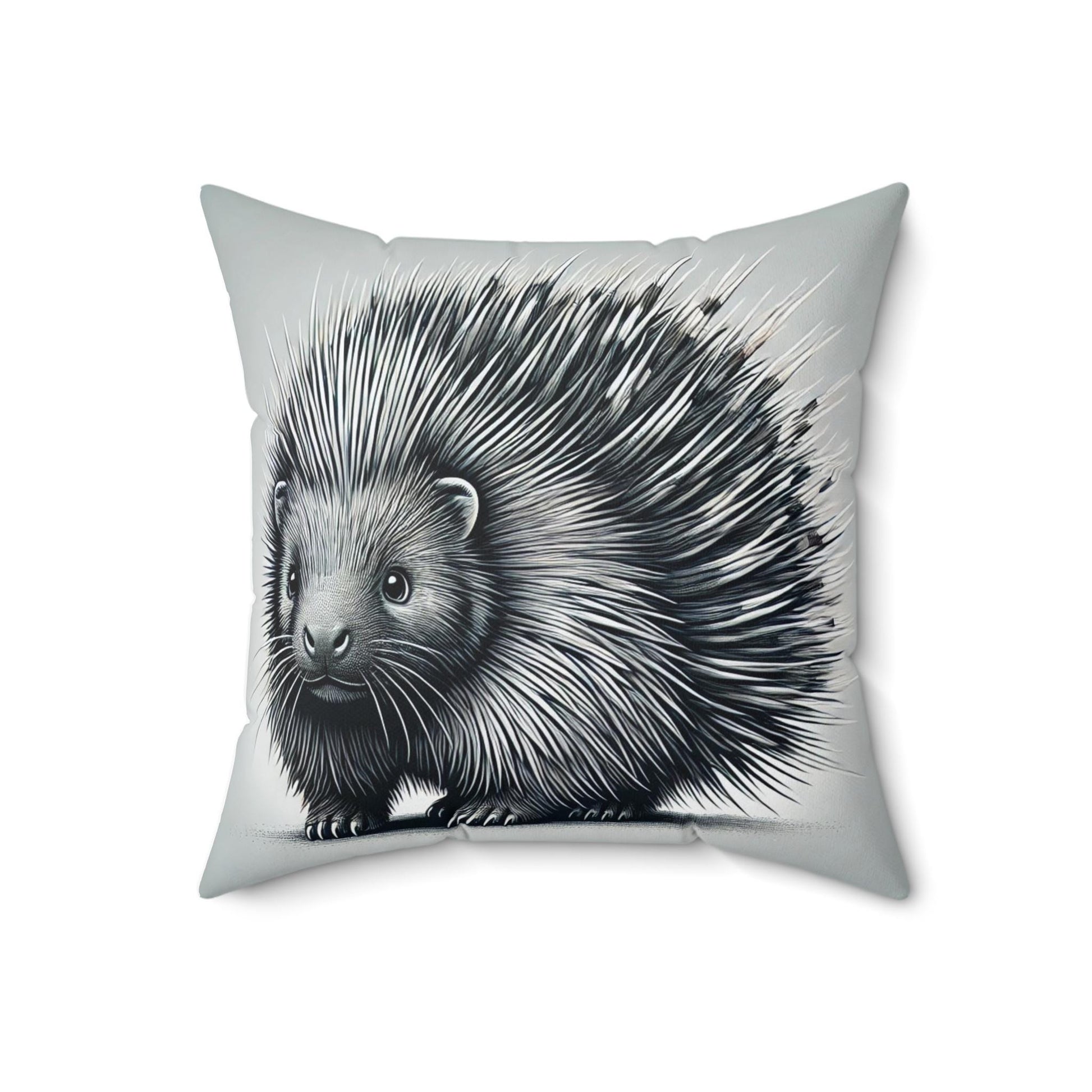 Square Pillow Cuddly Porcupine Design, Unique Housewarming Gift, Retro Charm, Soft Accent Throw Pillow, Fun Home Decor, Animal Lover Gift