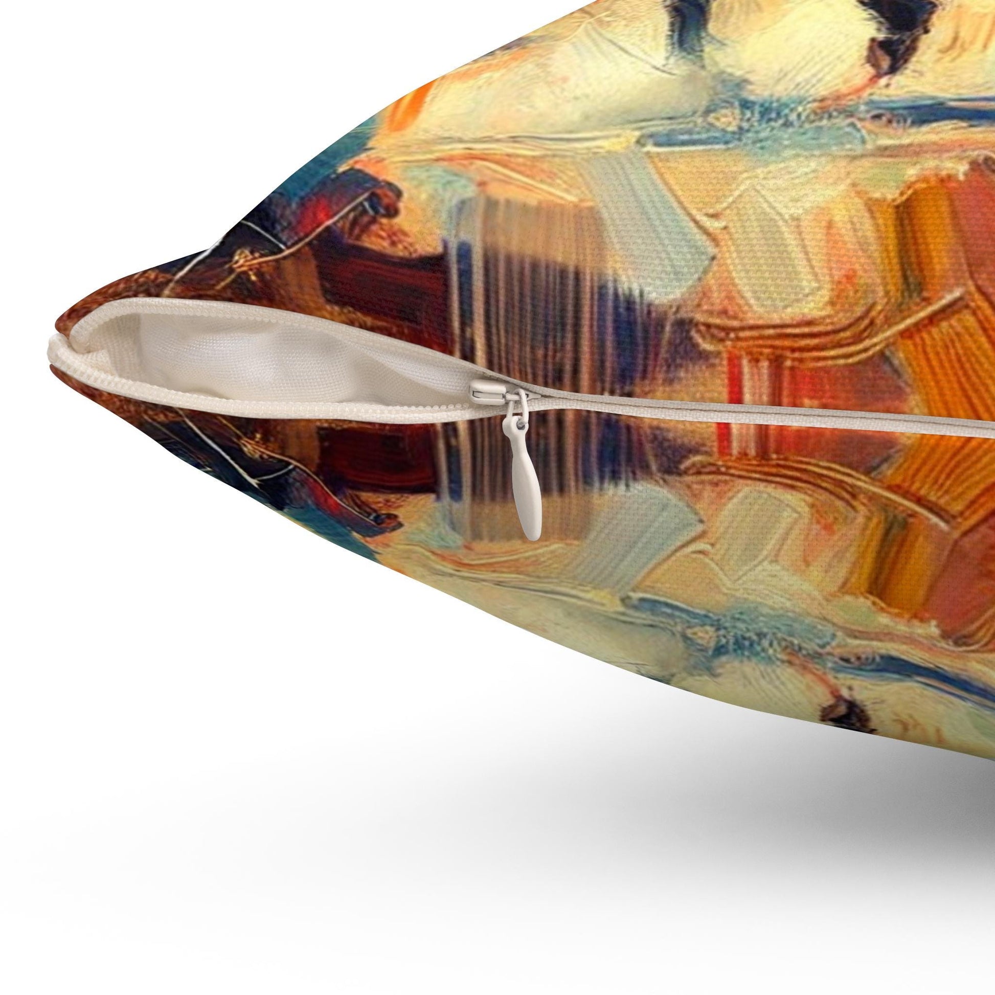 Add a touch of modern impressionist Southwestern charm to your home with this colorful cowboy and horse square pillow. Perfect for decorating living rooms, bedrooms, and reading nooks, this soft throw pillow makes a great housewarming gift.