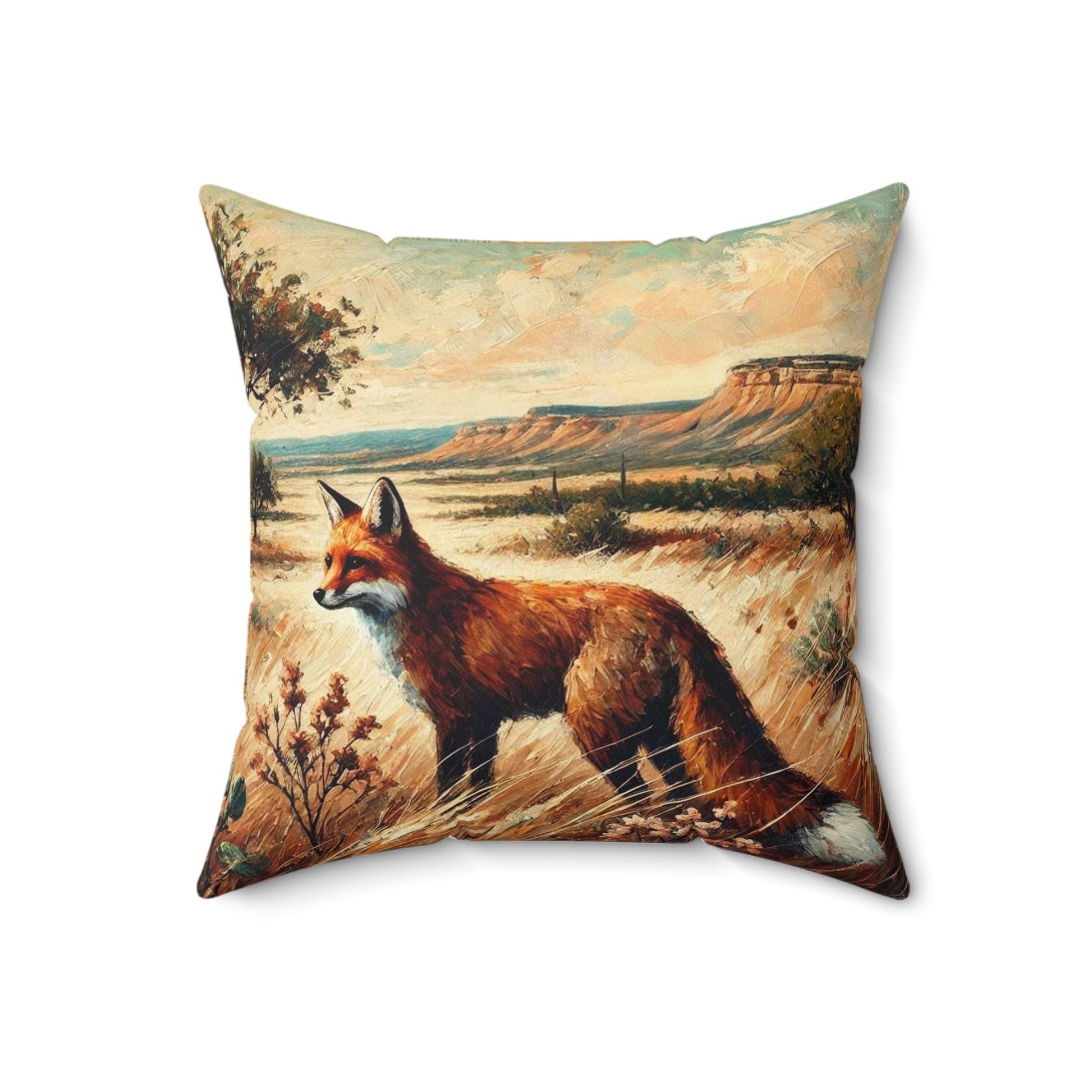 Square Pillow Modern Texas Hill Country Fox Design, Housewarming Gift, Retro Rustic Charm, Soft Throw Pillow, Home Decor, Art Lover Gift