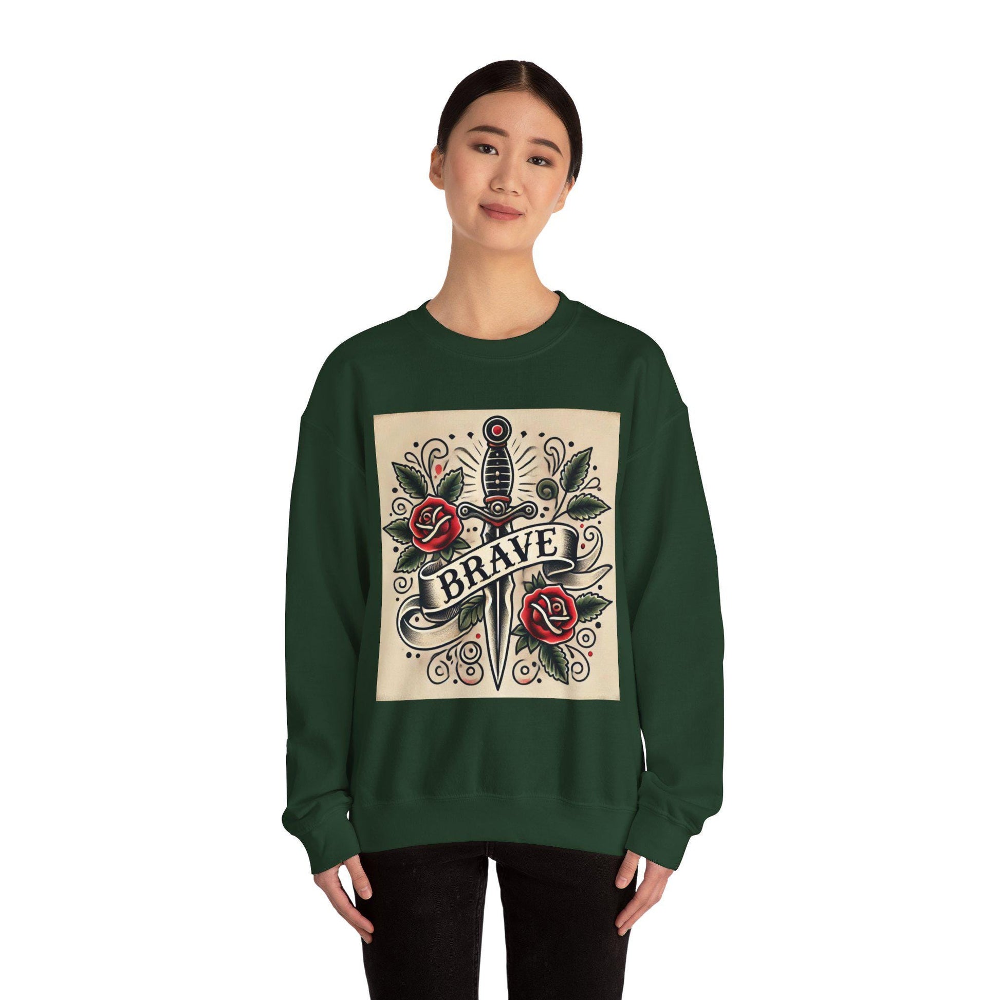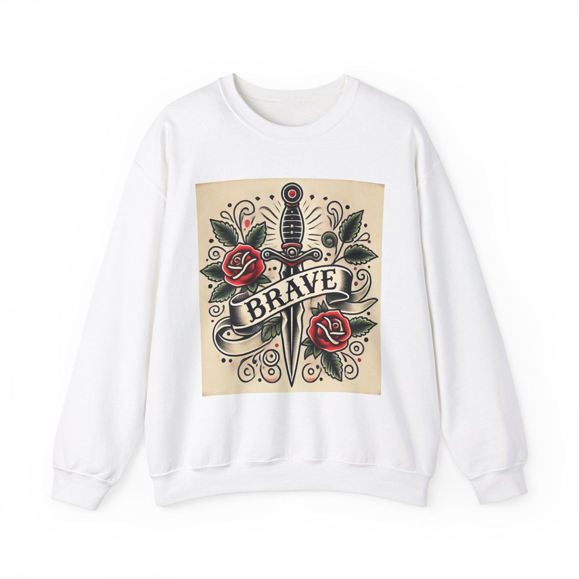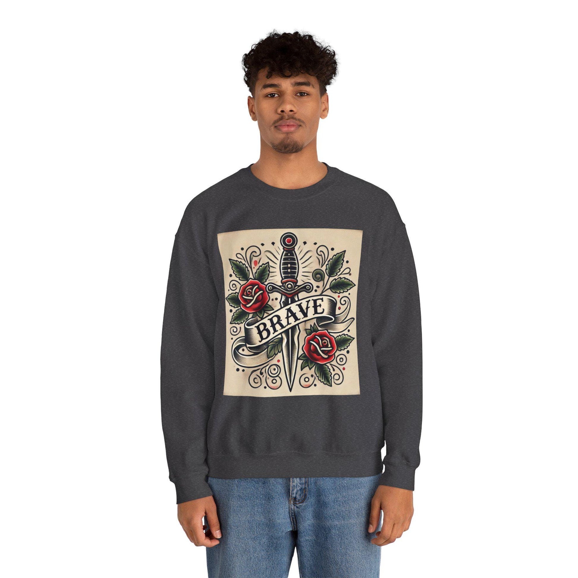 Vintage Tattoo Sweatshirt, BRAVE Tattoo Design, Unisex Crewneck Jumper, Vintage Pullover, Gift for Tattoo Lover, Retro Style