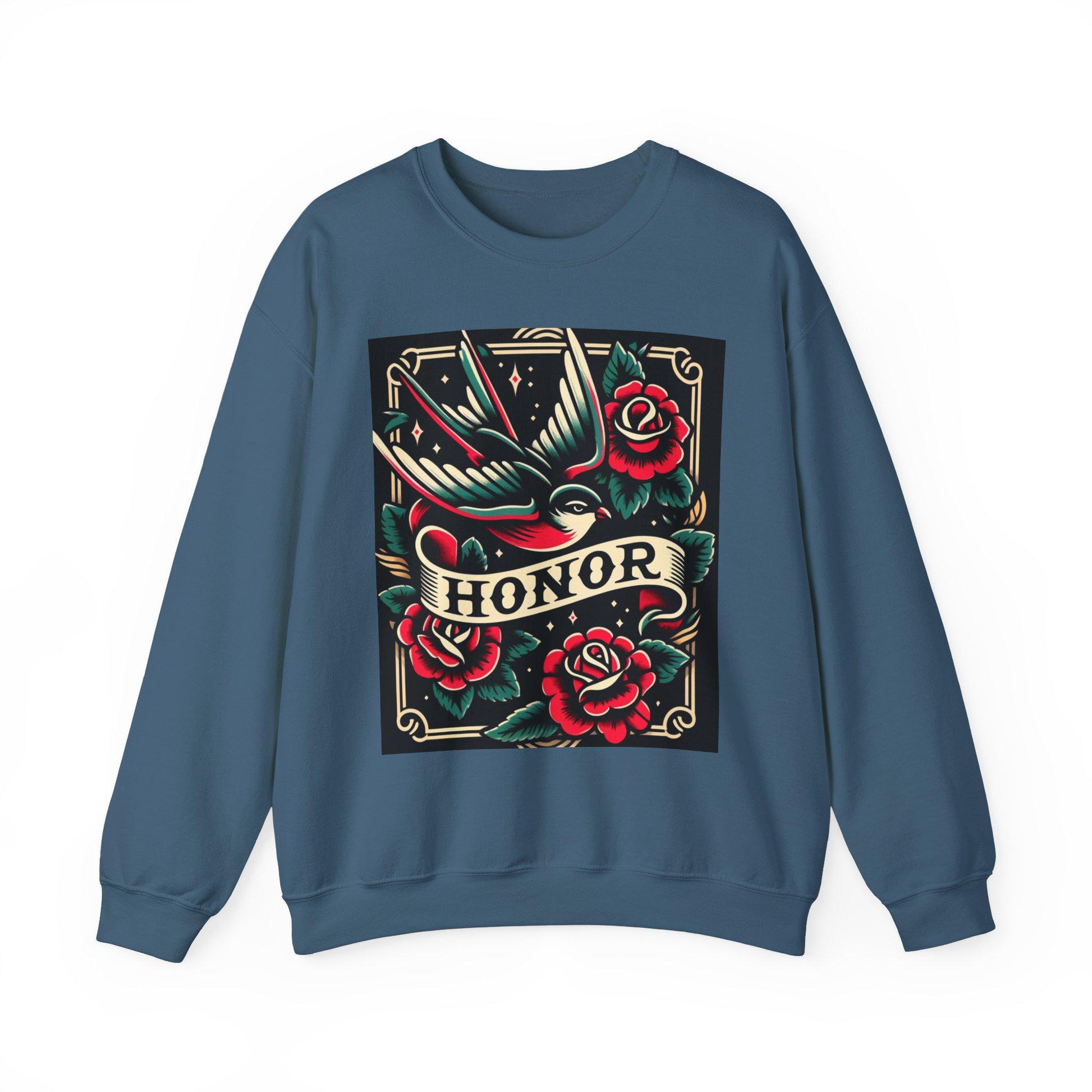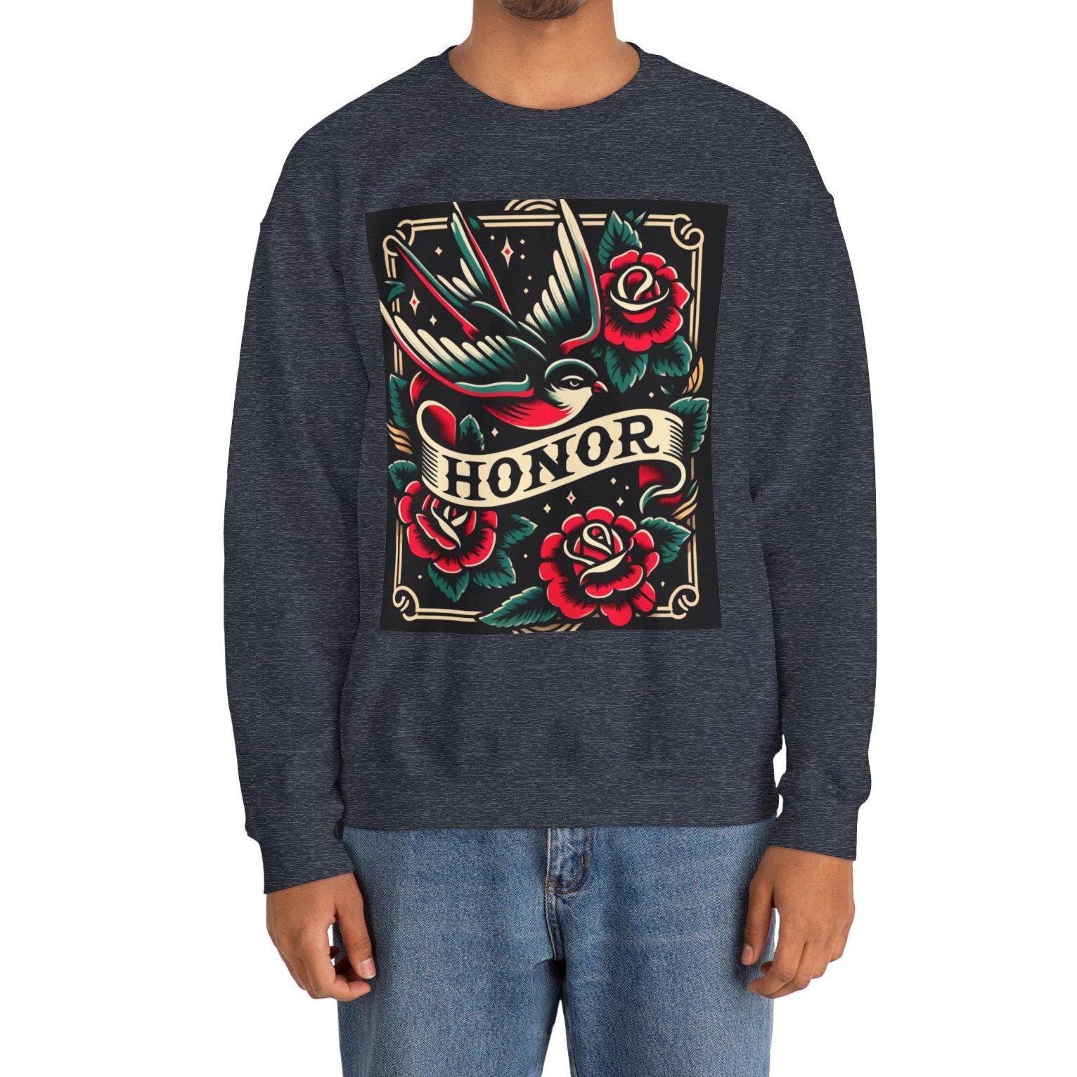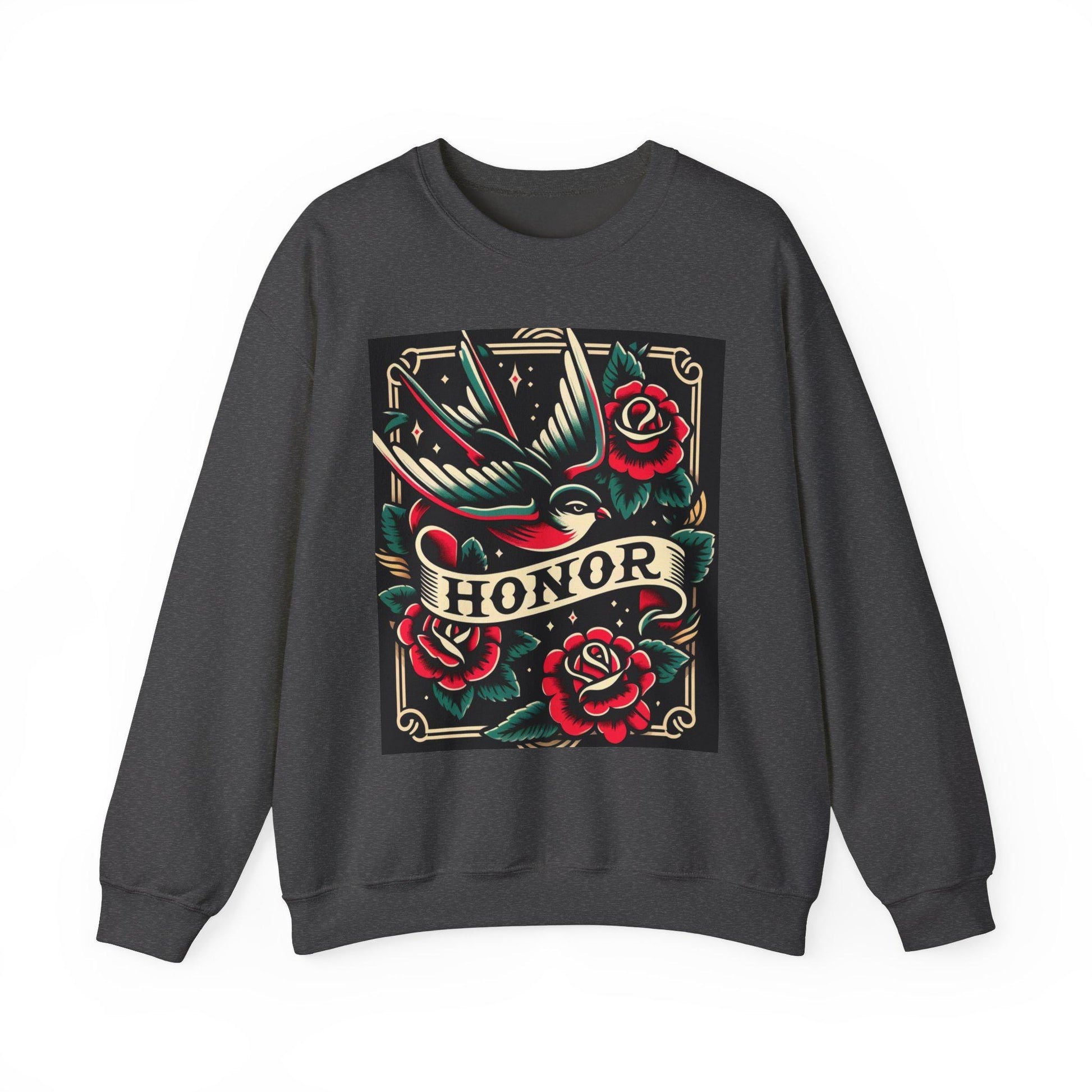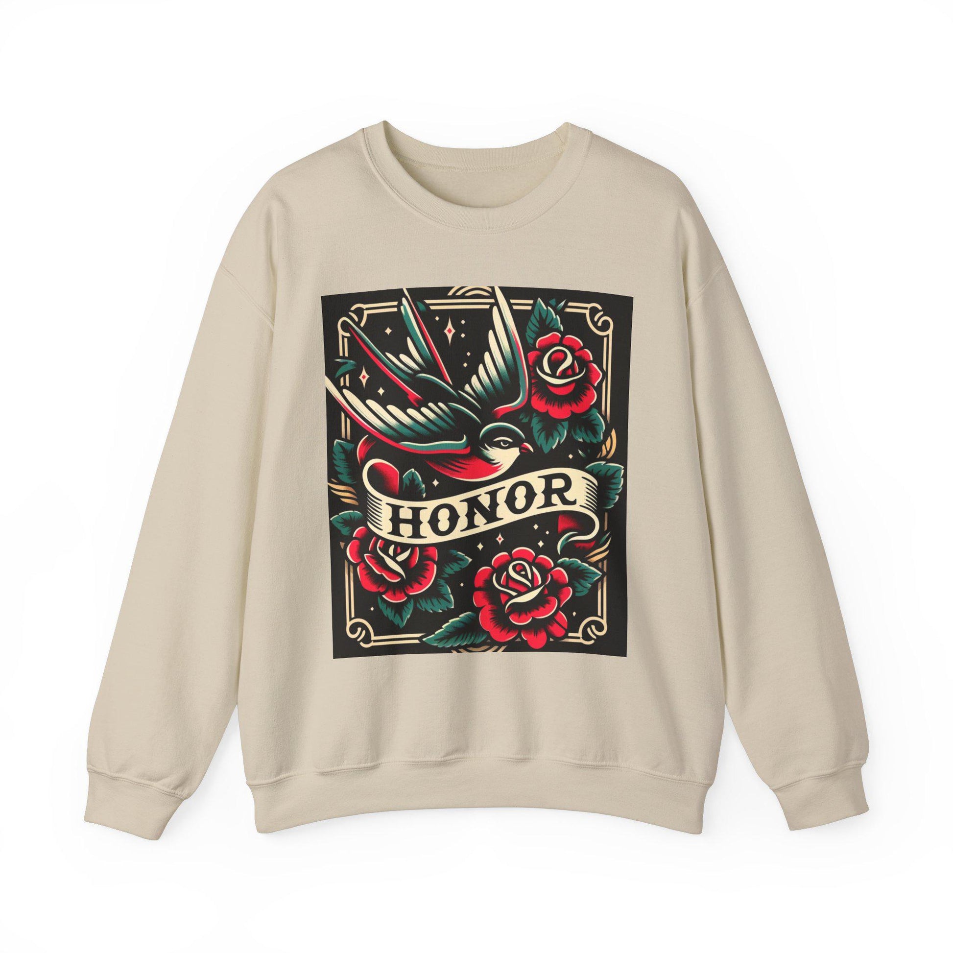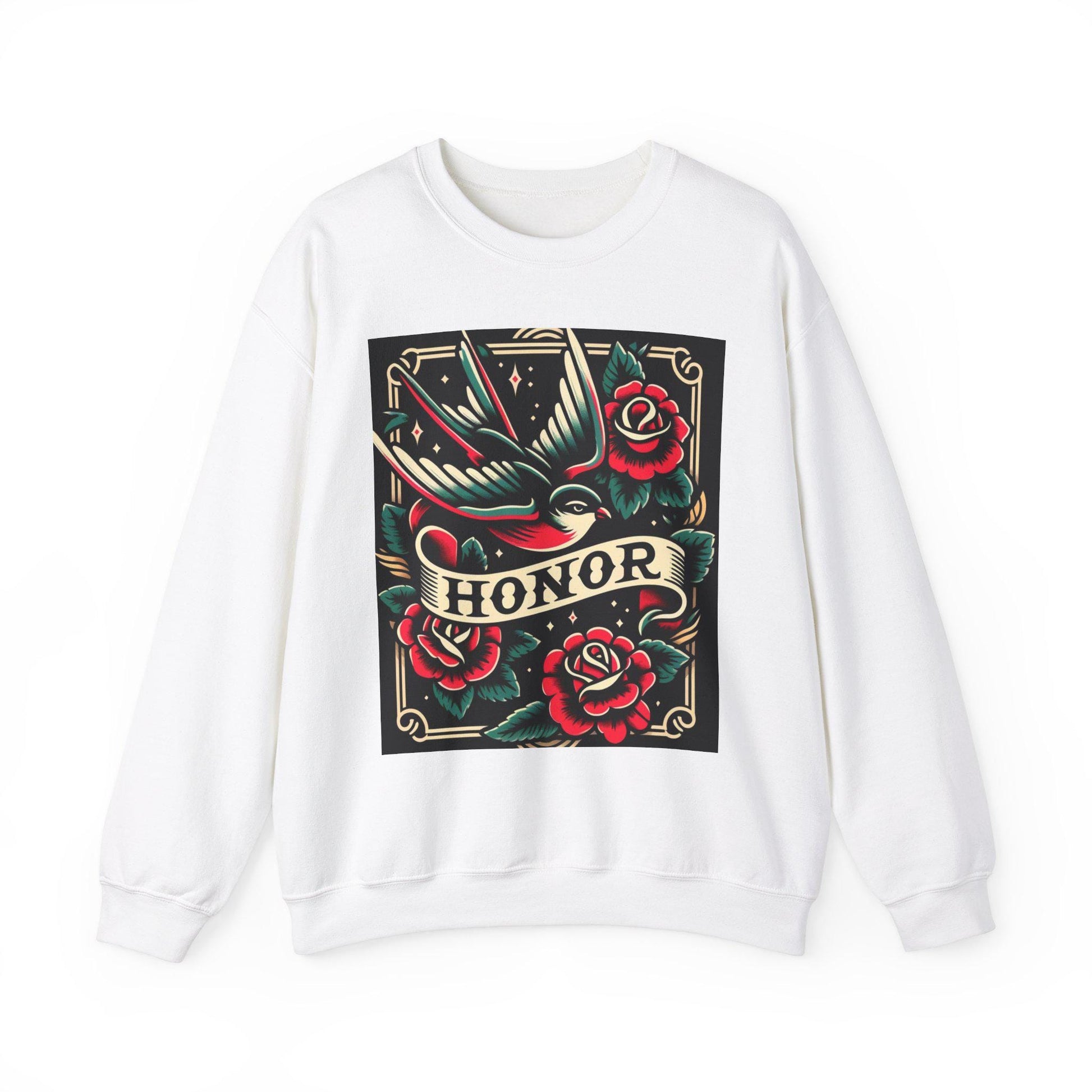 Vintage Tattoo Sweatshirt, HONOR Tattoo Design, Unisex Crewneck Jumper, Vintage Pullover, Gift for Tattoo Lover, Retro Style