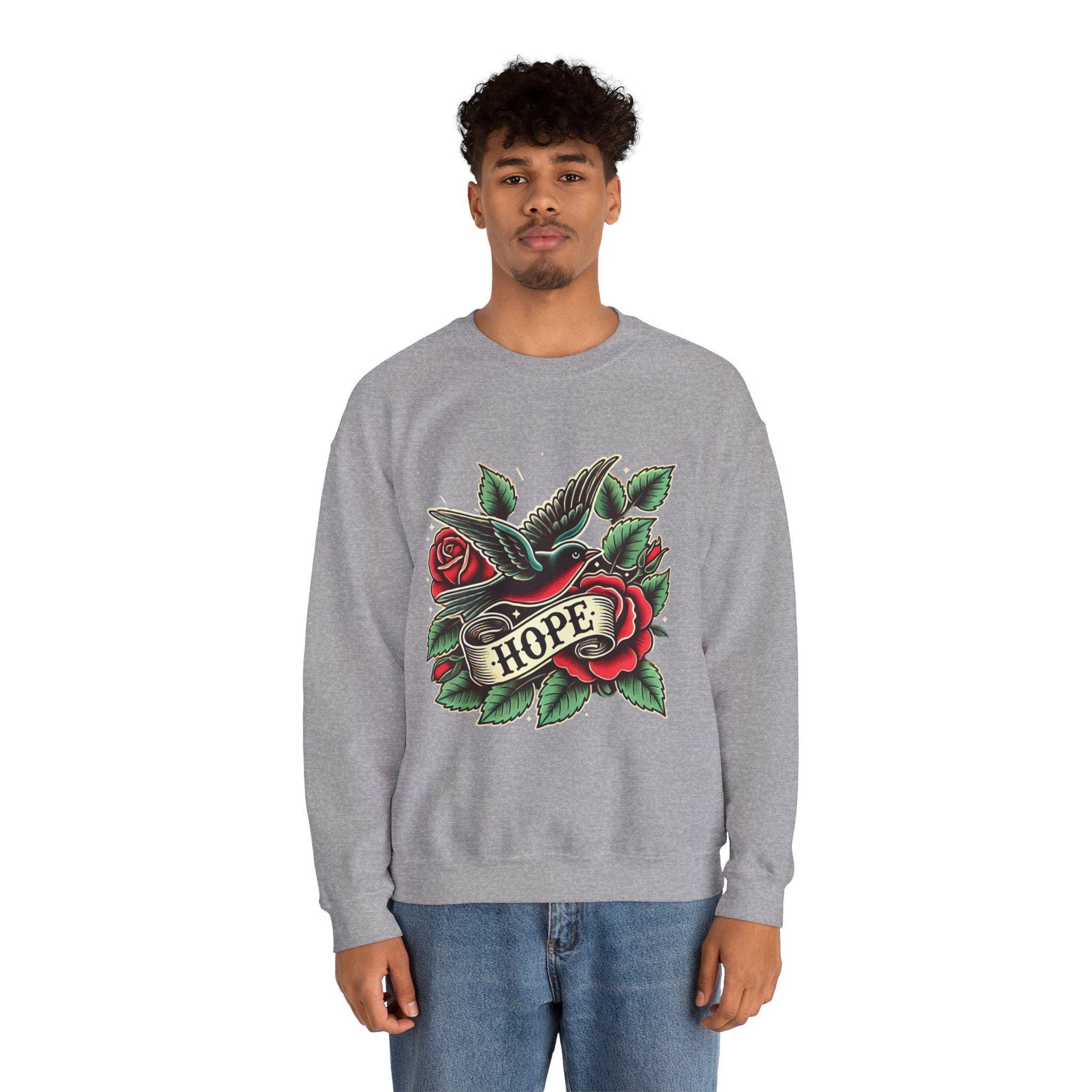 Vintage Tattoo Sweatshirt, HOPE Tattoo Design, Unisex Crewneck Jumper, Vintage Pullover, Gift for Tattoo Lover, Retro Style