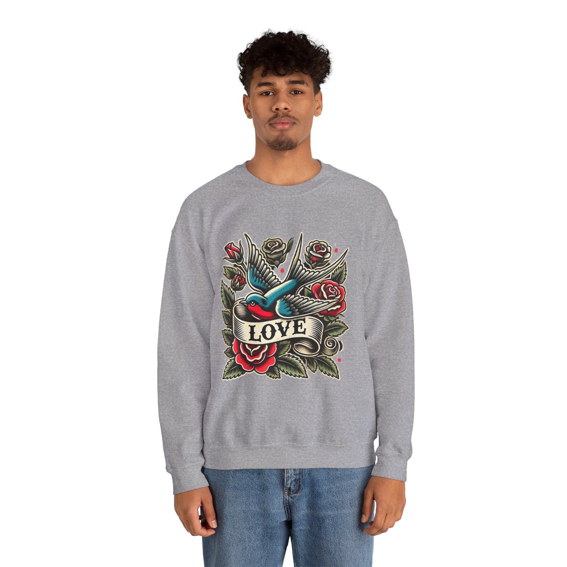 Vintage Tattoo Sweatshirt, LOVE Tattoo Design, Unisex Crewneck Jumper, Vintage Pullover, Gift for Tattoo Lover, Retro Style